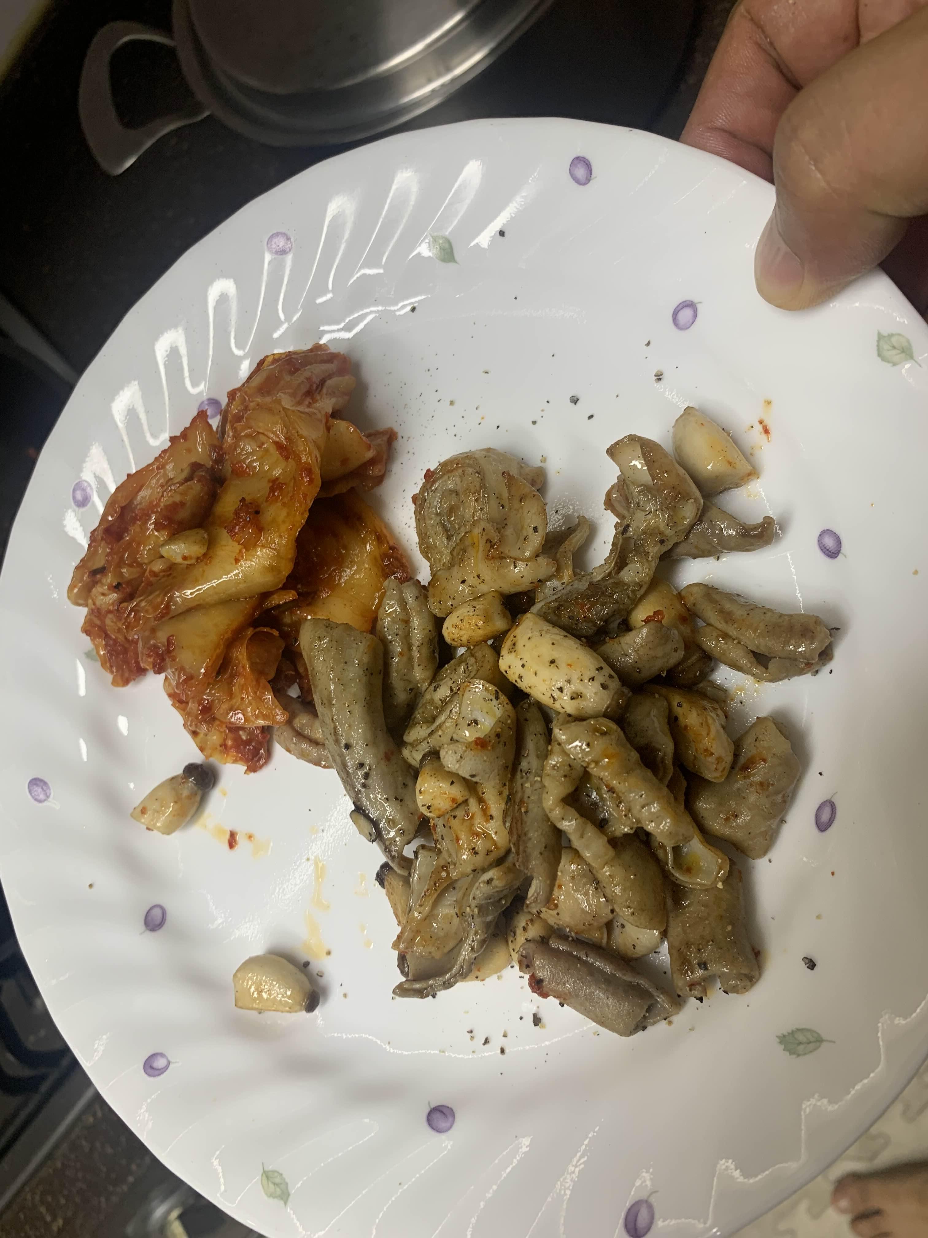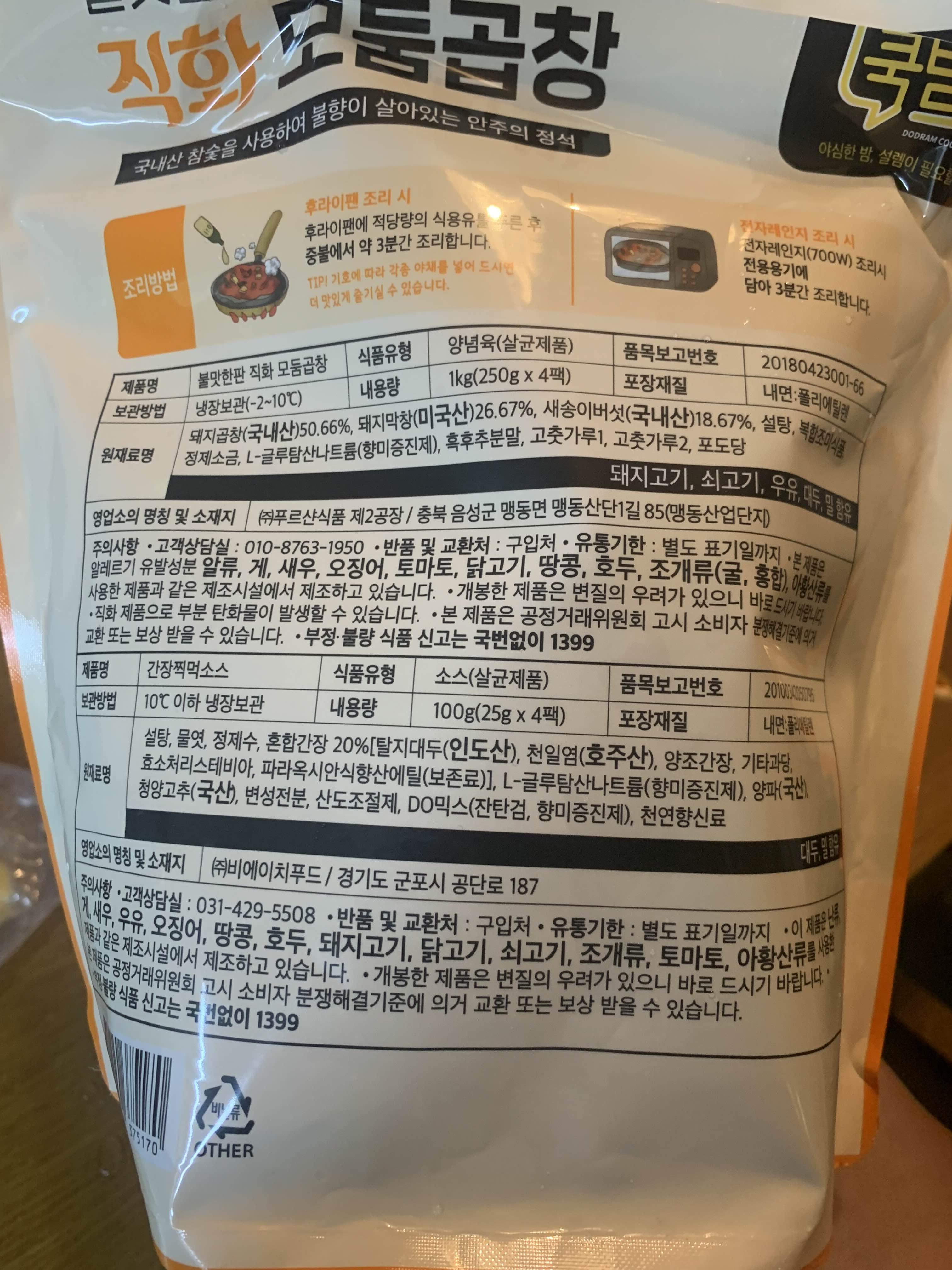 소스도 함께 들어있어서... 맛이 나쁘지 않다. 곱창만 들어있는 게 아니라... 버섯도 들어가 있다.