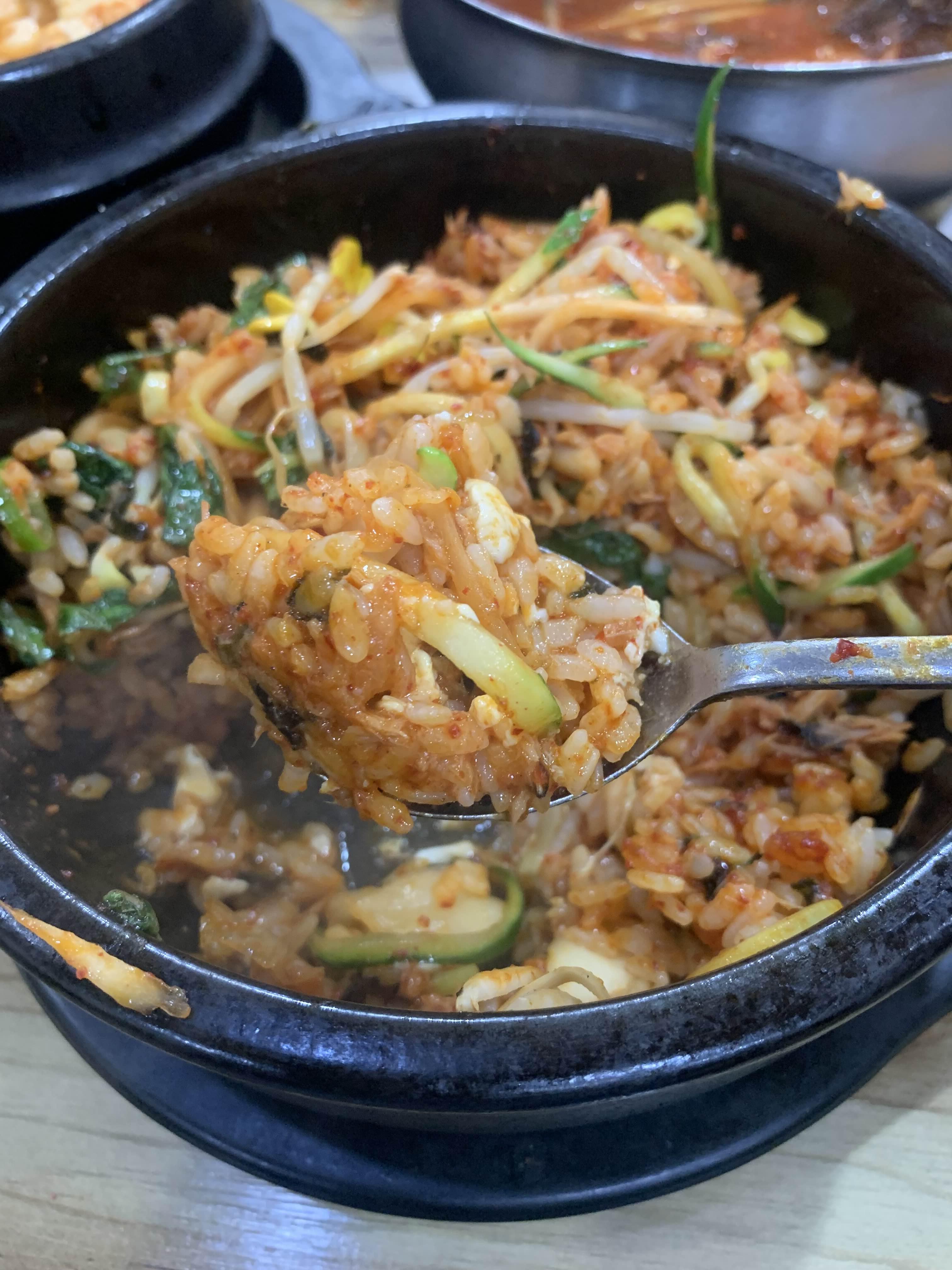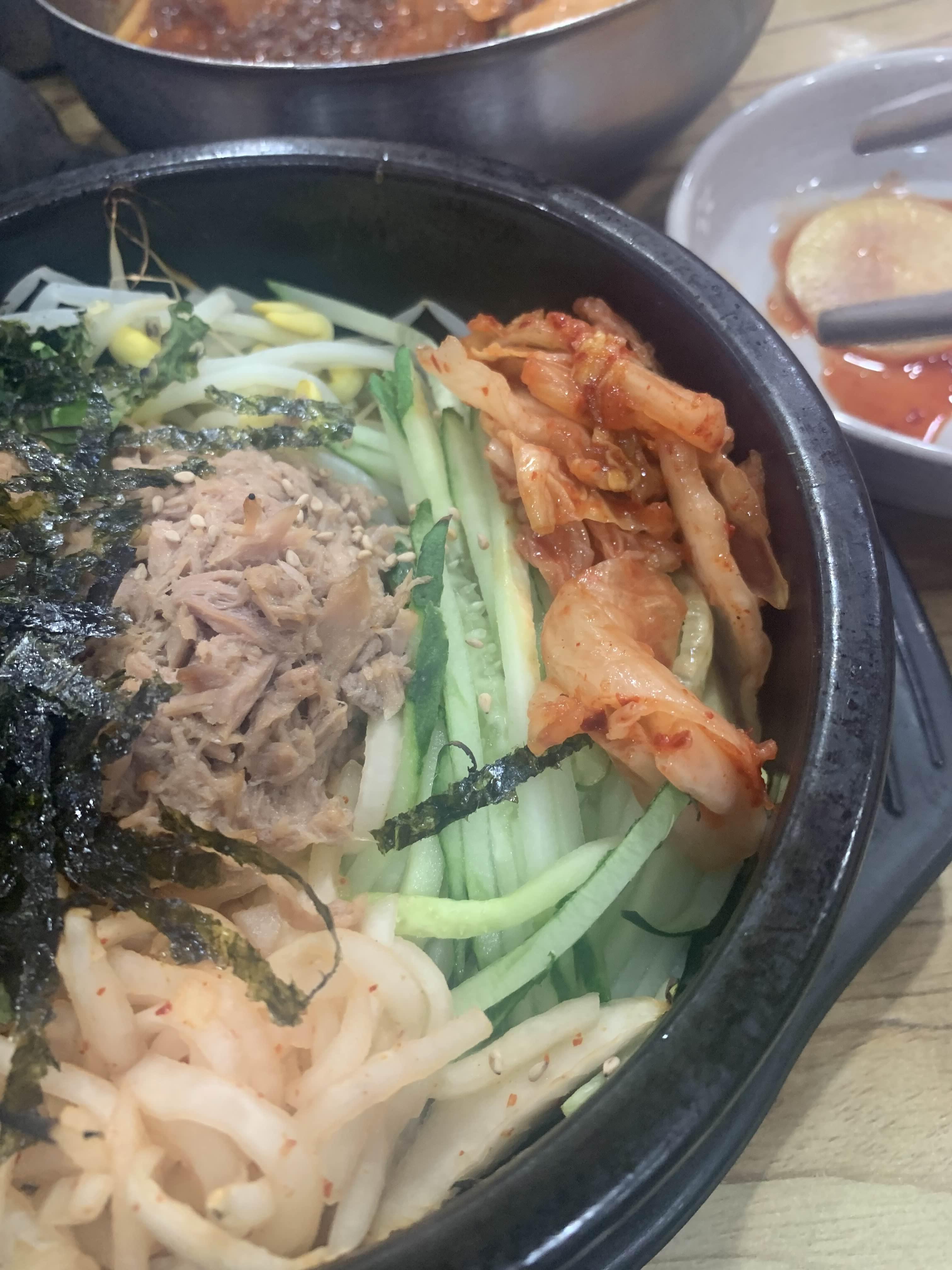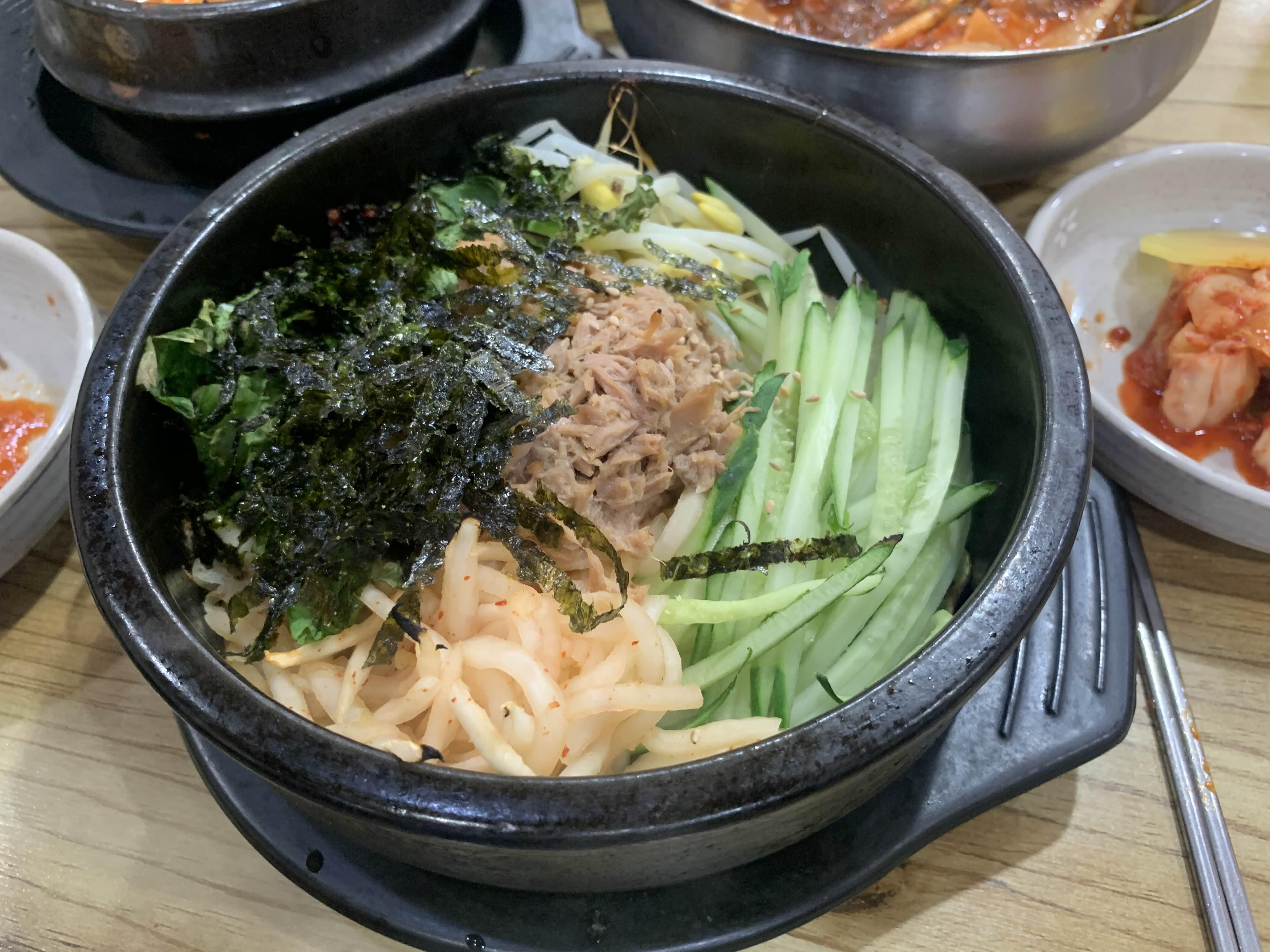벌써 20년 정도 방문한 식당이다. 식당 위치가.... 예전에는 구정문 골목의 지하에서 운영하였는데.. 몇 번의 식당 이전하며 현 위치에 자리를 잡으셨다. 내가 좋아하는 메뉴는 참치돌솥비빔밥!ㅎㅎ