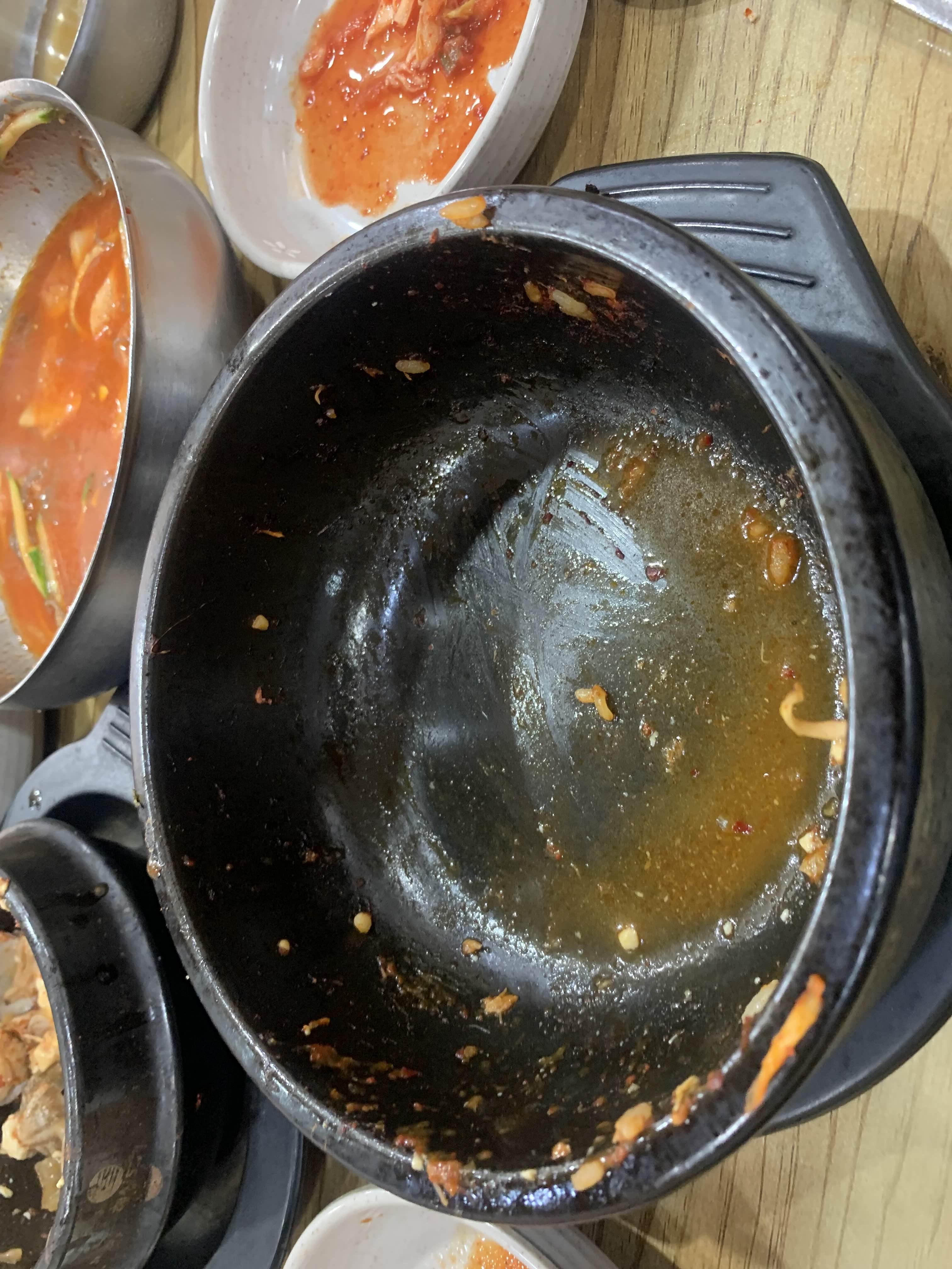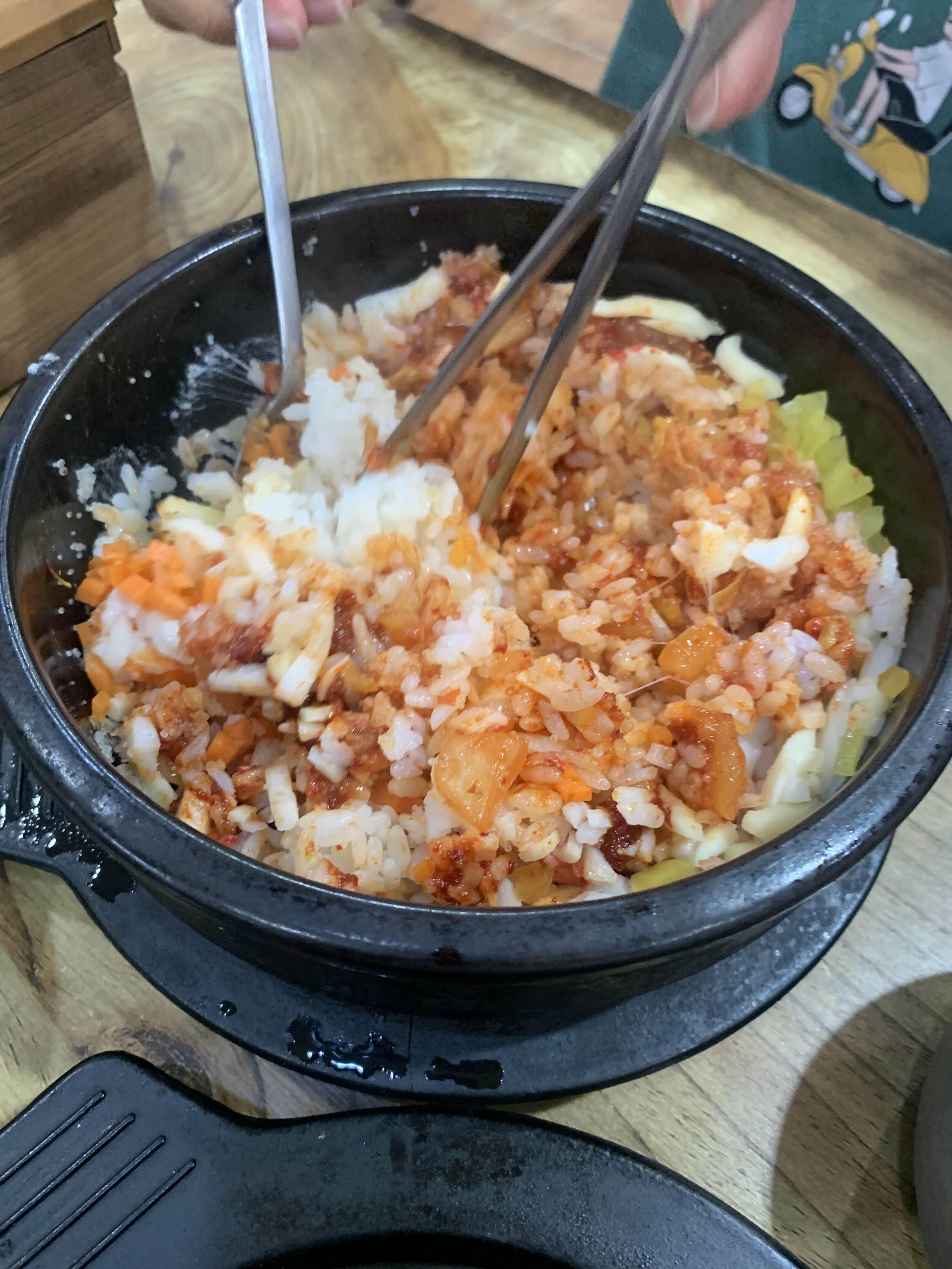 따뜻한 돌솥에... 순부두 찌개를 조금씩 넣어, 비벼 먹으면 상당한 꿀 조합이 된다.