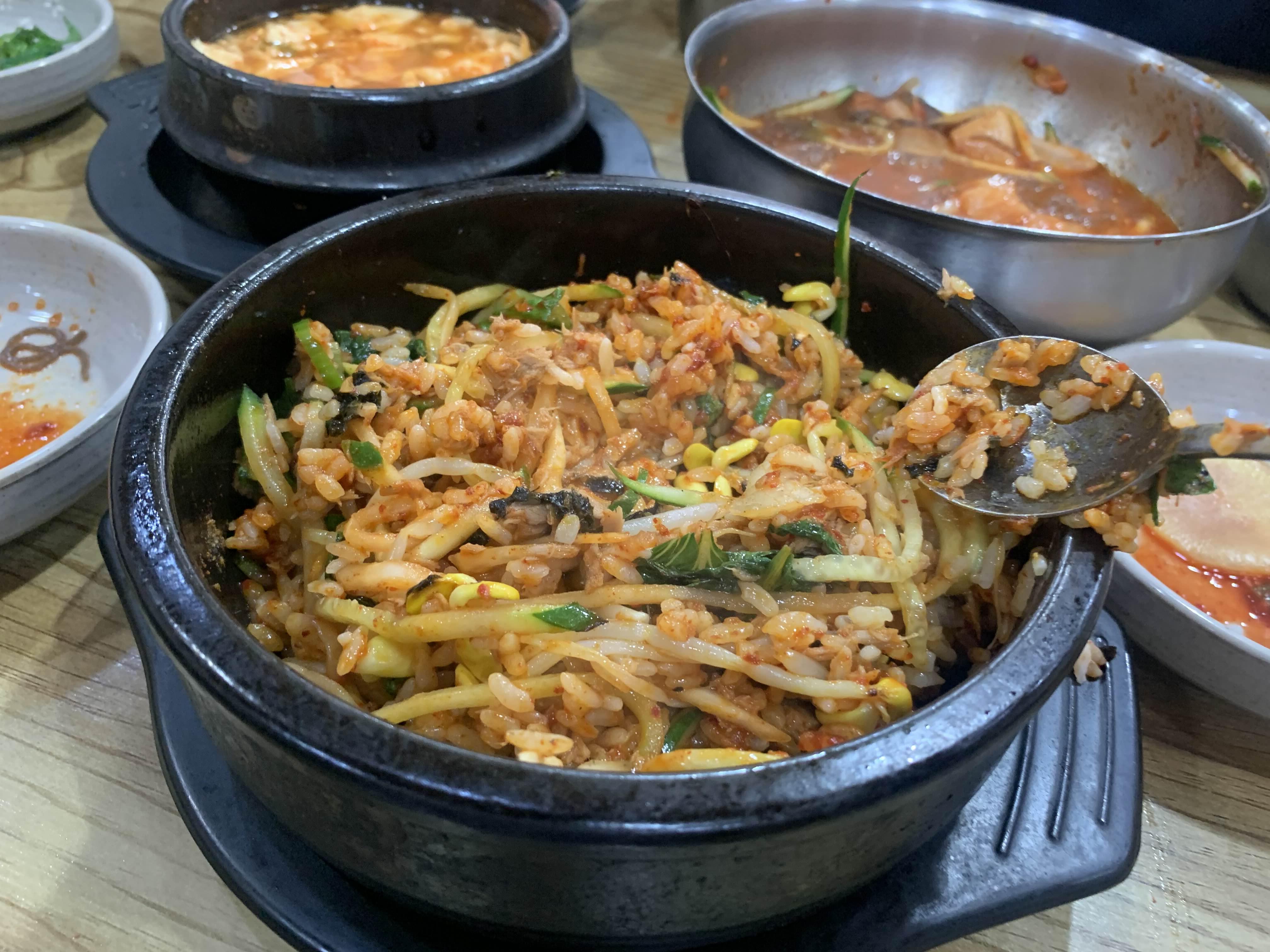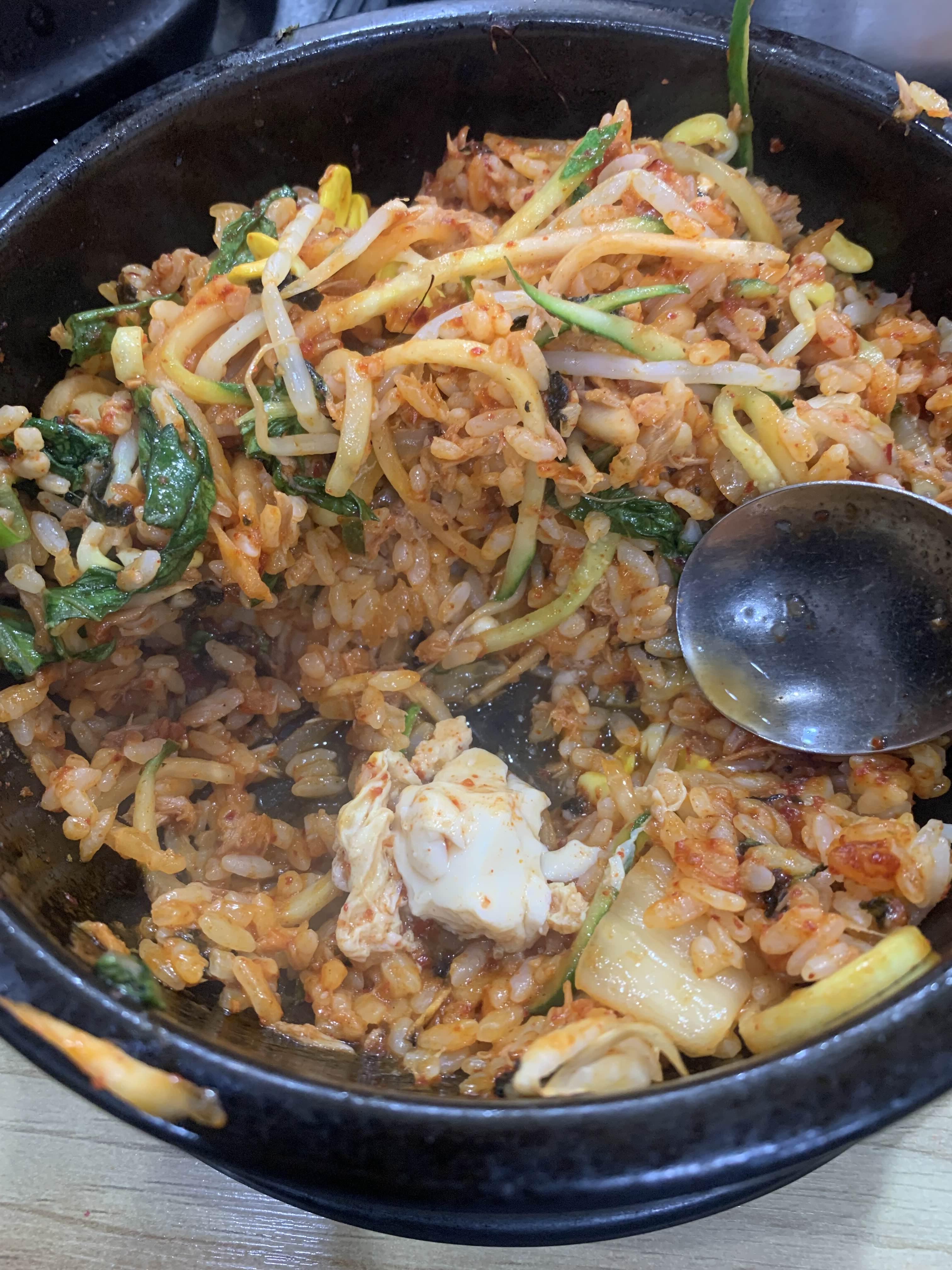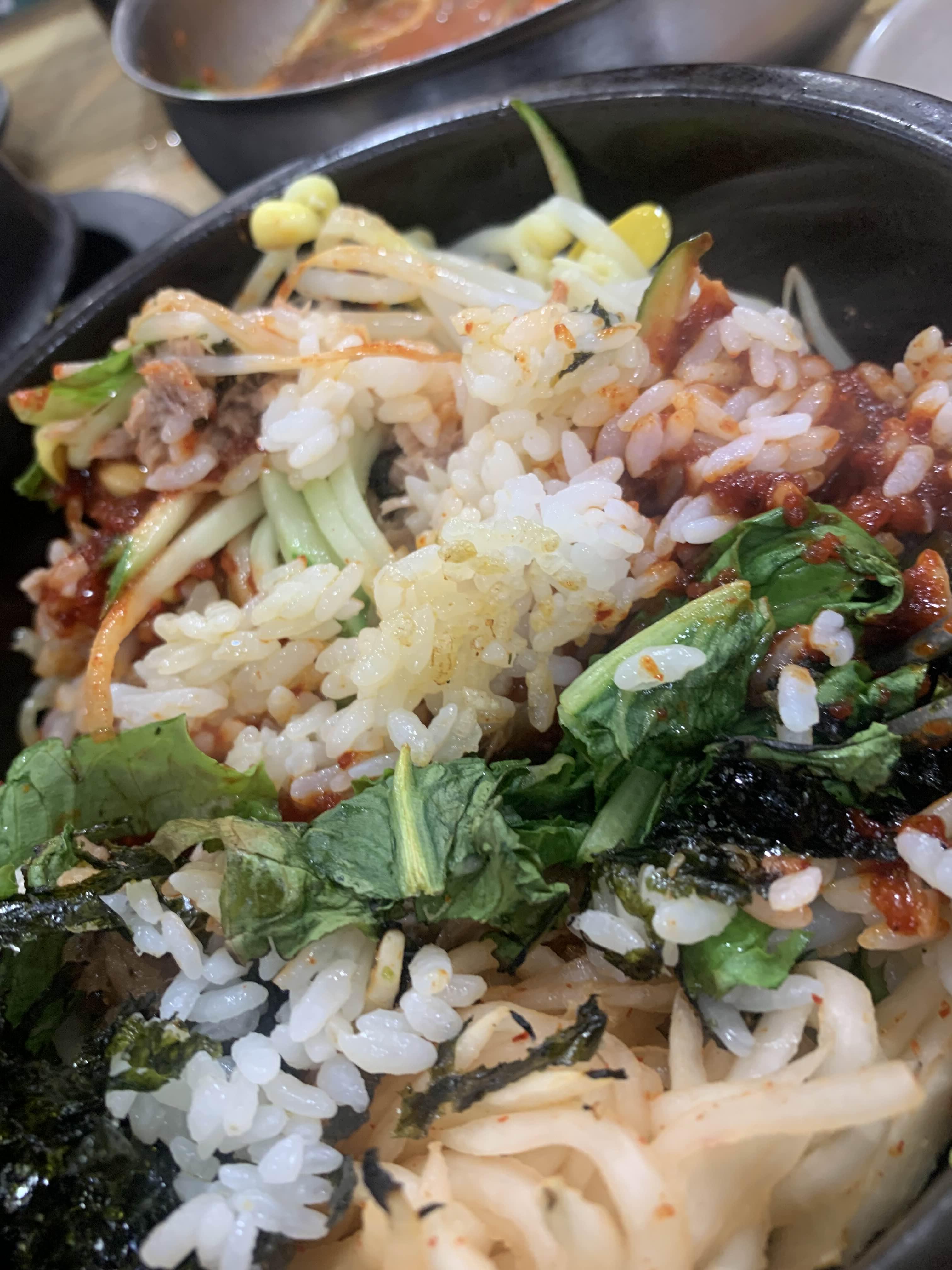 나의 최애... 참지돌솥비빔밥... 여기에 배추김치를 추가해서 비벼 먹으면 더 맛이 좋다.