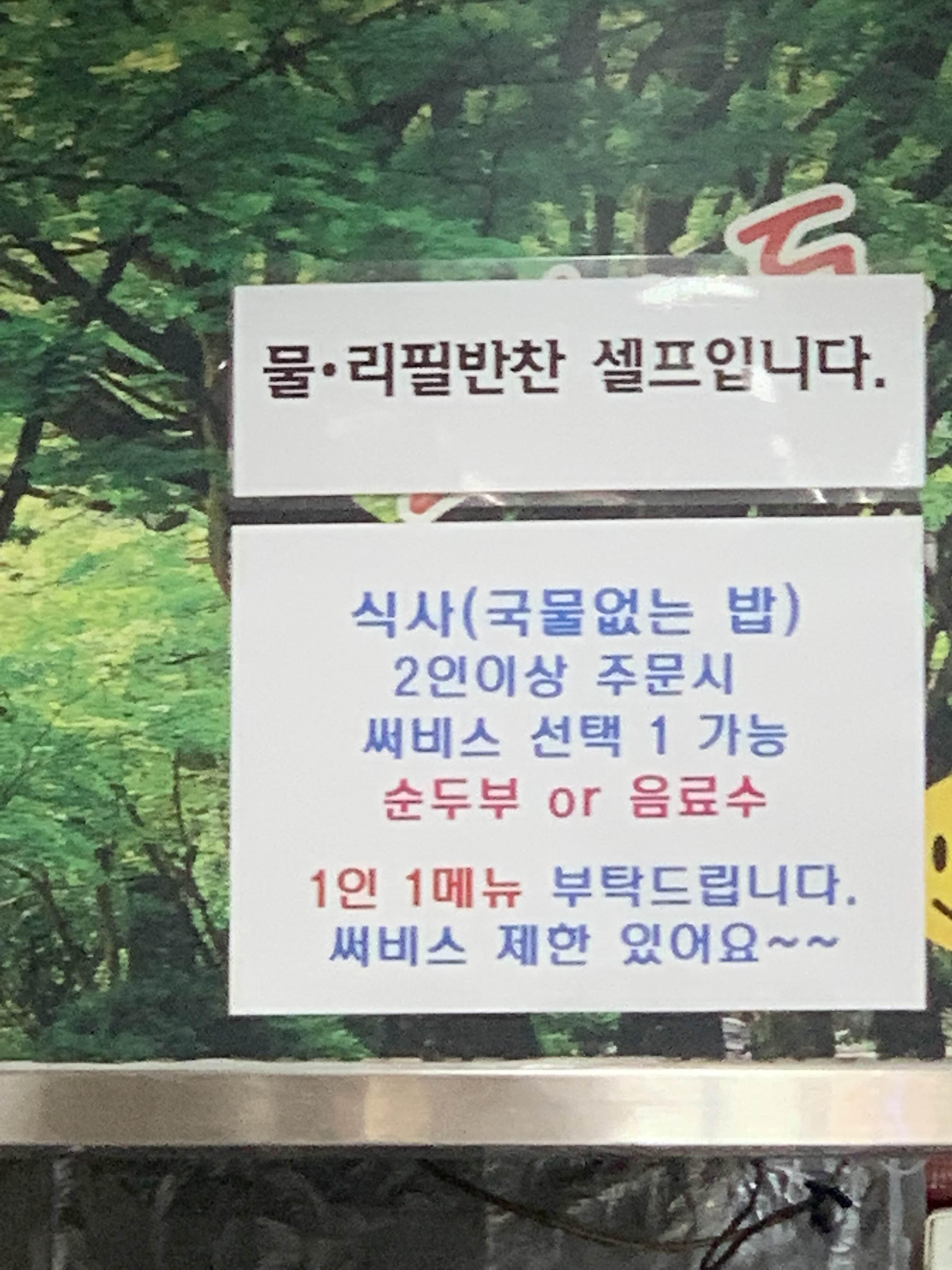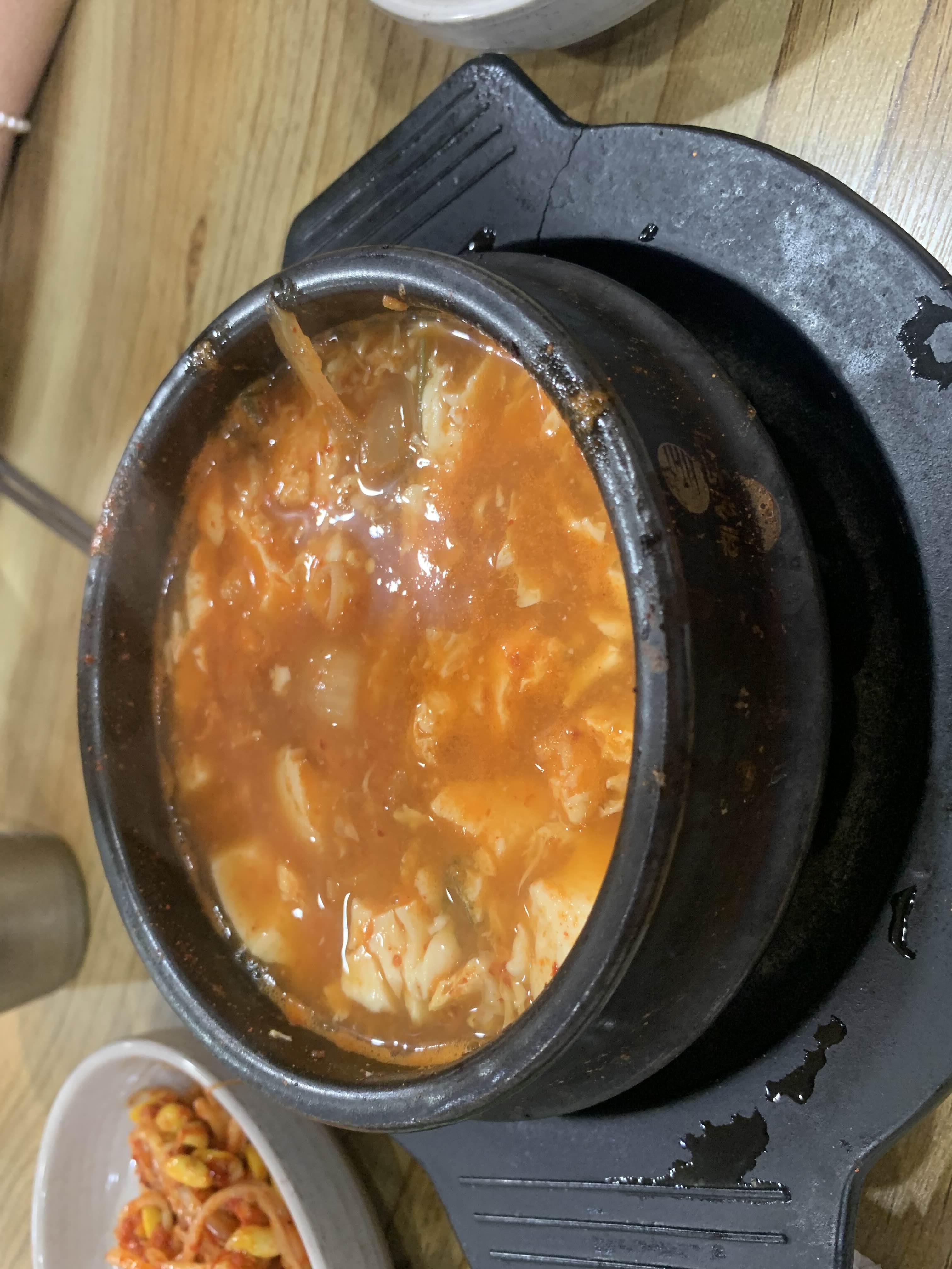 예전이나 지금이나.... 국물 없는 밥메뉴 2개를 주문하면 순두부찌개가 나온다.ㅎㅎ 돌솥비빔밥과 순두부찌개의 조합이 상당히 좋다.ㅎㅎ
