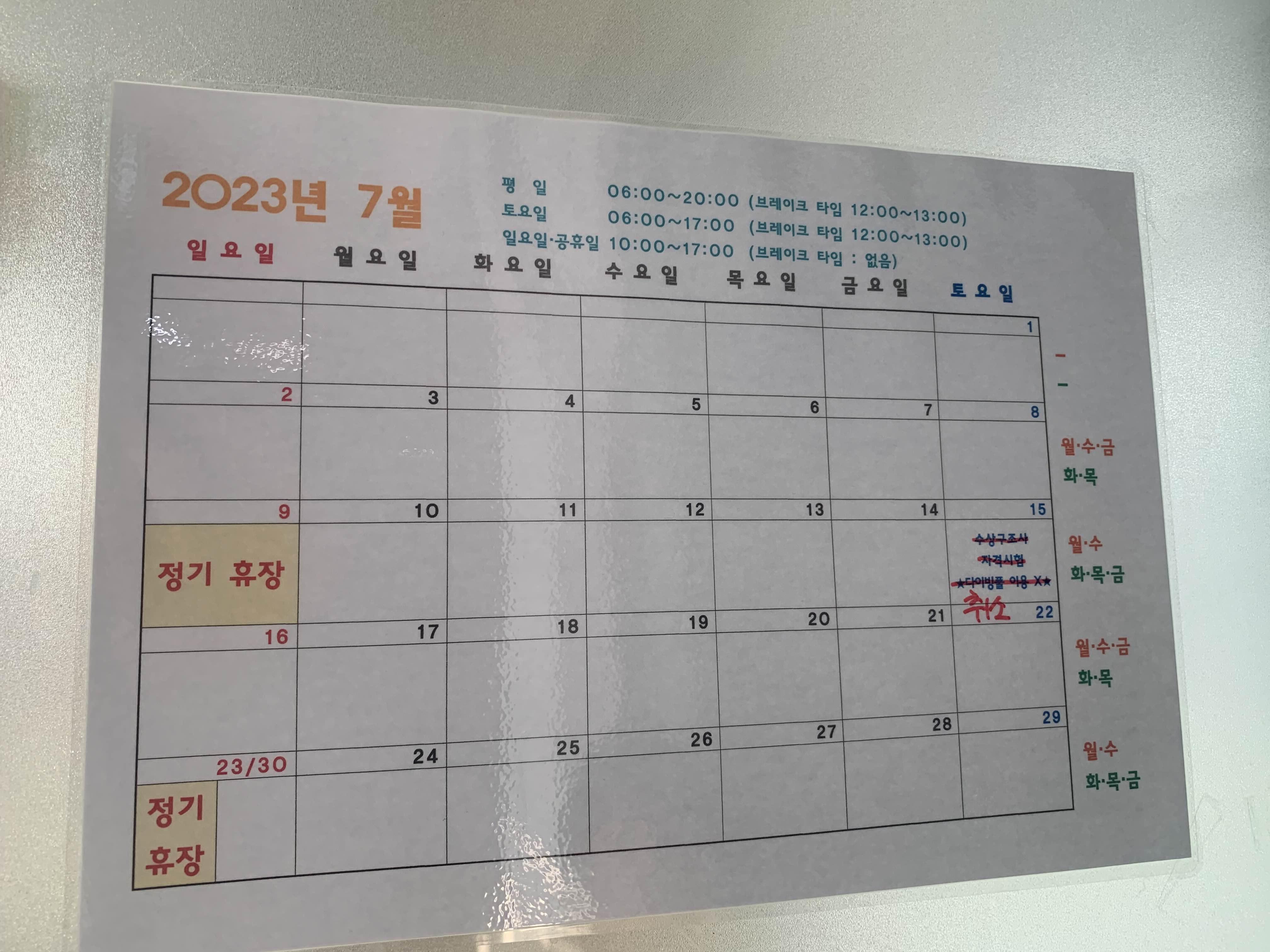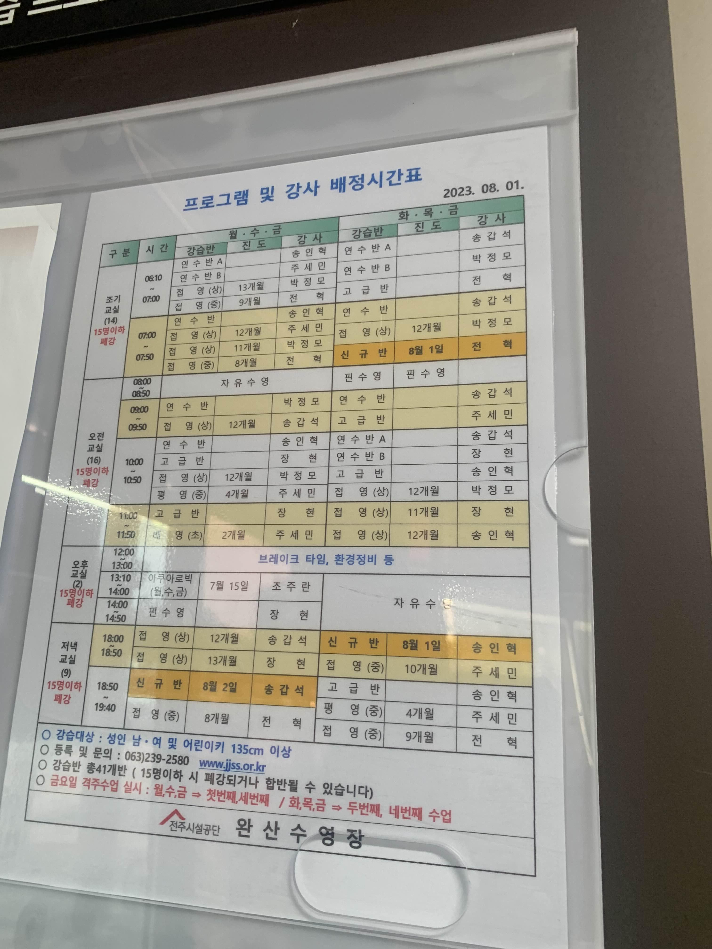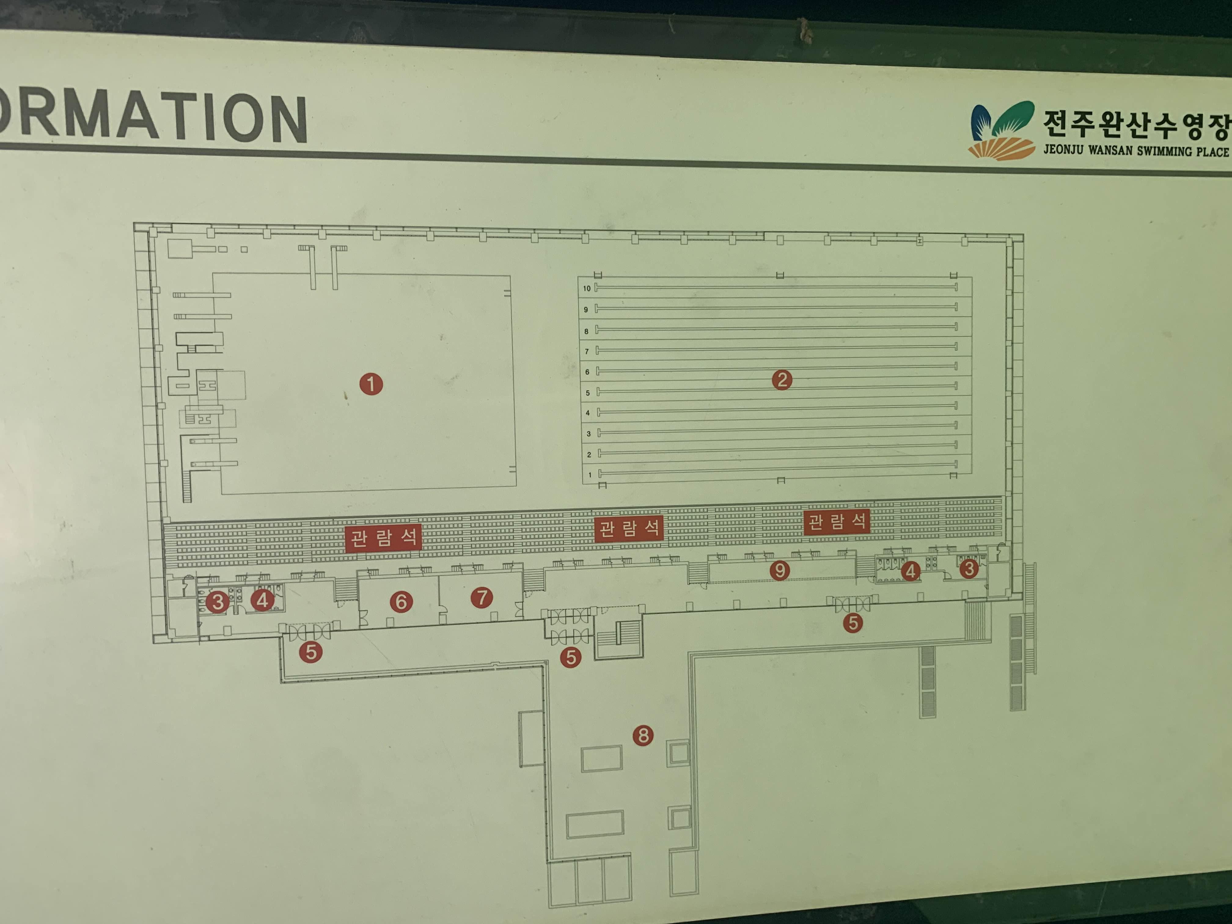 그리고 전주완산수영장은 국제수영경기를 치를 수 있는 수영장으로.... 큰 대화를 진행하는 기간은 당연! 휴장이다. 내가 방문한 8월에도... 8월 중순에 수영대회로 인하여 약 1주일 정도 휴장인 기간이 있었다.