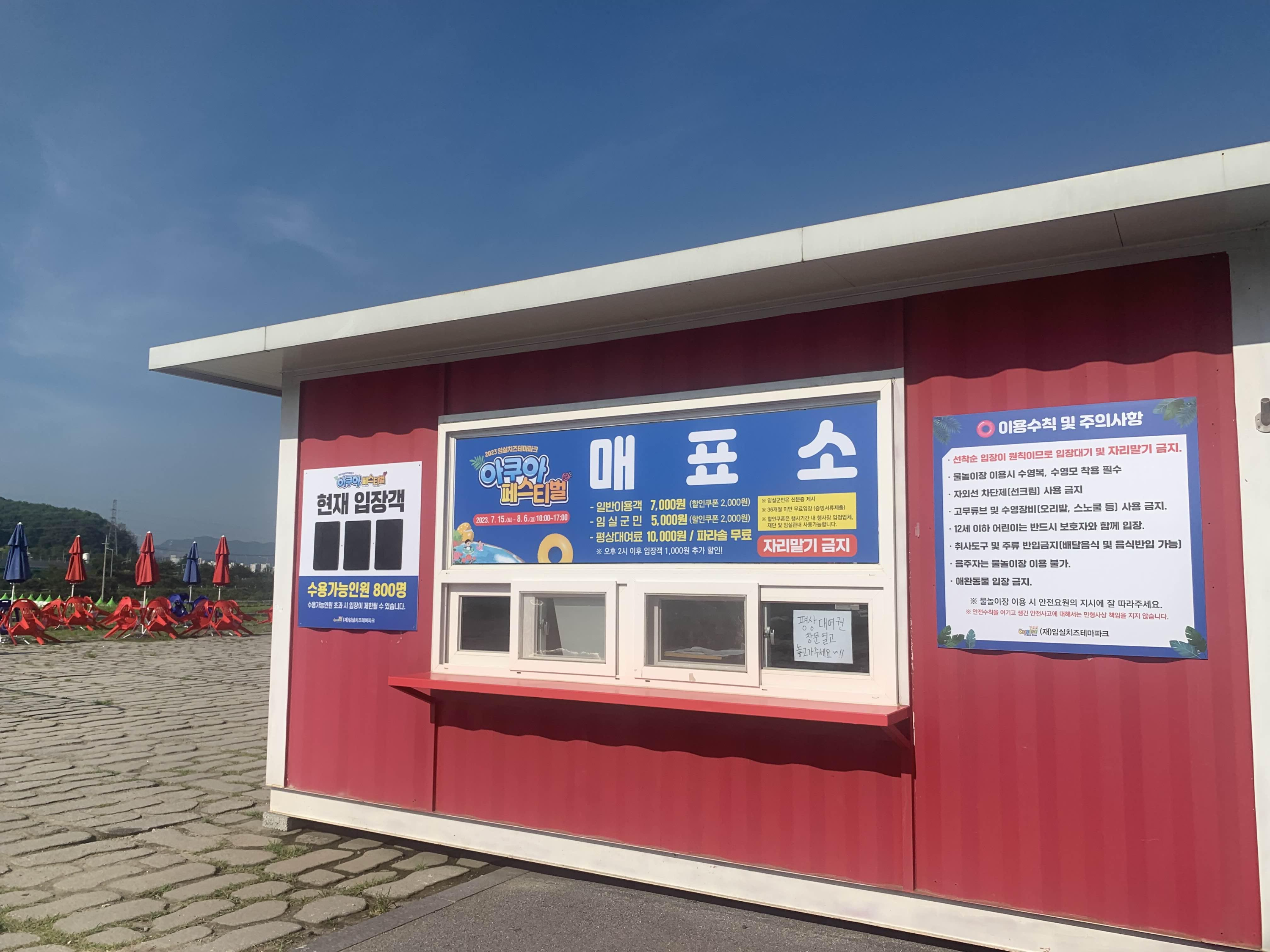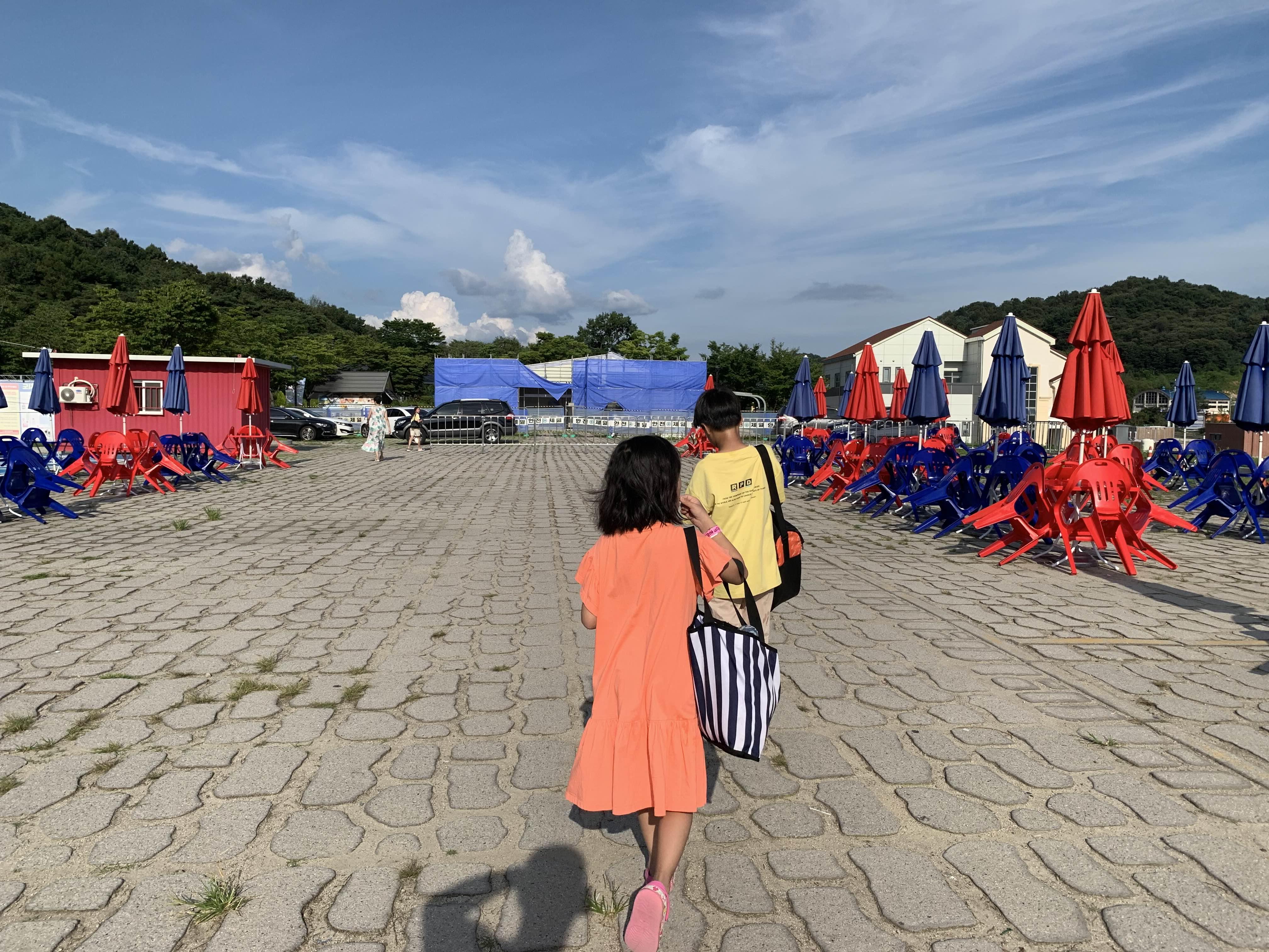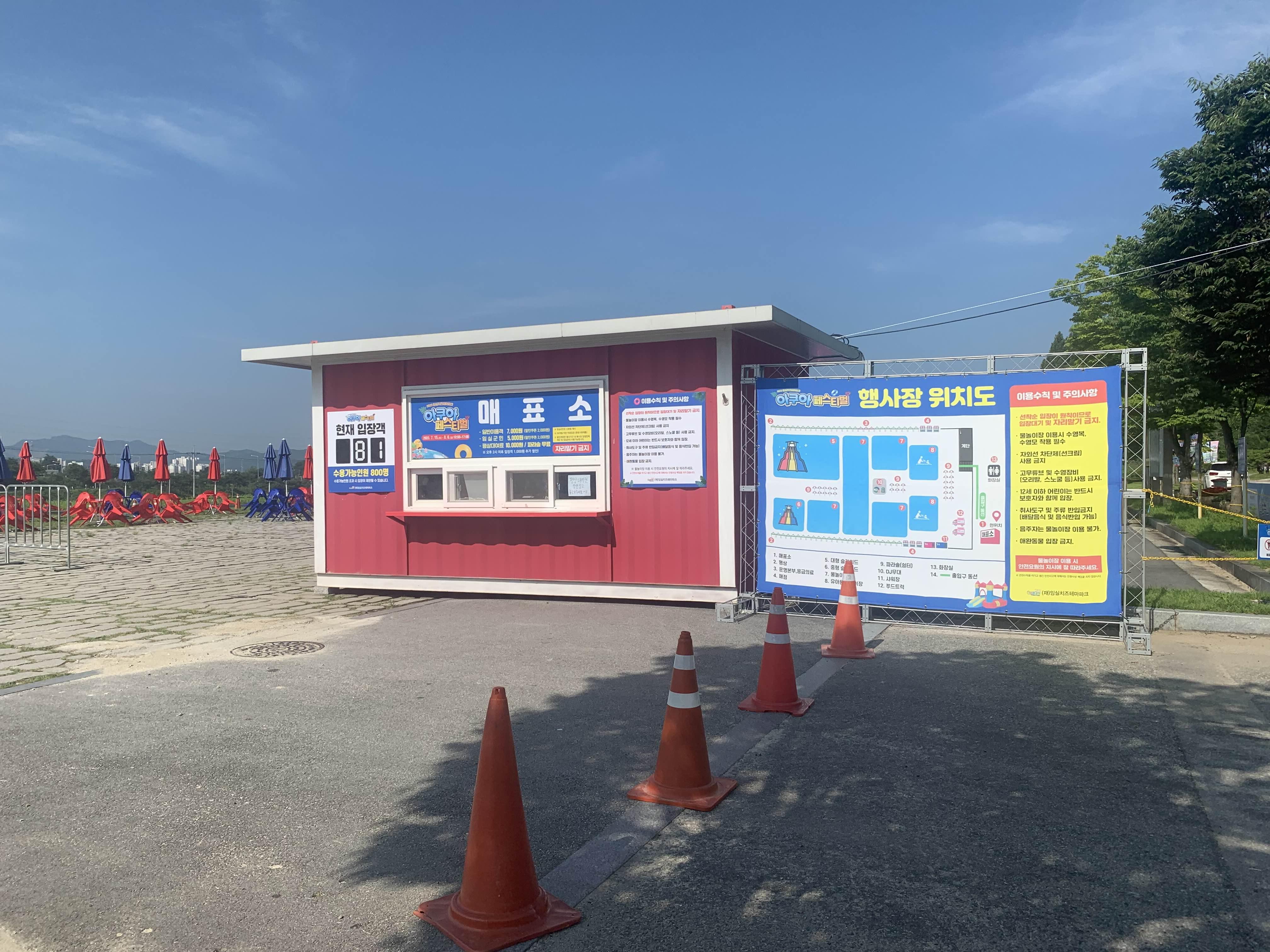 지난번 아쿠아 페스티벌 장소에 도착했는데.... 주차장 그늘막이 철거되어 있다... 그리고, 지난번 아쿠아 페스티벌 행사장이... 좀 이상하게 변했다.