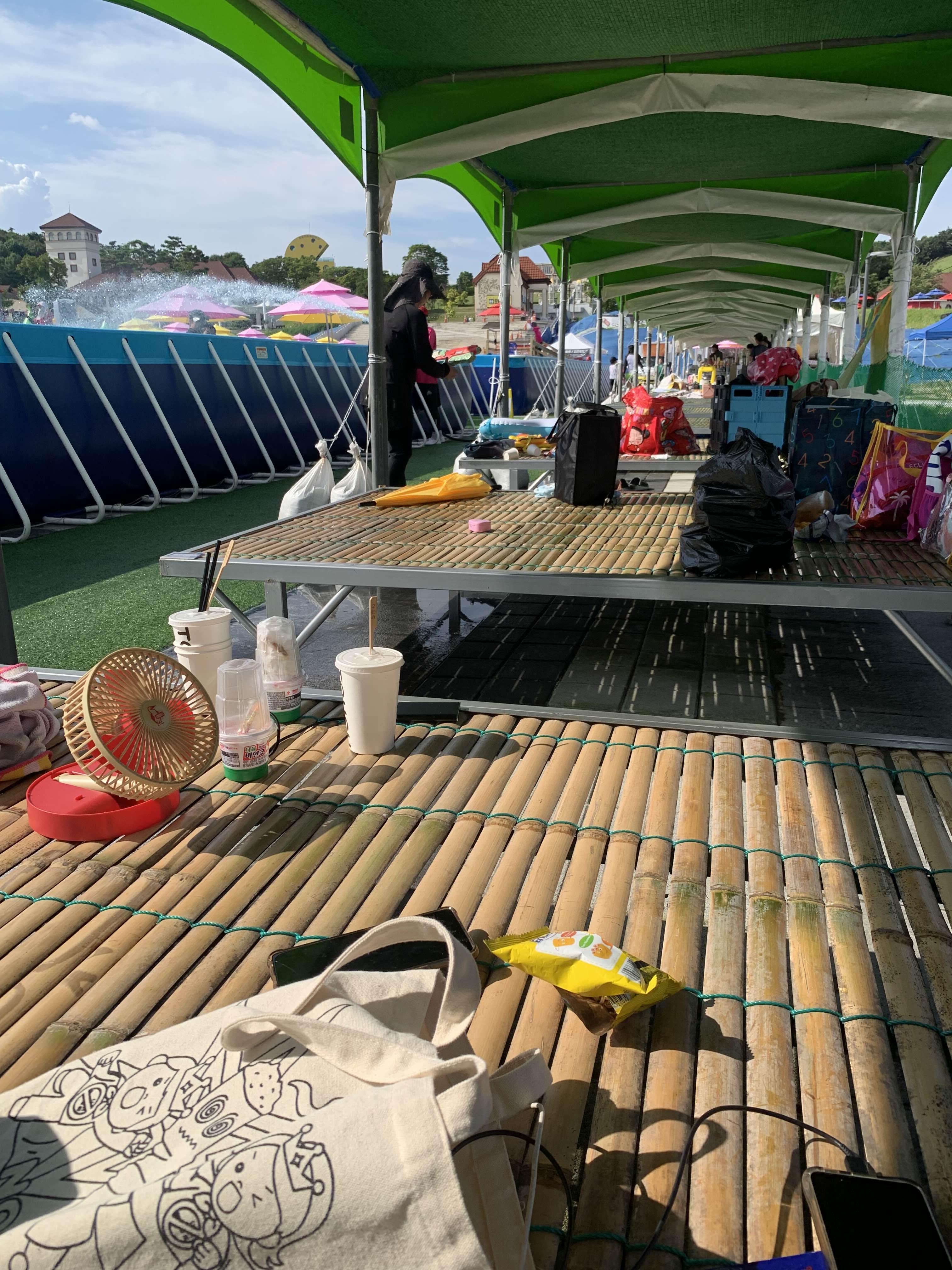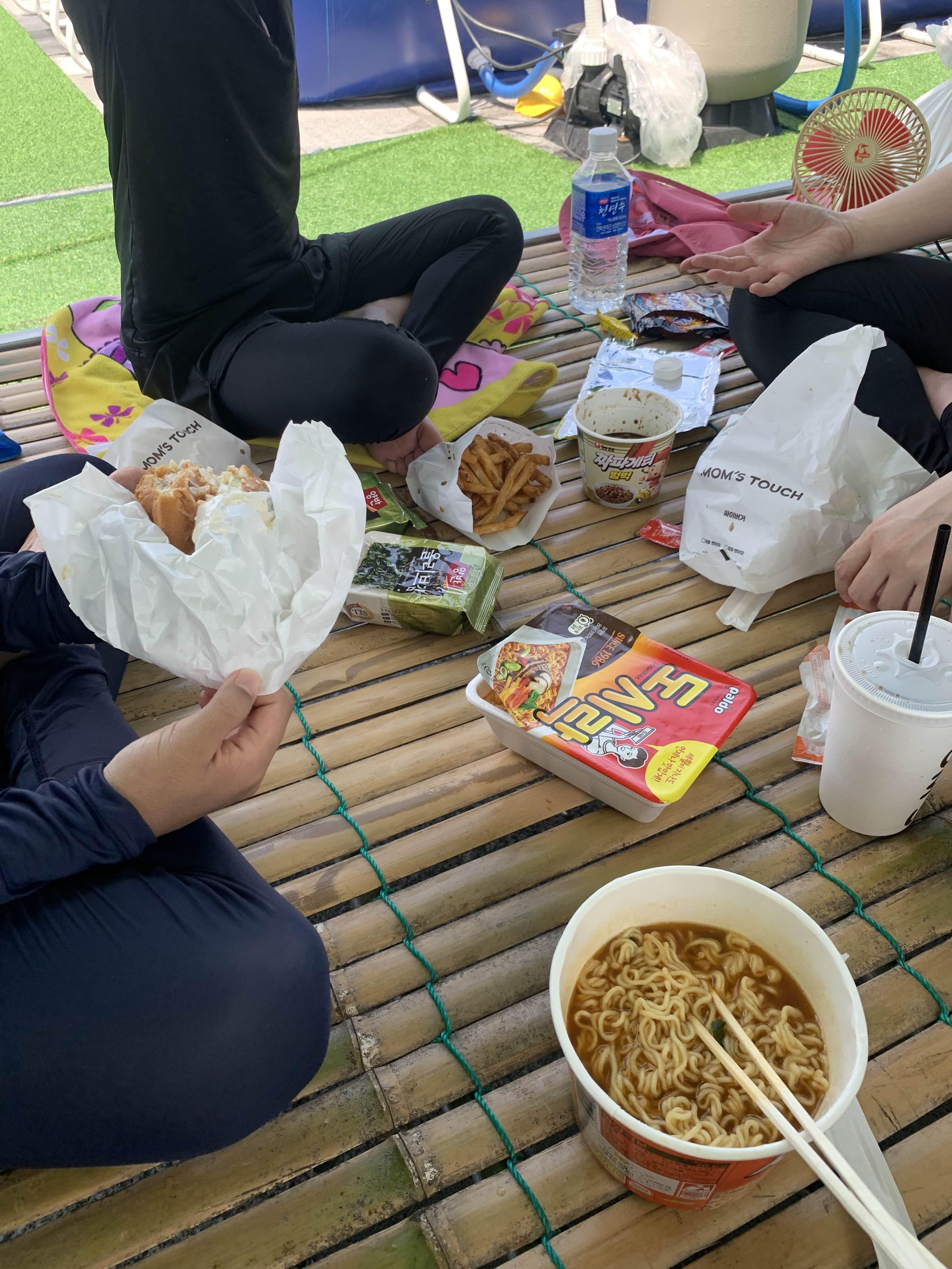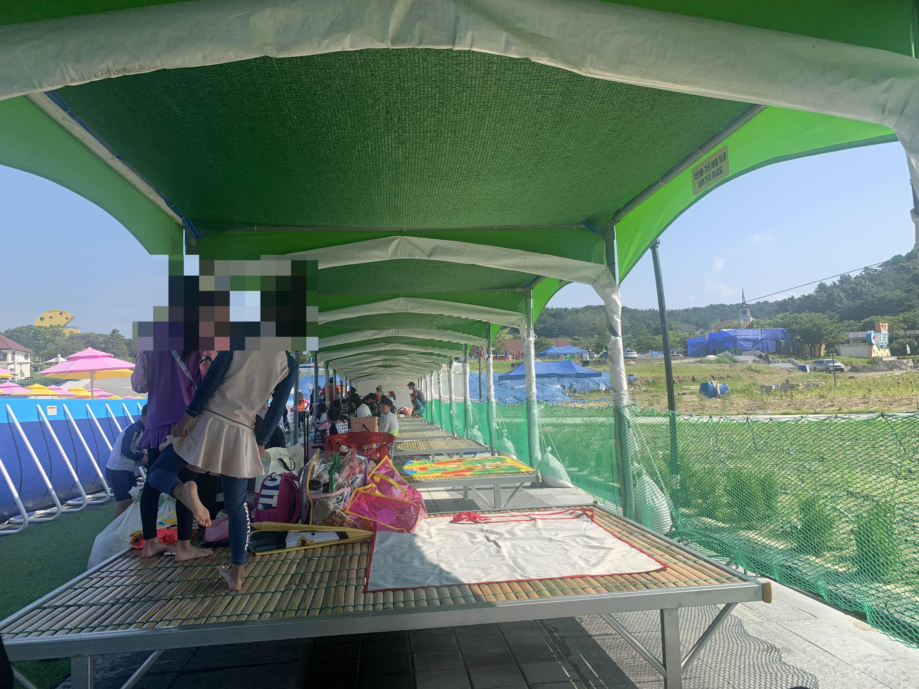 물놀이는 45분 정도 물놀이.... 그리고 15분 정도 휴식으로 진행되더군요. 휴식시간에는 평상에서 대기 중!ㅎㅎ