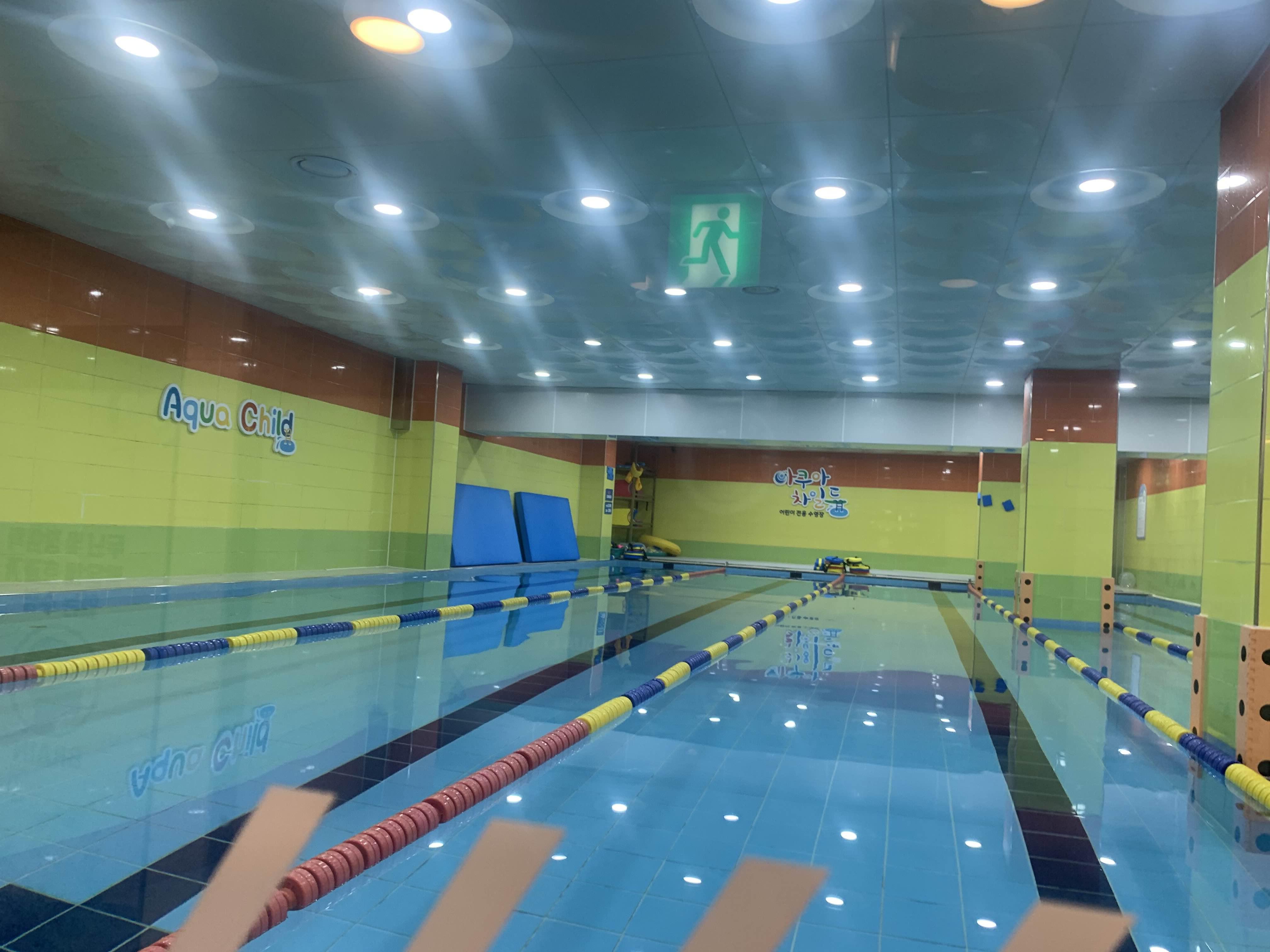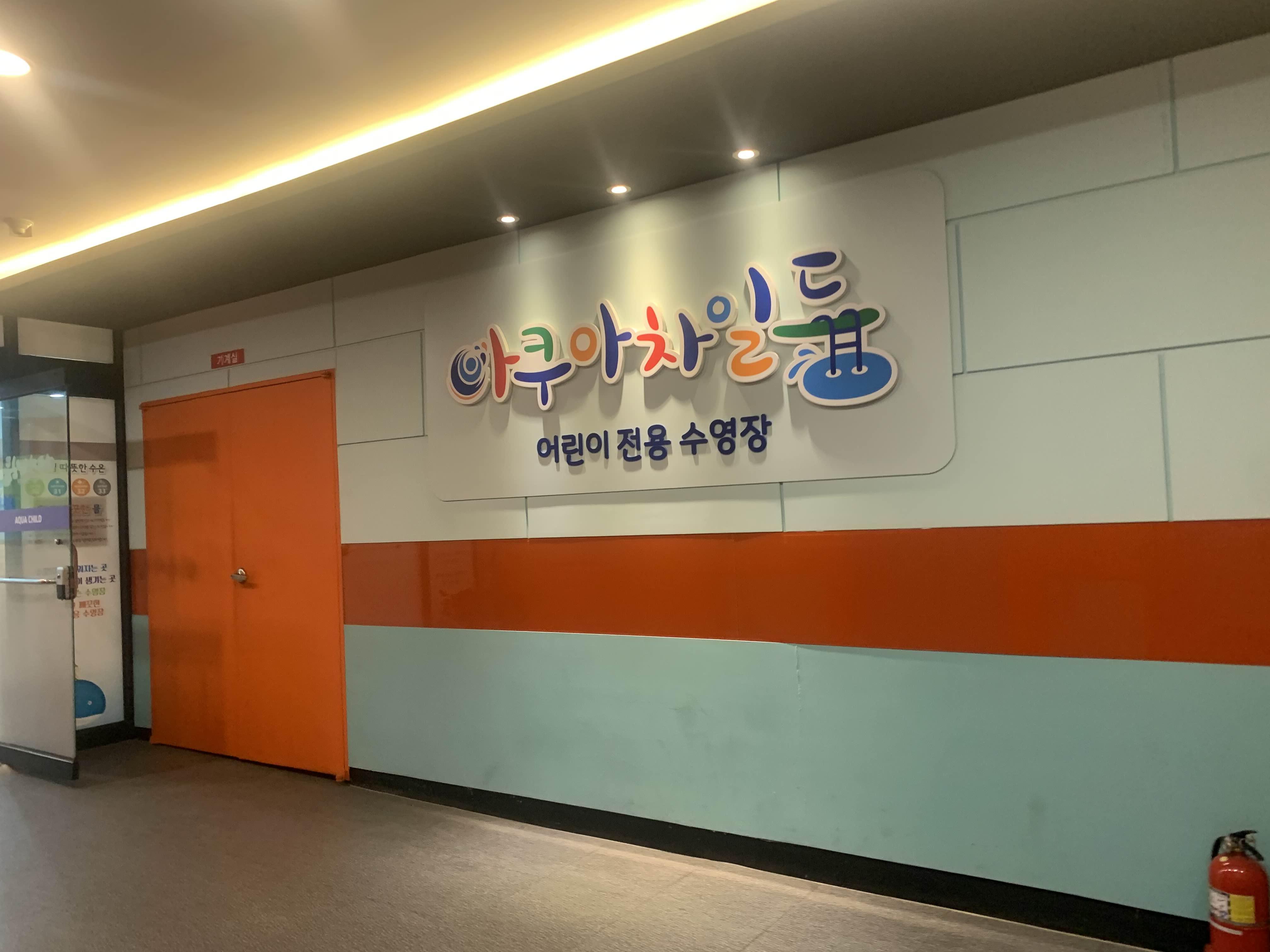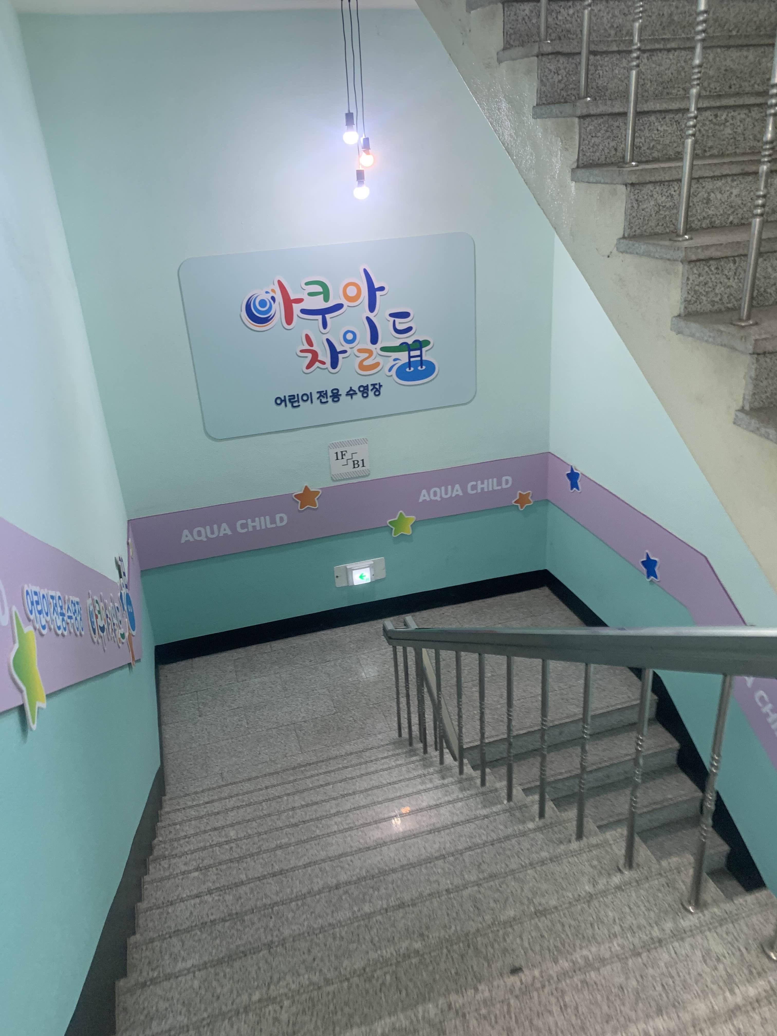 어린이 전용 수영장 아쿠아차일드는 지하층에 위치한다. 지하층으로 내려가면.... 깔끔하게 정리된 수영장이 보인다.
