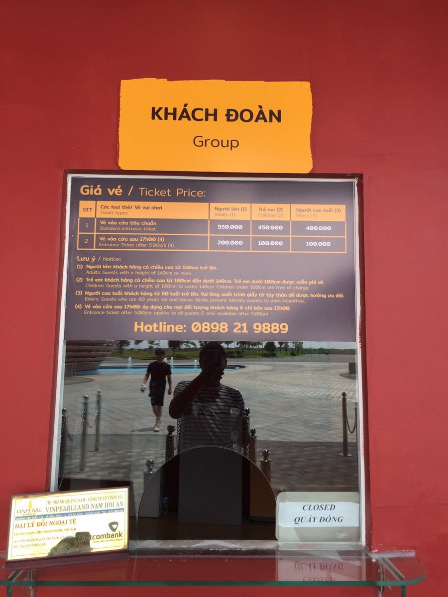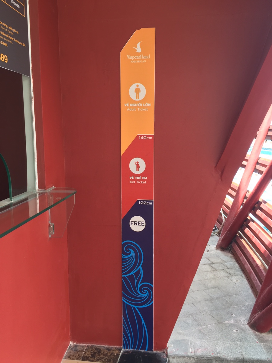빈펄랜드 이용요금은 시간 때와 키를 기준으로 요금이 구분되어 있습니다. 5시 이후에는 어른 200,000원, 어린이 100,000동이며, 5시 이전에 입장은 어른 550,000동, 어린이는 450,000동입니다. 입장요금 기준에서 재미있는 게.... 우리나라의 나이를 기준으로 무료, 어린이, 어른을 구분하는 게 아니라... 키를 기준으로 구분하더군요.^^ 100cm 이하는 무료 140cm 이하는 어린이, 그 이상은 어른으로 구분되네요. 어른 요금이 2만 7천 원 정도인데.... 롯데월드나 에버랜드 요금에 비하면 저렴? 한 요금이지만 베트남 물가를 생각해보면 엄청 비싼 요금이네요. 요금이 비싸서 베트남 사람들은 안 보이고 외국 관광객이 빈펄랜드를 이용하더군요.