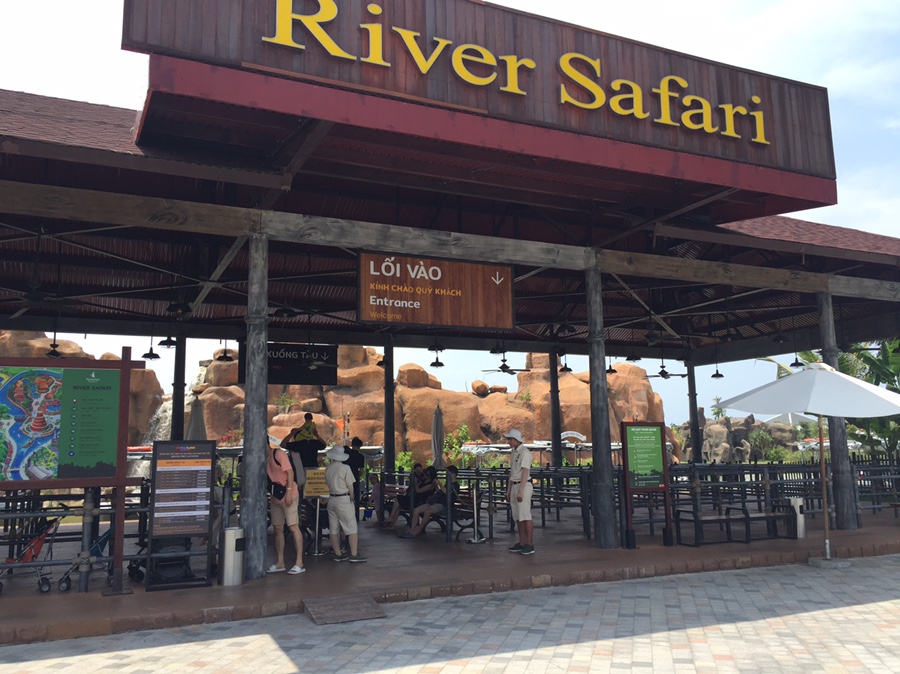 평일이라 그런 지 방문자가 많이 없었습니다. 우선 사파리와 민속촌을 들렸다가 놀이기구를 이용하기로 했네요. 사파리에 도착하니.... 사람이 한적하네요. 너무 한적해서 그런 지 30분? 간격으로 운행하고 있었네요. 자리에 앉아서 기다리고 탑승하니... 탑승하라고 한국말로 안내해줍니다. 사파리 배에 탑승인원은 모두 한국 관광객이었네요.ㅎㅎ 안내원이 한국말을 조금씩 하며 안내해주는데.. 아이들이 즐거워했네요.