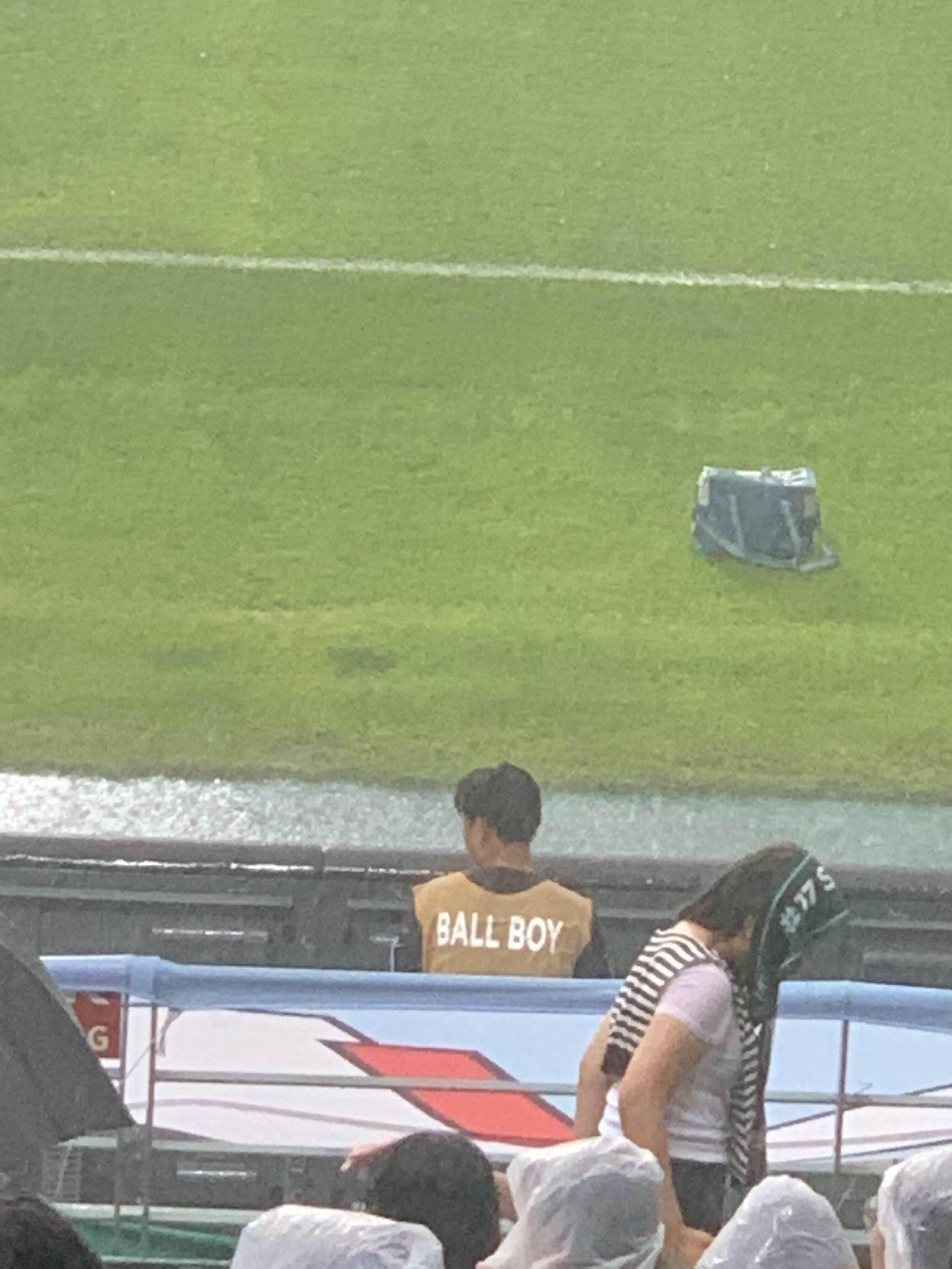 경기장 앞쪽에..... 볼보이가 앉아 있는데.... 많은 비가 오는데, 자리를 지키고 있는 모습이...... 참 안쓰럽더군요. 우산이라도 던저주고 싶은 생각이 들더군요. 잠시 후.. 진행요원이 우비를 나누어 주어서... 그나마....