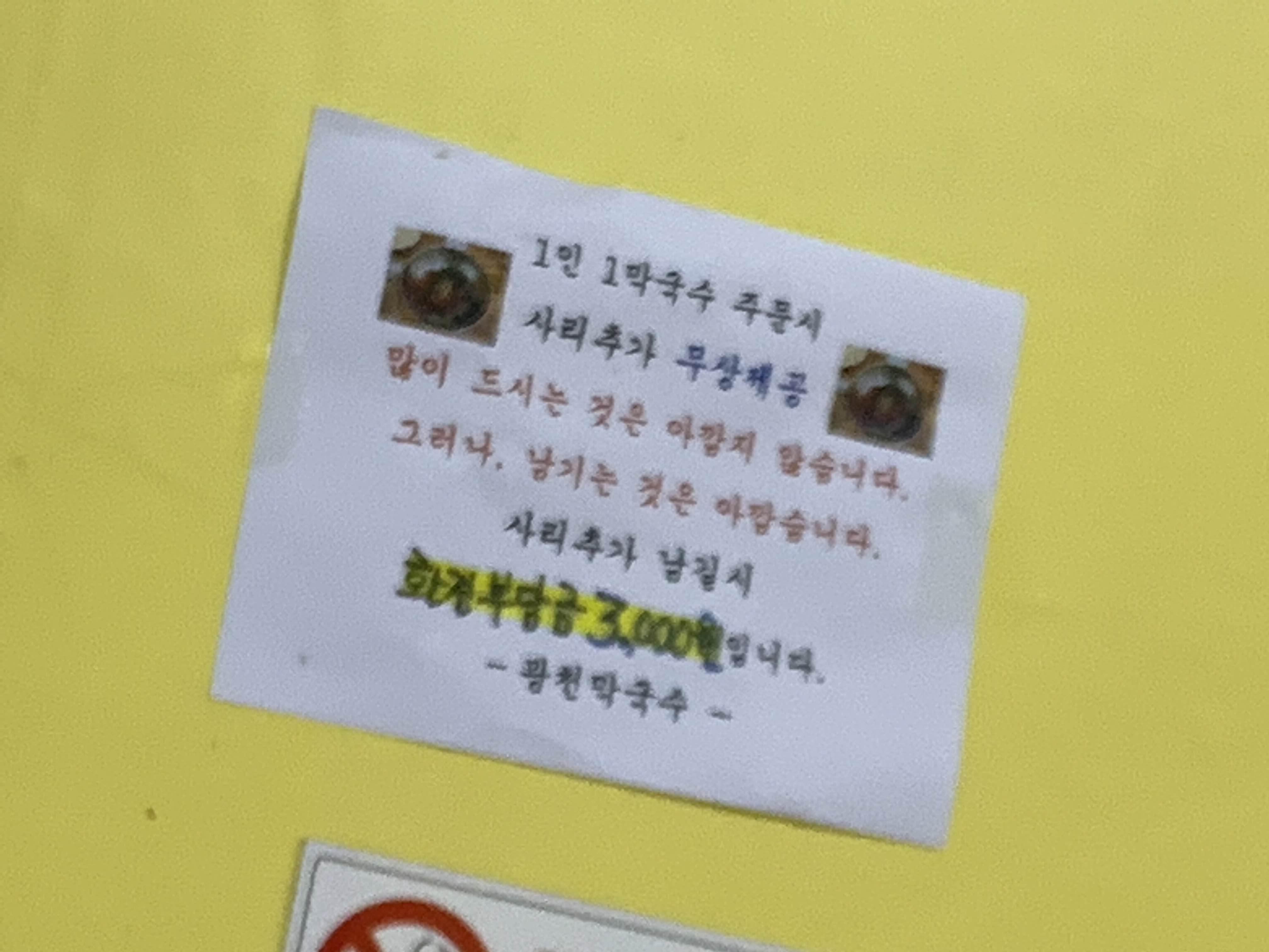 식당 한편에... 사리추가.... 무상제공이라는 안내문!