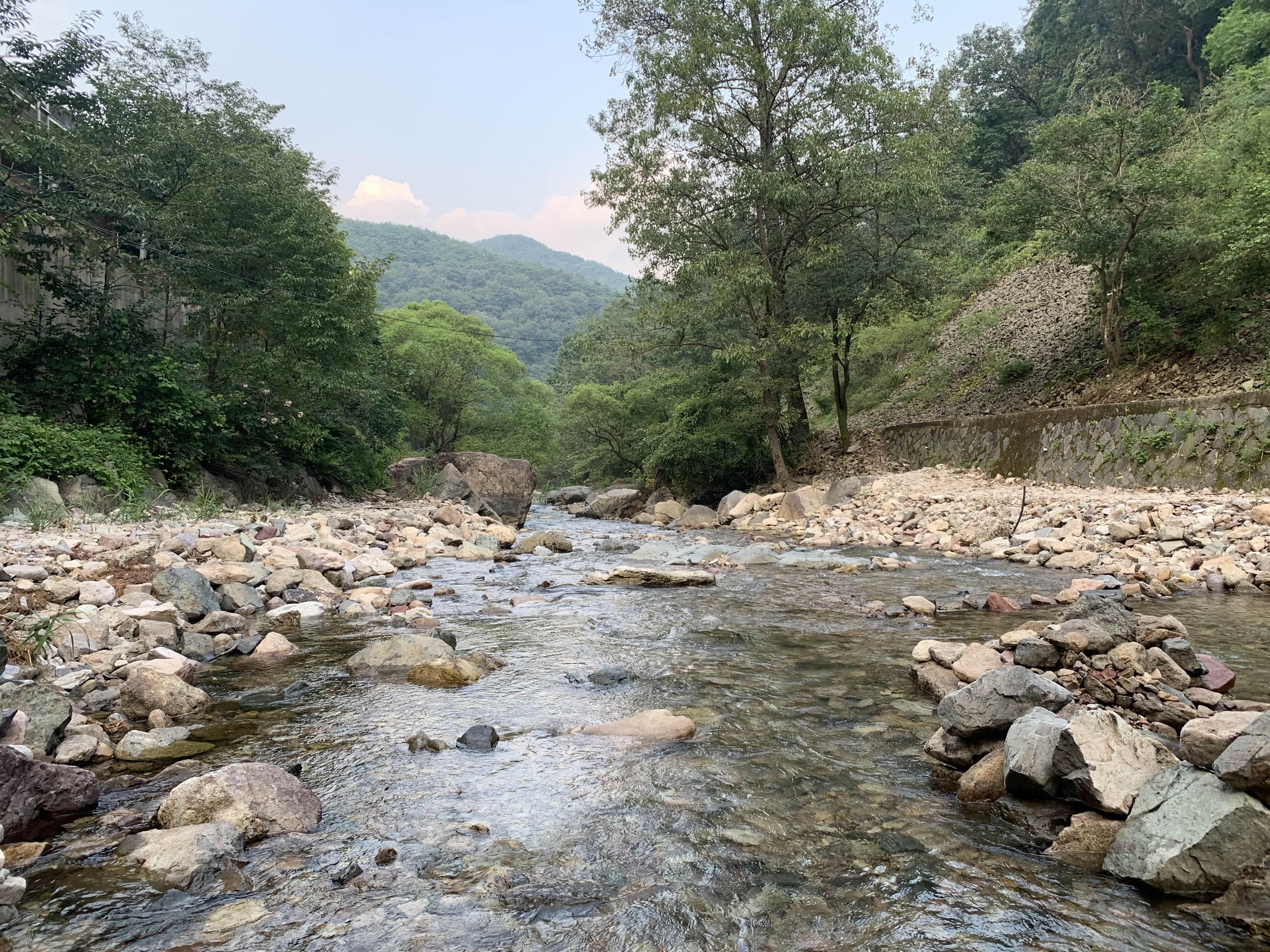 계곡의 자갈을 평평하게 만들어서 그런지.... 물고기가 보이지 않는데.... 계곡에 수풀이 없어져서 그런가?