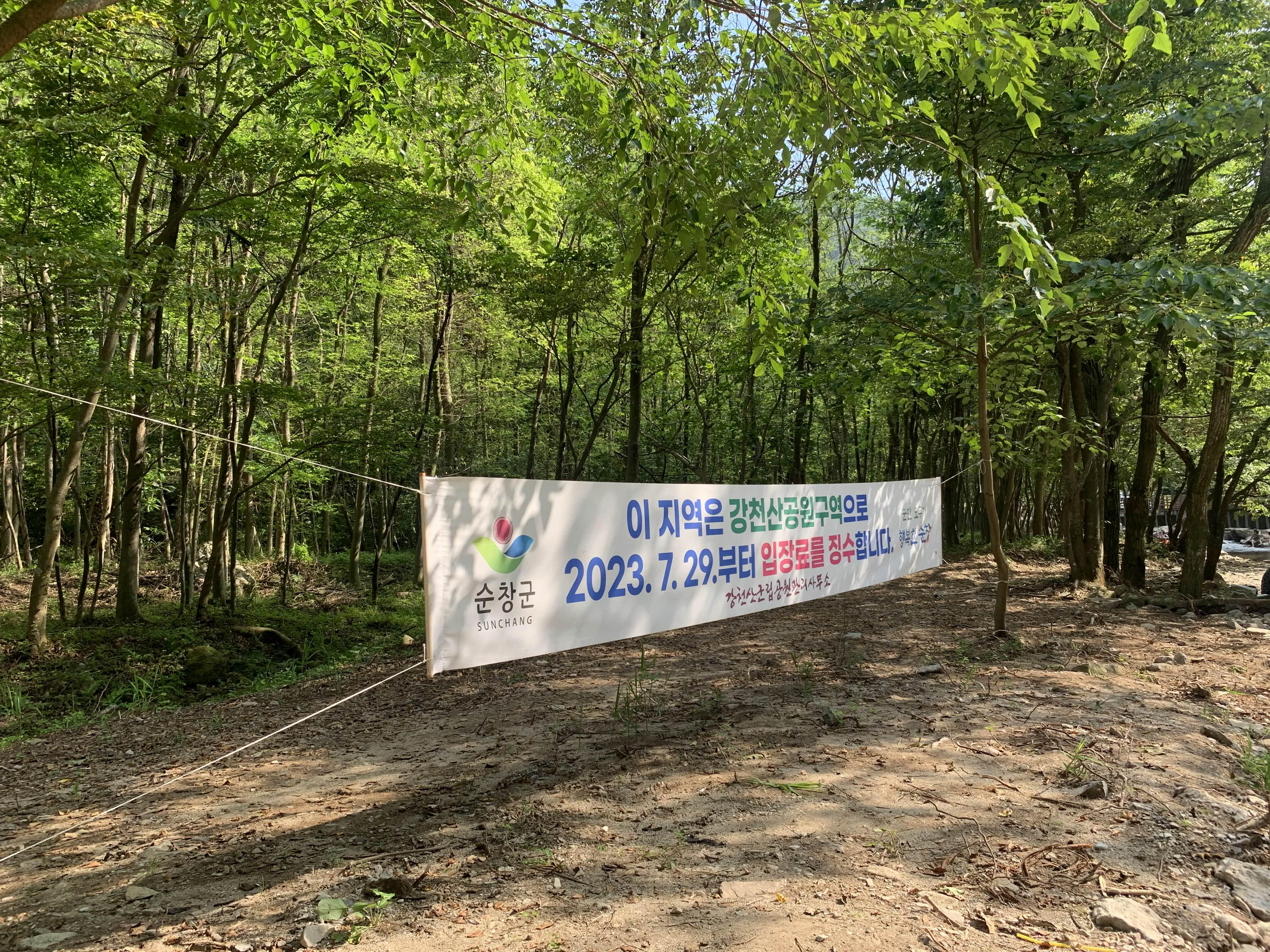강천산공원구역으로 2023년 7월 29일부터 입장료를 중수한다는 안내문이 보인다. 입장료가 너무 비싸다.
