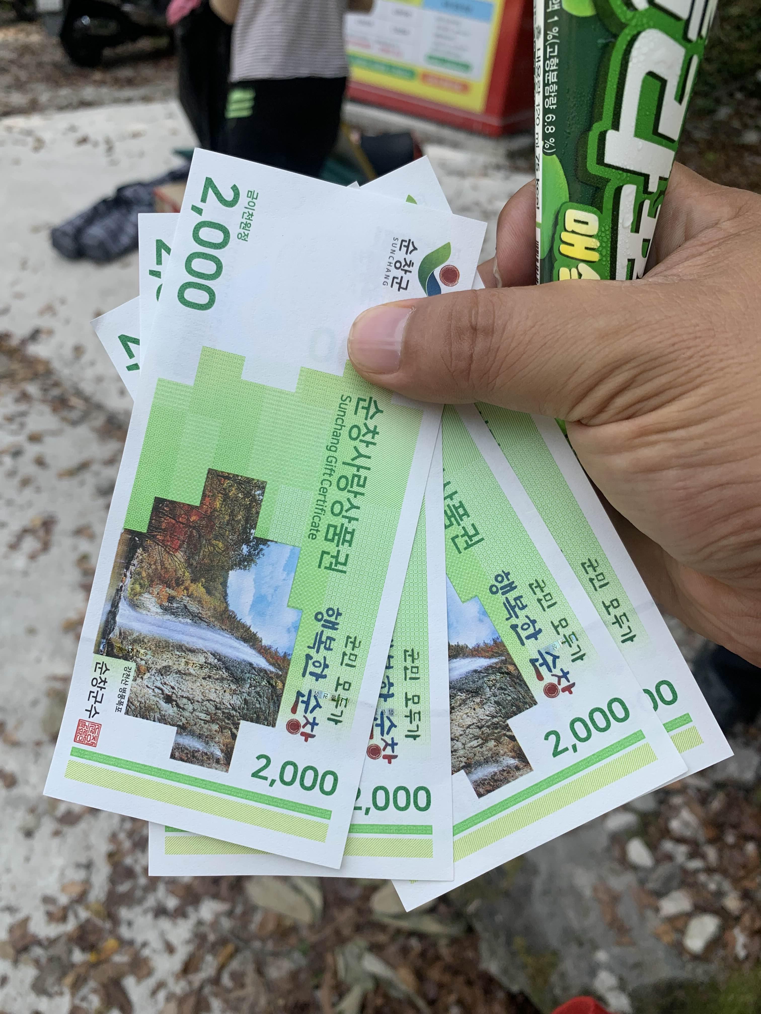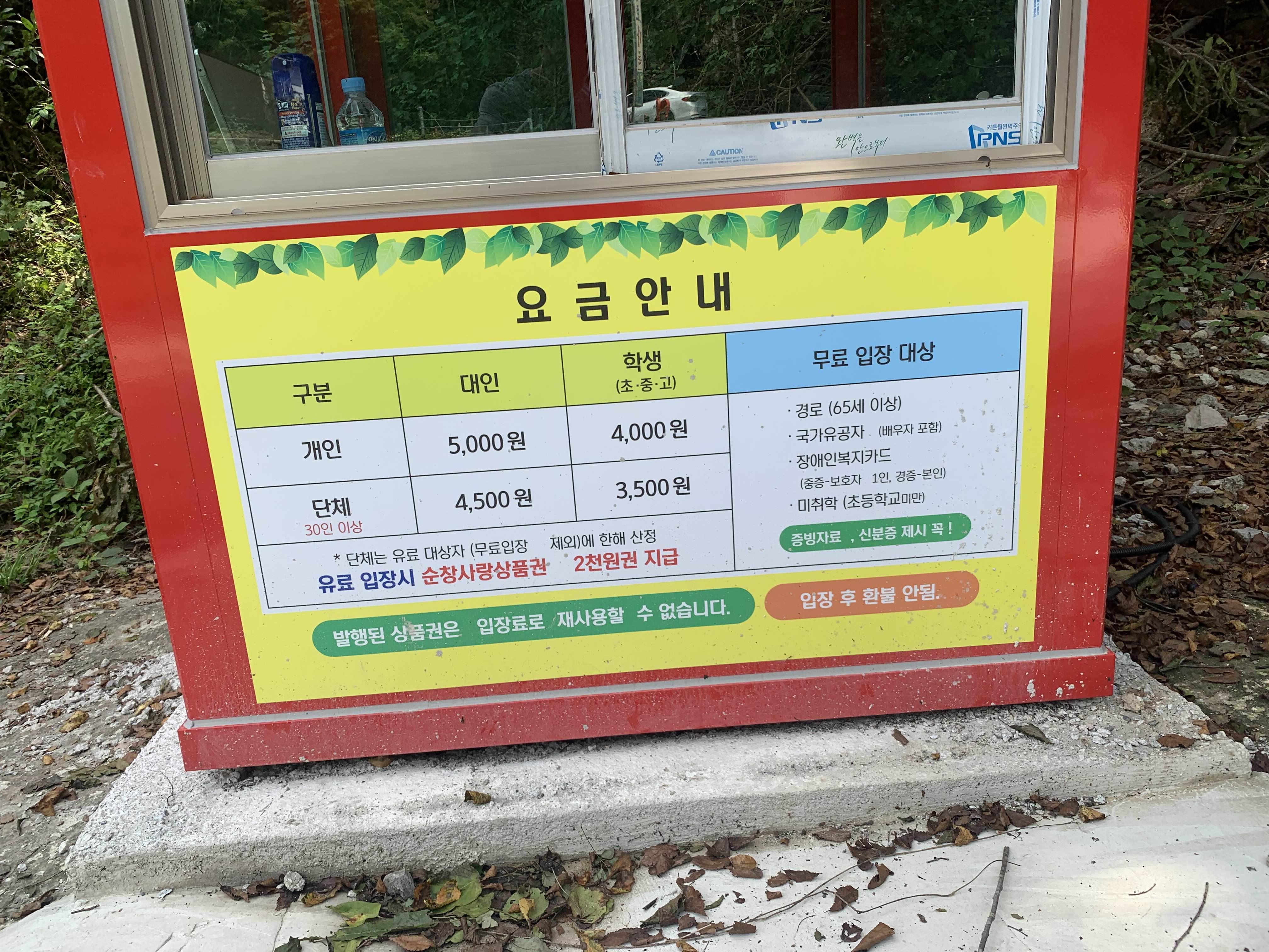 지역상품권으로 2천 원씩 교환해주기는 하지만... 계곡을 이용하는 비용이 5,000원.... 4인 가족 20,000원이면 상당히 비싸다. 그렇다고 물놀이 시설이 있는 것도 아니고, 물놀이 편의시설(샤워장, 탈의실 등)이 마련되지도 않았는데.... 1인 5,000원은 상당히 비싸게 느껴진다.