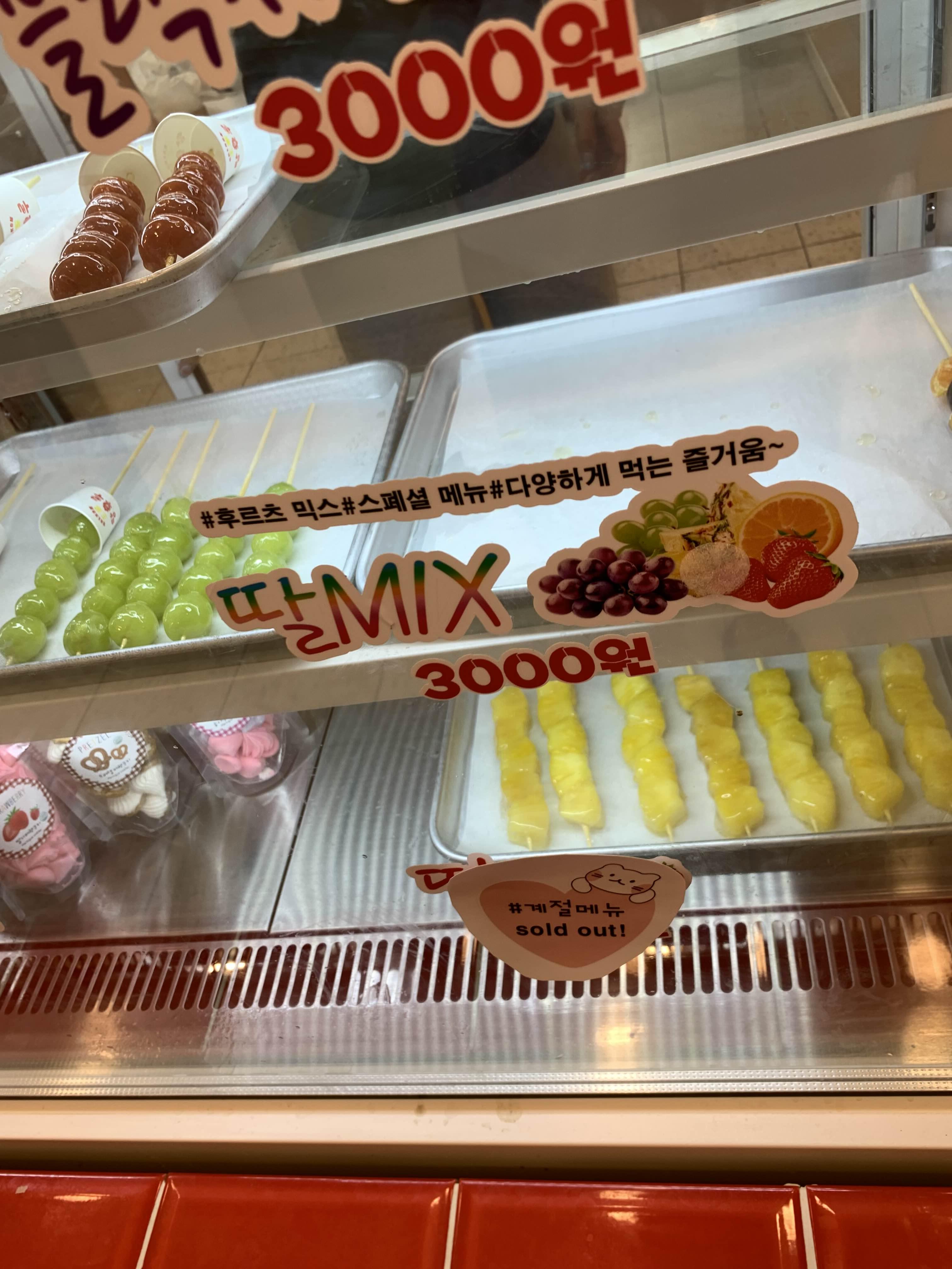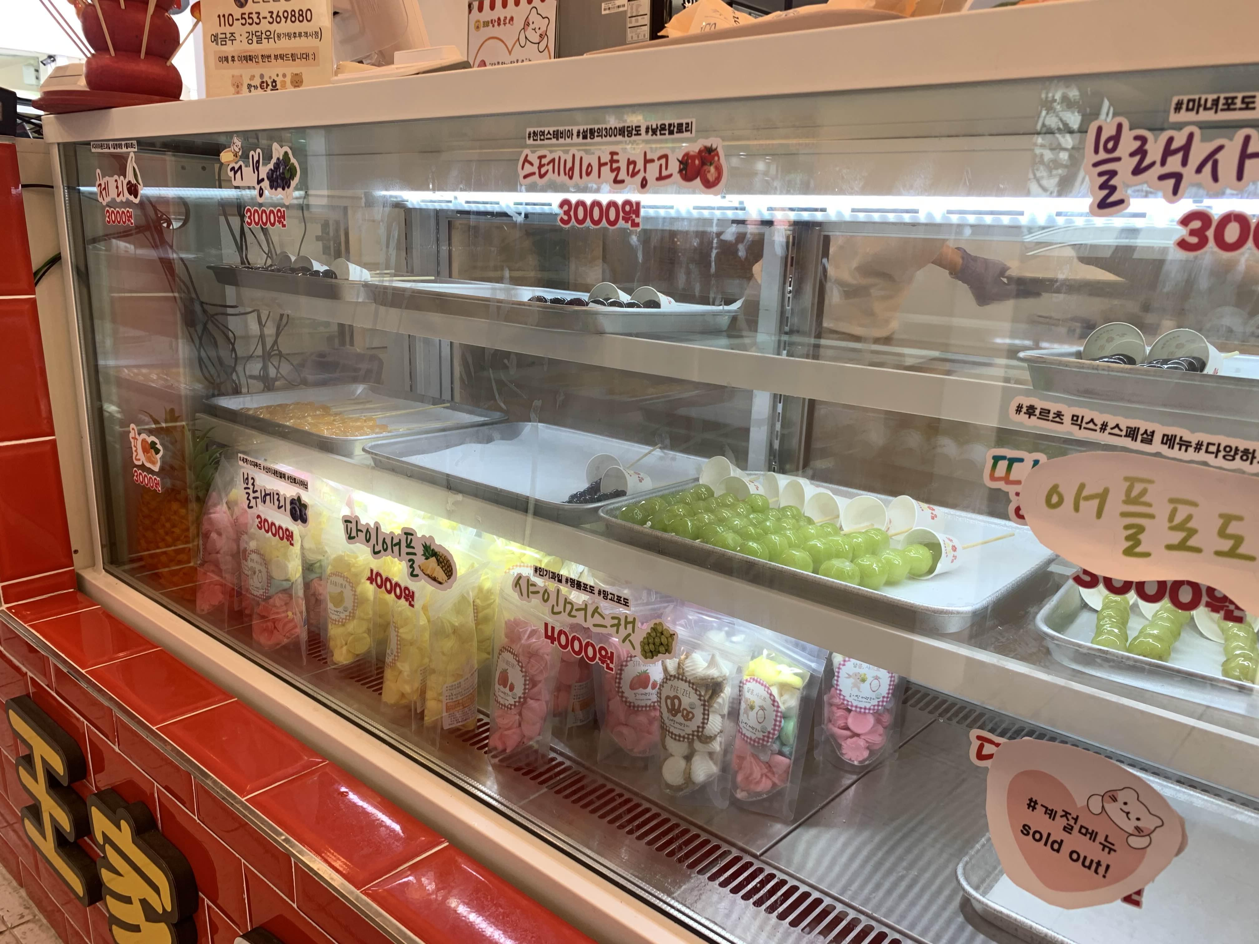 매장에 들어서면.... 다양한 종류의 탕후루가 보인다. 가격은 3,000원~