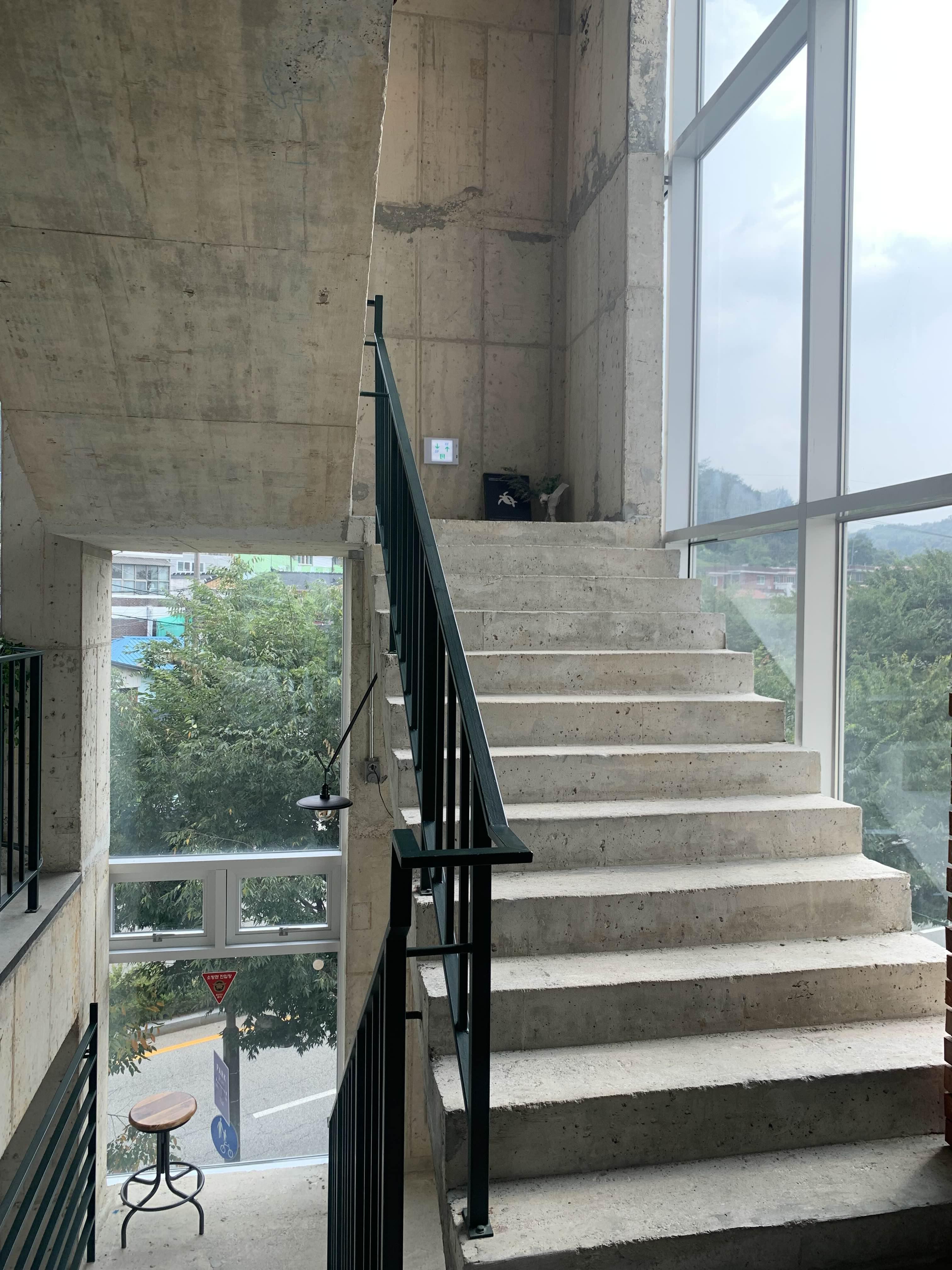 이런 마감의 시도가 좋게 다가왔다.(계단실 콘크리트 단차를 조절하면 일률적으로 단차구성이 가능하겠다는 생각이...)