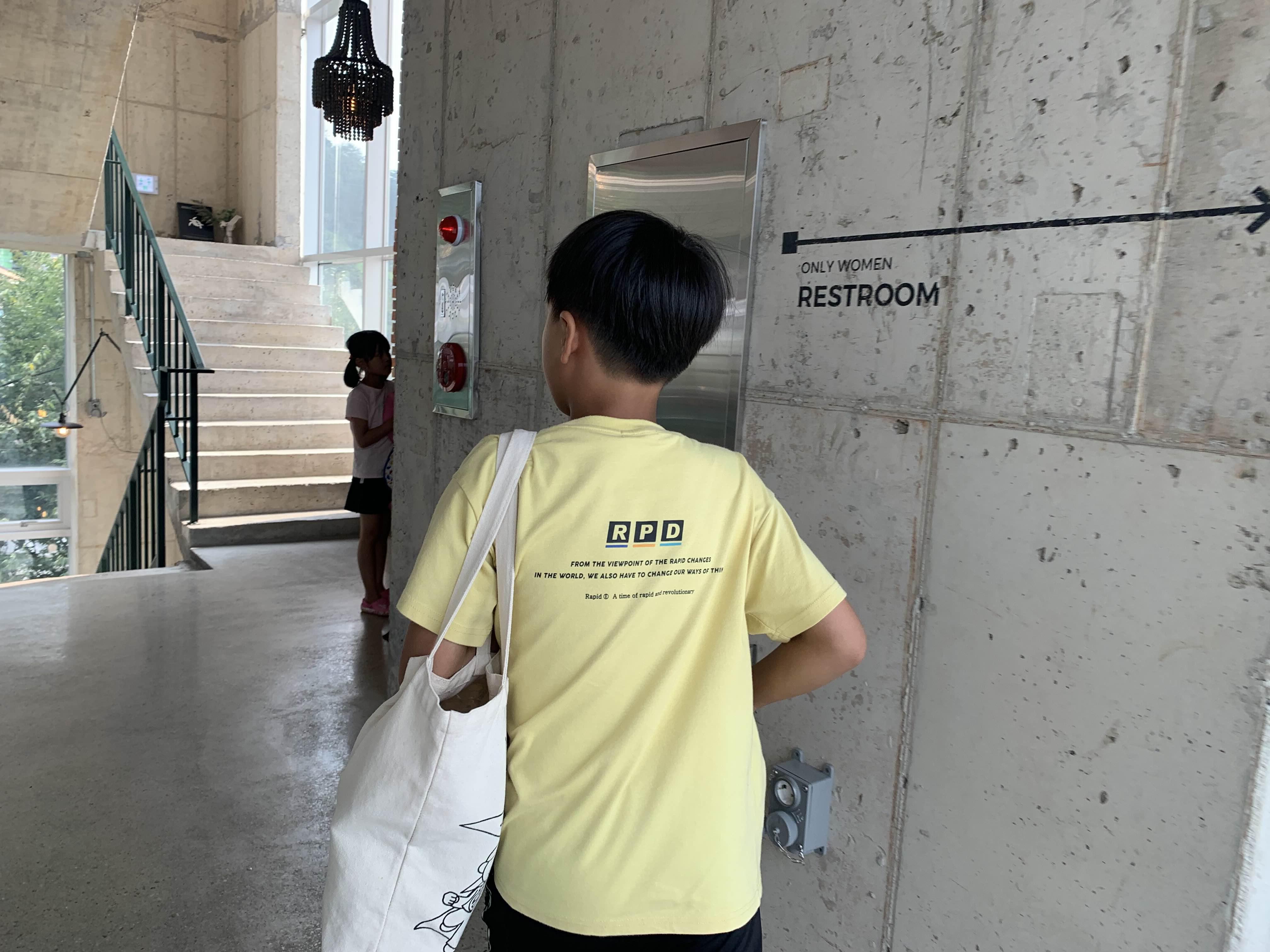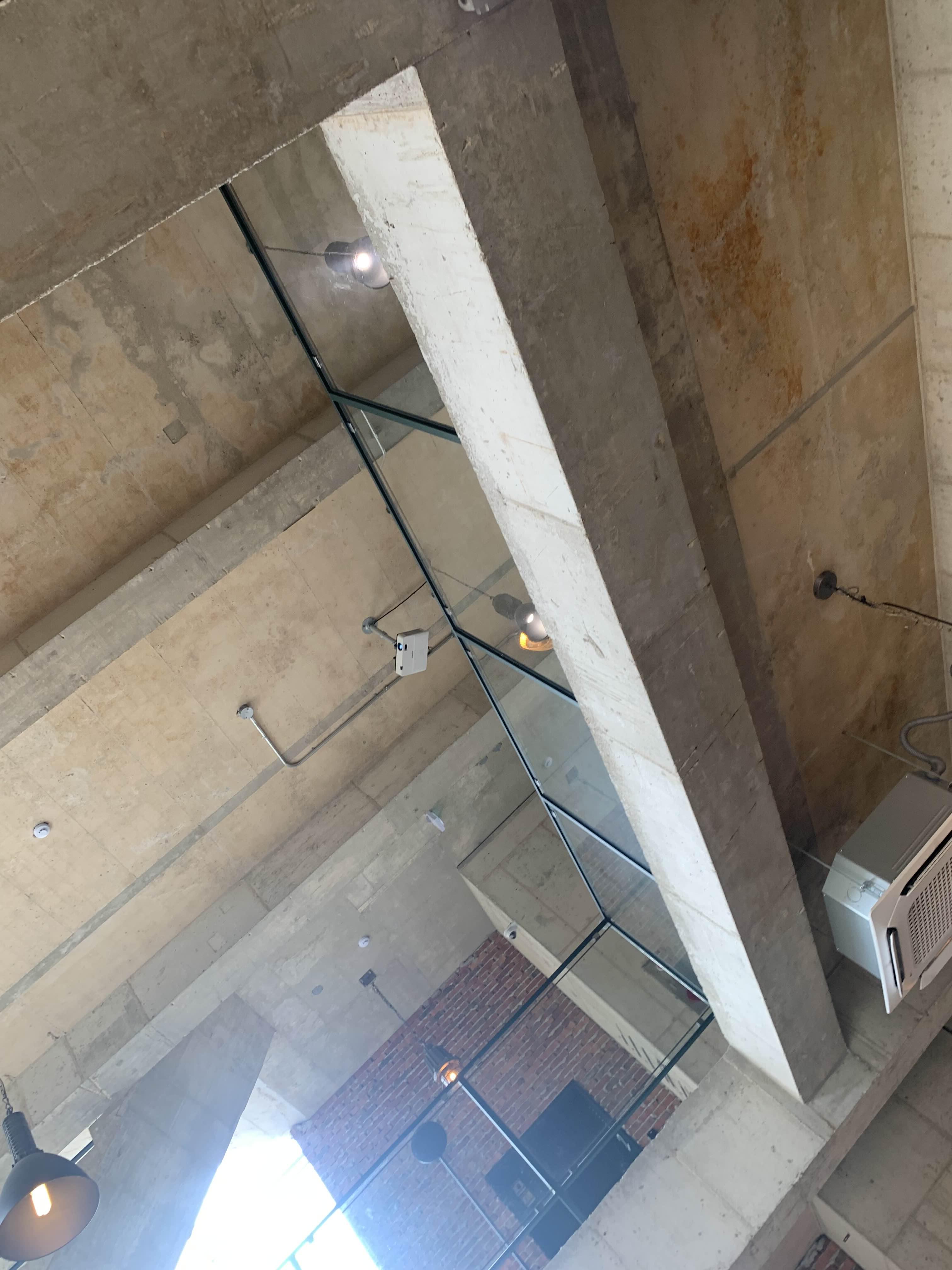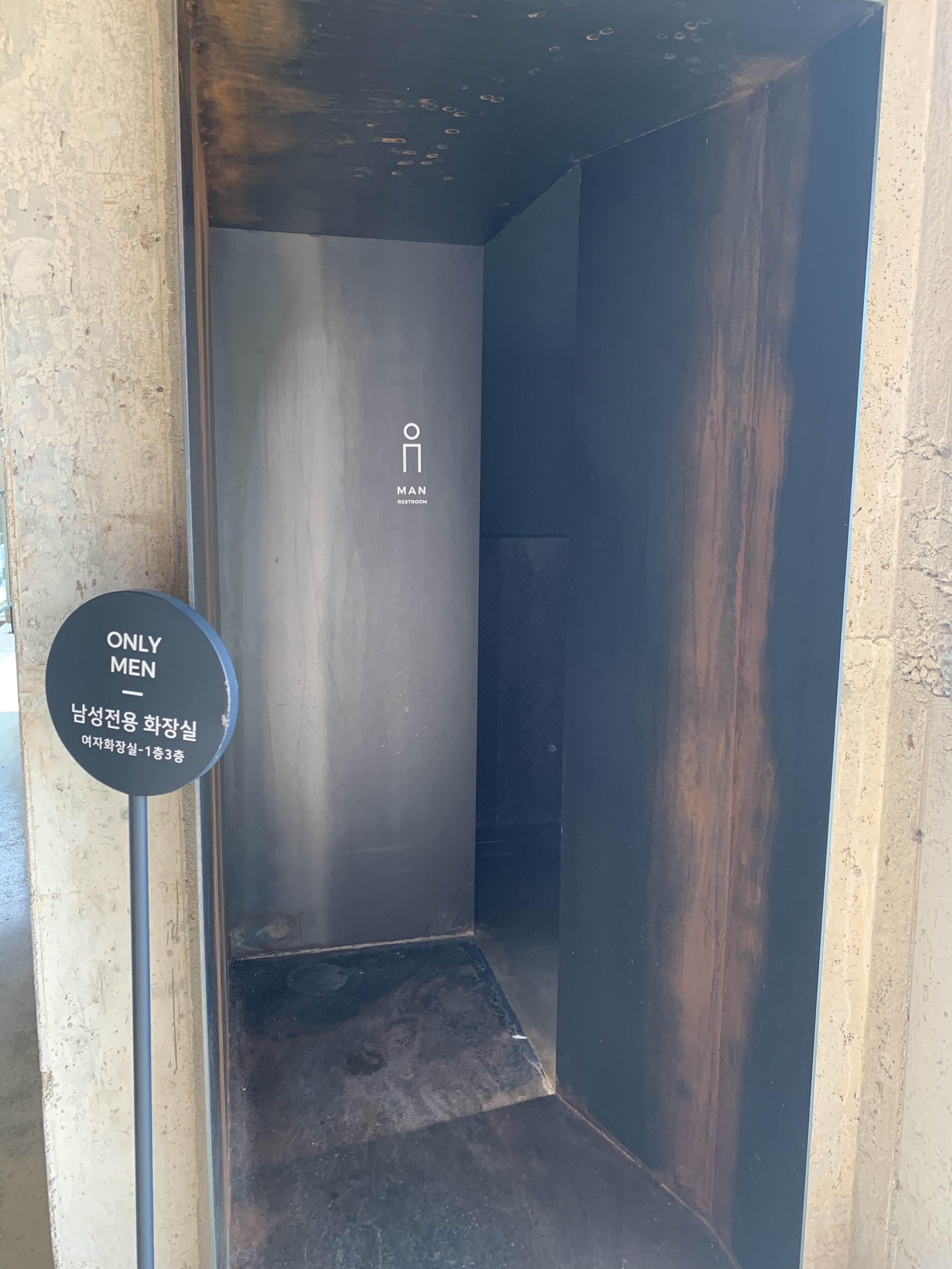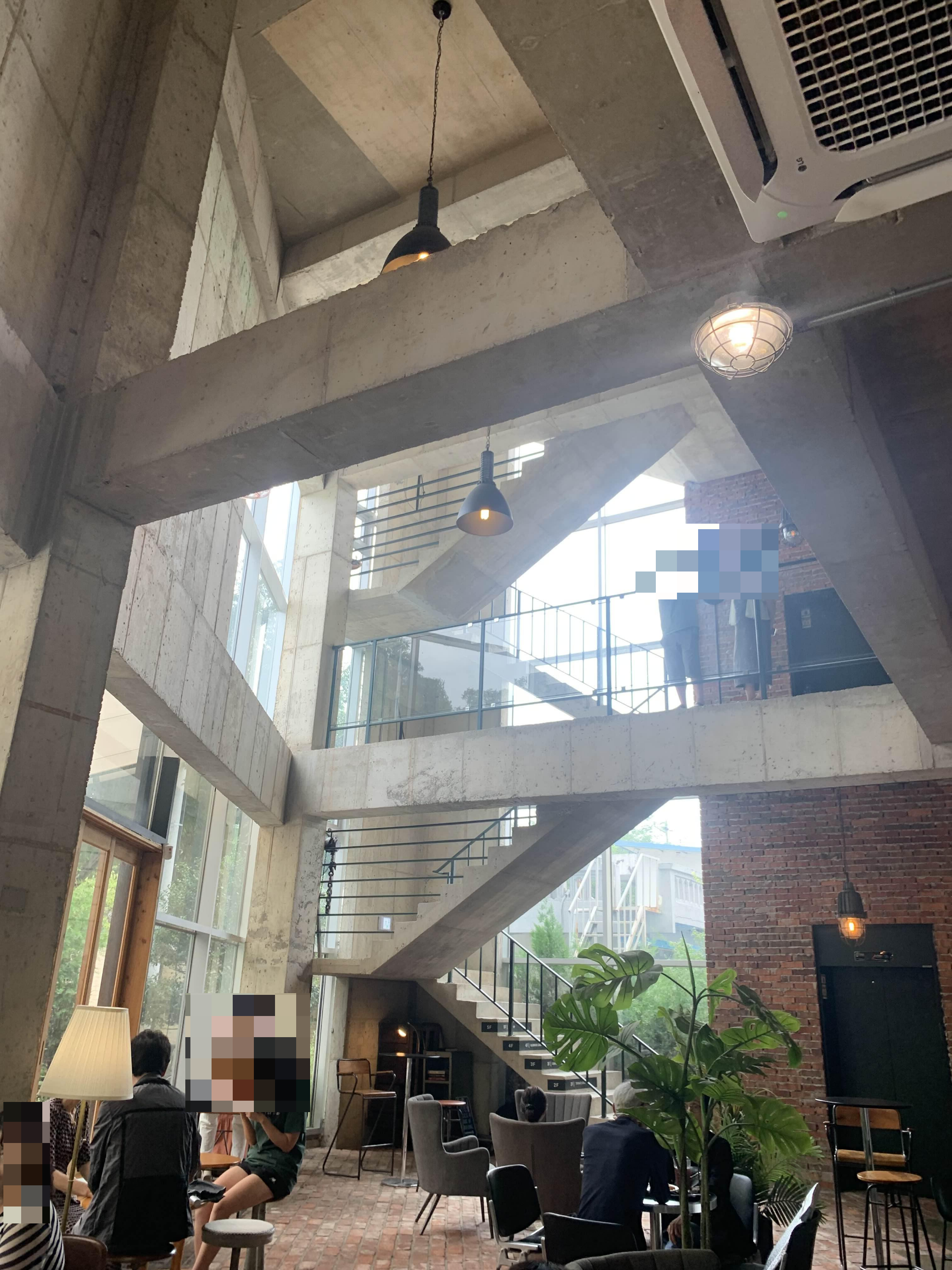 노출 콘크리트는 외부에 표출하는 방식인데... 여기는 내부가 노출이고, 외부는 마감재가 설치된.... 이색적인 느낌의 건축물 마감이었다.