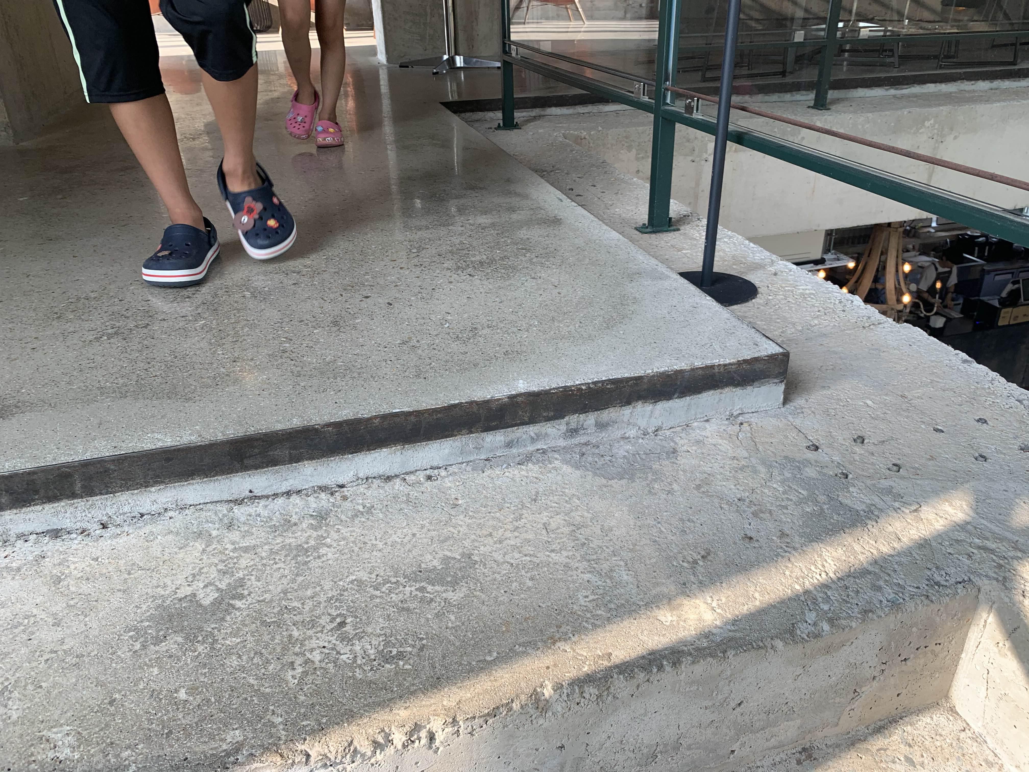 이런 차이를 처리하기 위해 바닥면 마감(테라조 스타일)과 노출 계단의 단차를.... 계단의 단차로 처리하였다.