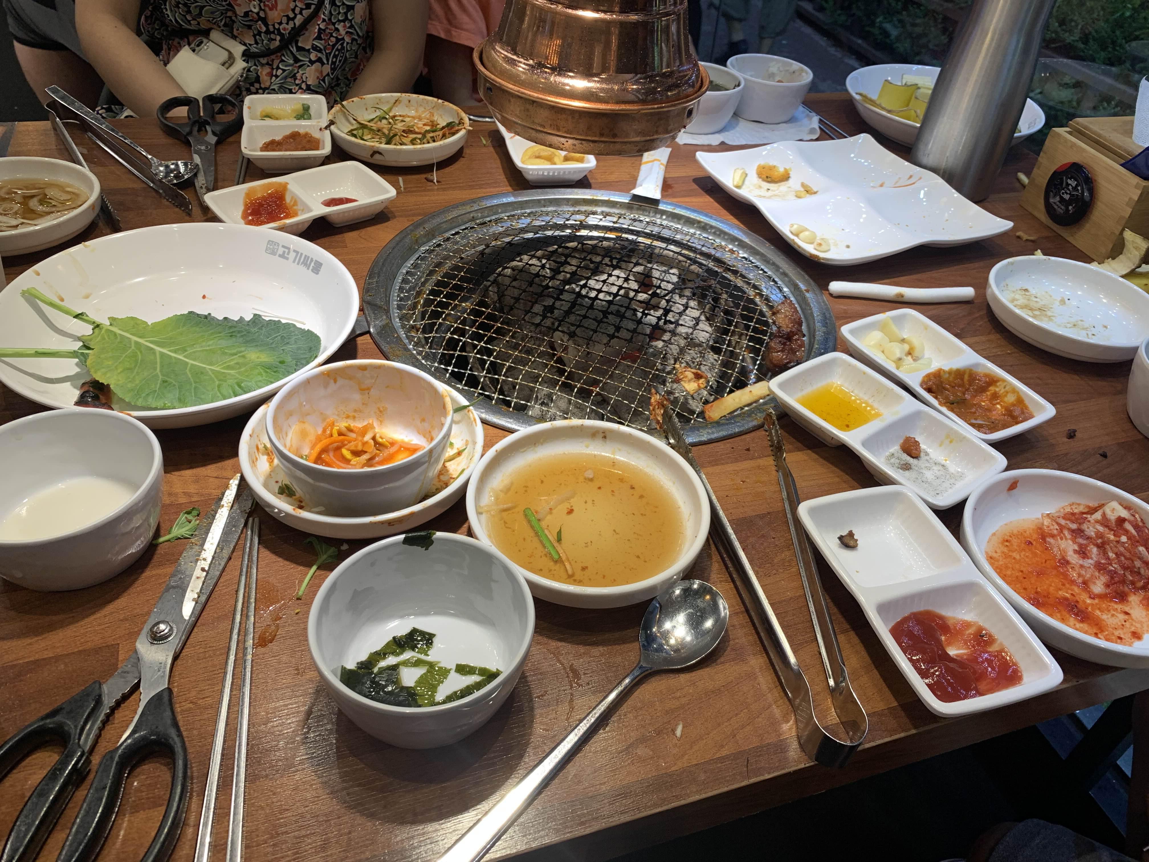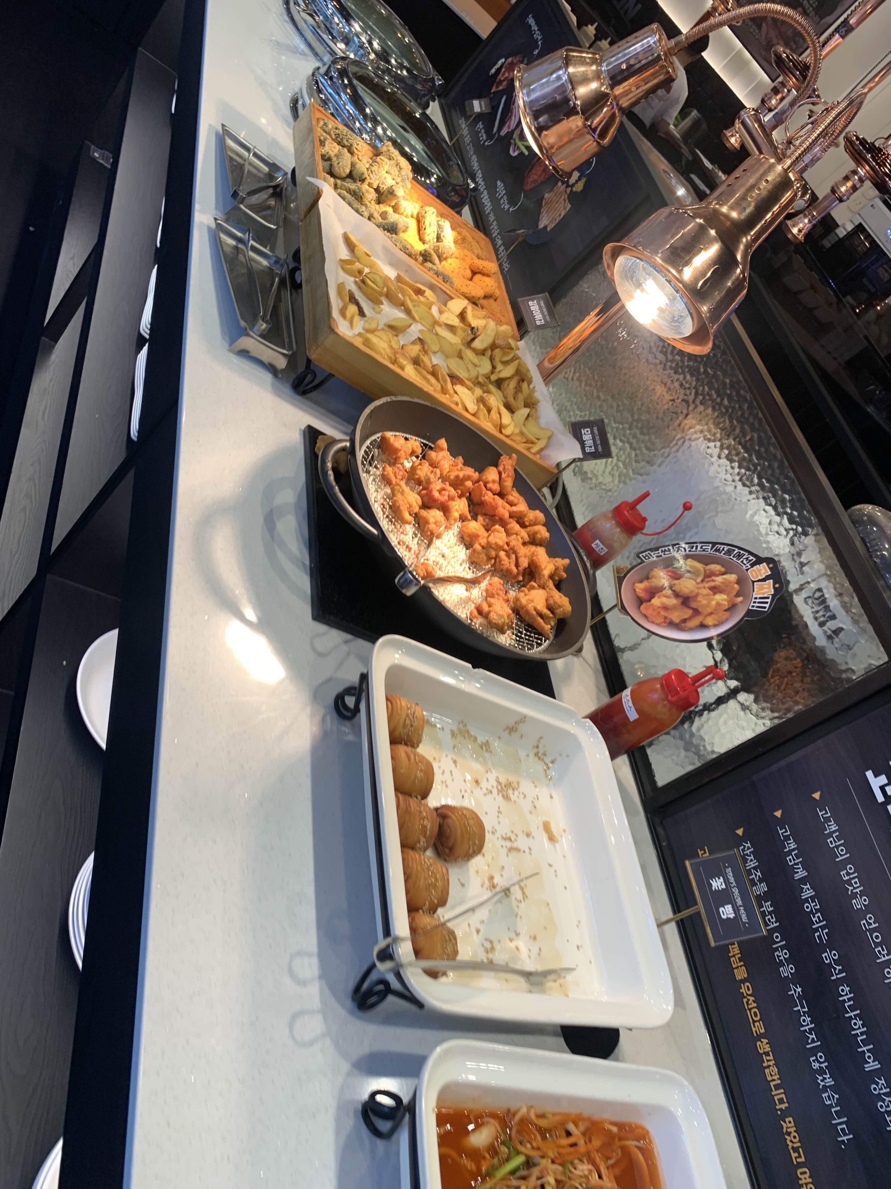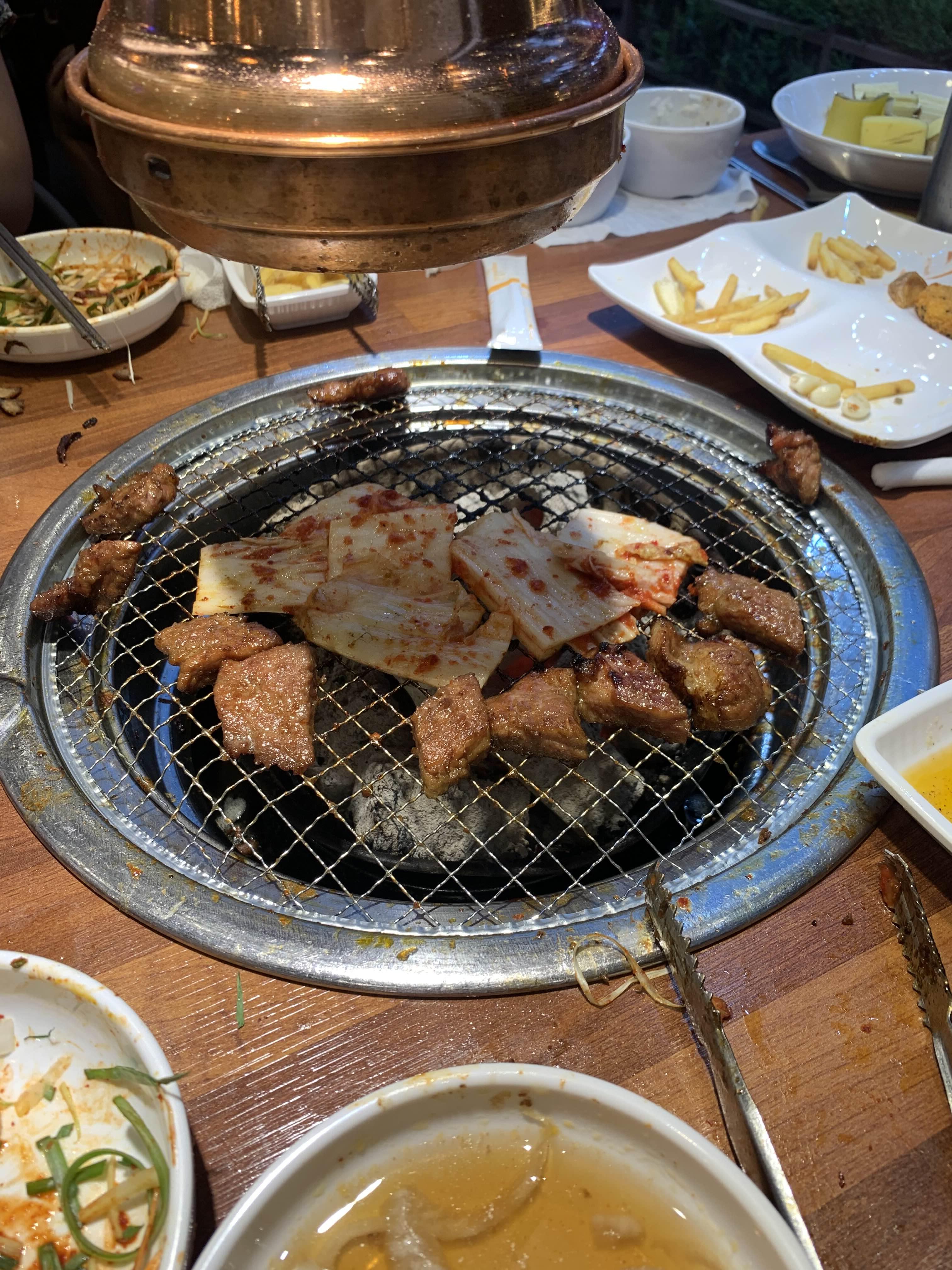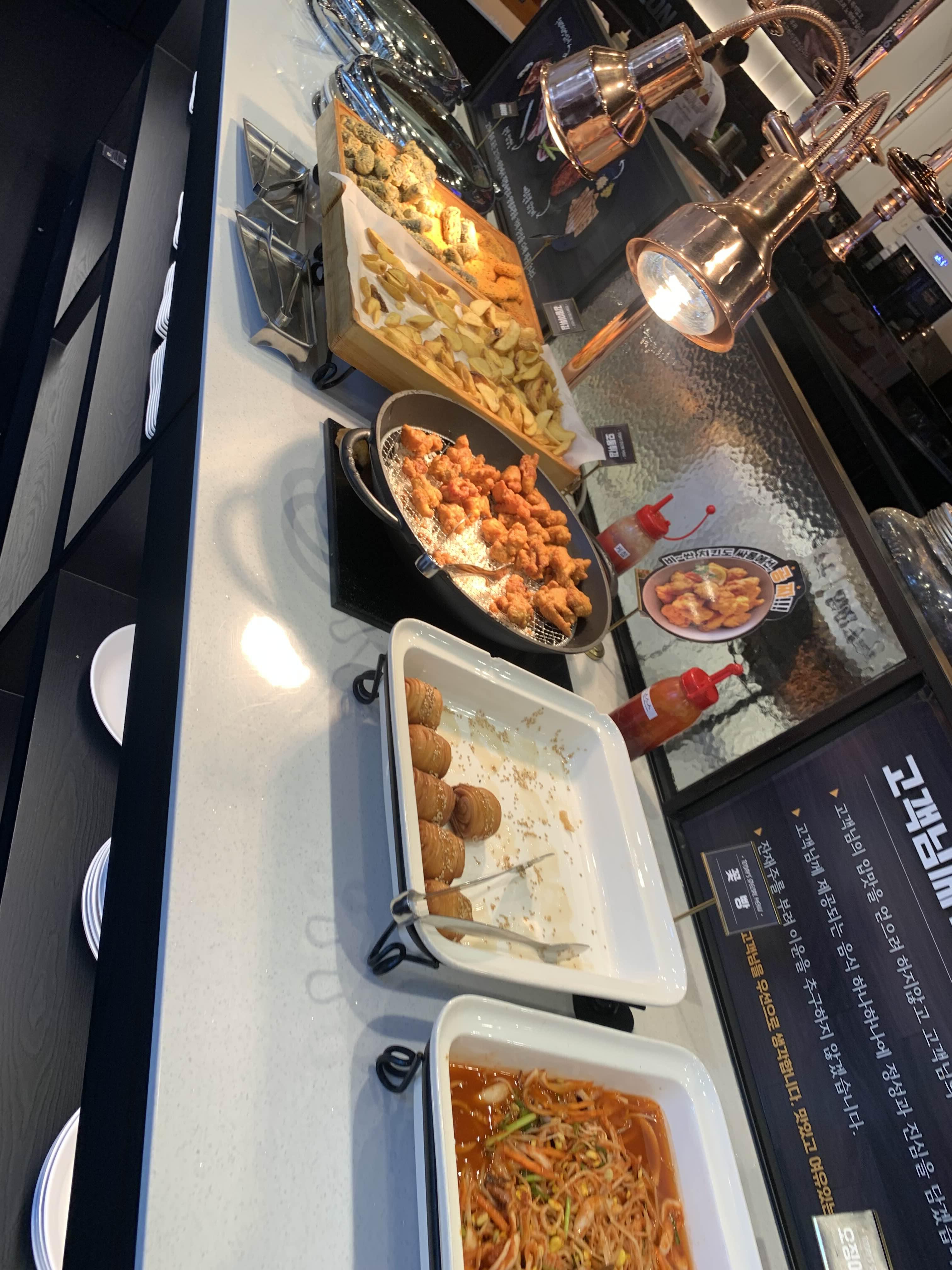 구워 먹을 수 있는 고기와 미리 조리된 음식으로 구분되어 준비되어 있습니다. 고기는 먼저 양념이 아닌, 삼겹살 위주로 한번 구워 먹고... 그 후 양념불판을 바꾸어 구워 먹는 스타일입니다.