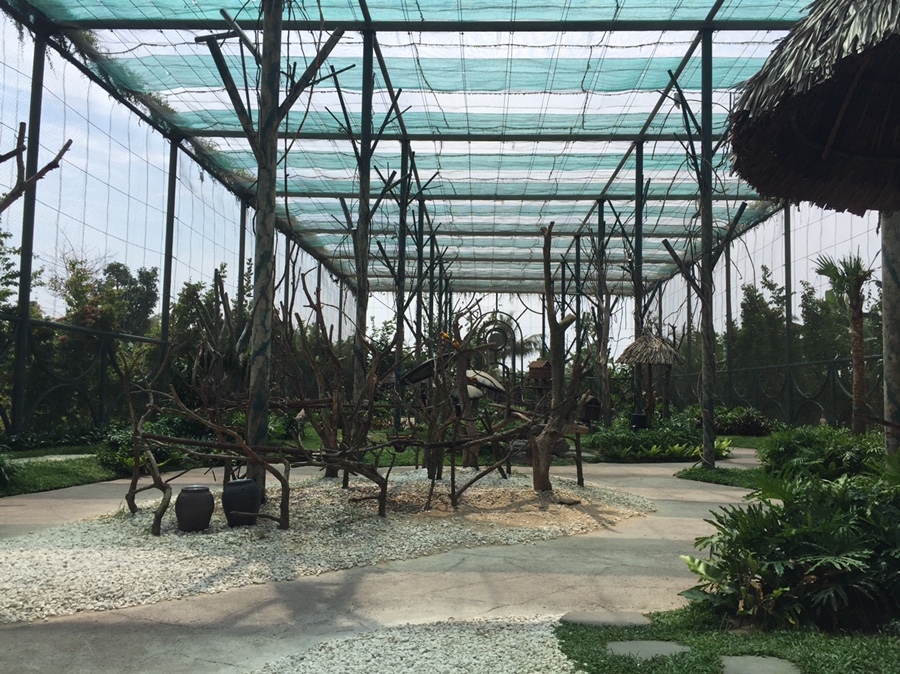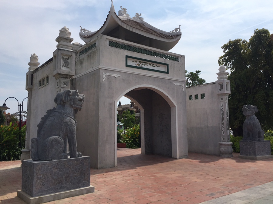 앵무새 새장에서 베트남 민속촌으로 이동했네요. 빈펀랜드가 에버랜드 축소판으로 만들어 놓은 거 같았네요. 에버랜드와 다른 점이 있다면... 에버랜드는 산으로 둘러싸여 있는데.... 빈펄 랜드는 주변이 넓은 평야로 되어있어.... 방문객이 늘어나면 확장 가능성이 엄청난 규모로 확장이 가능하겠더군요.ㅎㅎ 베트남 민속 주택에 들어가 보니... 문지방이 조금 높은 게 특징이었네요. 문지방이 높은 이유는 고온 다습에 대비해서 아래쪽으로 통풍구로 활용하기 위해서이네요. 때에 따라서 아래쪽을 막을 수 있는 구조로 되어있네요.