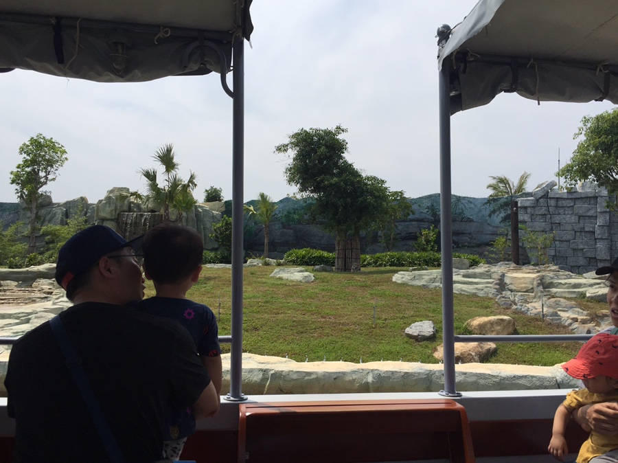 평일이라 그런 지 방문자가 많이 없었습니다. 우선 사파리와 민속촌을 들렸다가 놀이기구를 이용하기로 했네요. 사파리에 도착하니.... 사람이 한적하네요. 너무 한적해서 그런 지 30분? 간격으로 운행하고 있었네요. 자리에 앉아서 기다리고 탑승하니... 탑승하라고 한국말로 안내해줍니다. 사파리 배에 탑승인원은 모두 한국 관광객이었네요.ㅎㅎ 안내원이 한국말을 조금씩 하며 안내해주는데.. 아이들이 즐거워했네요.