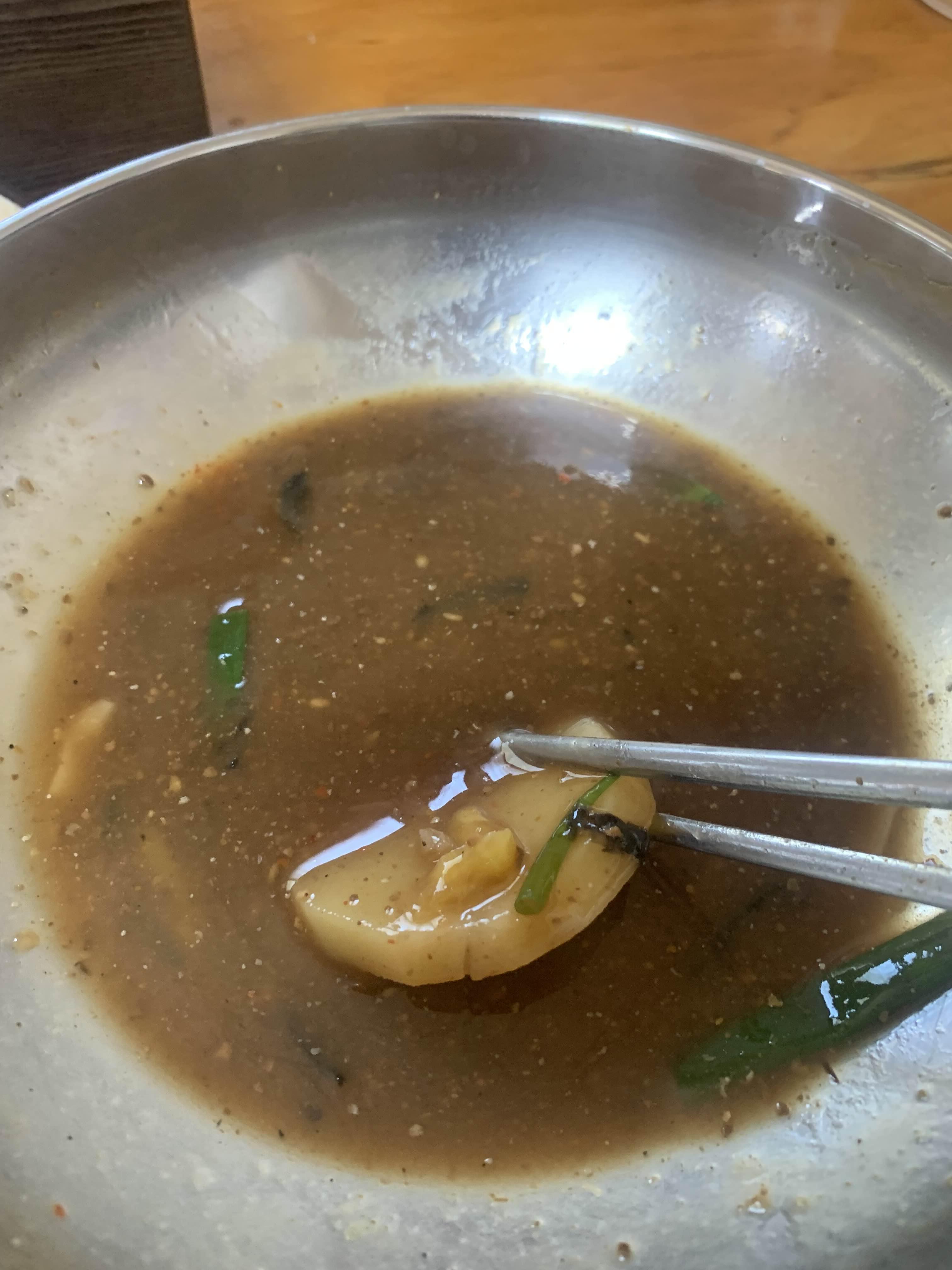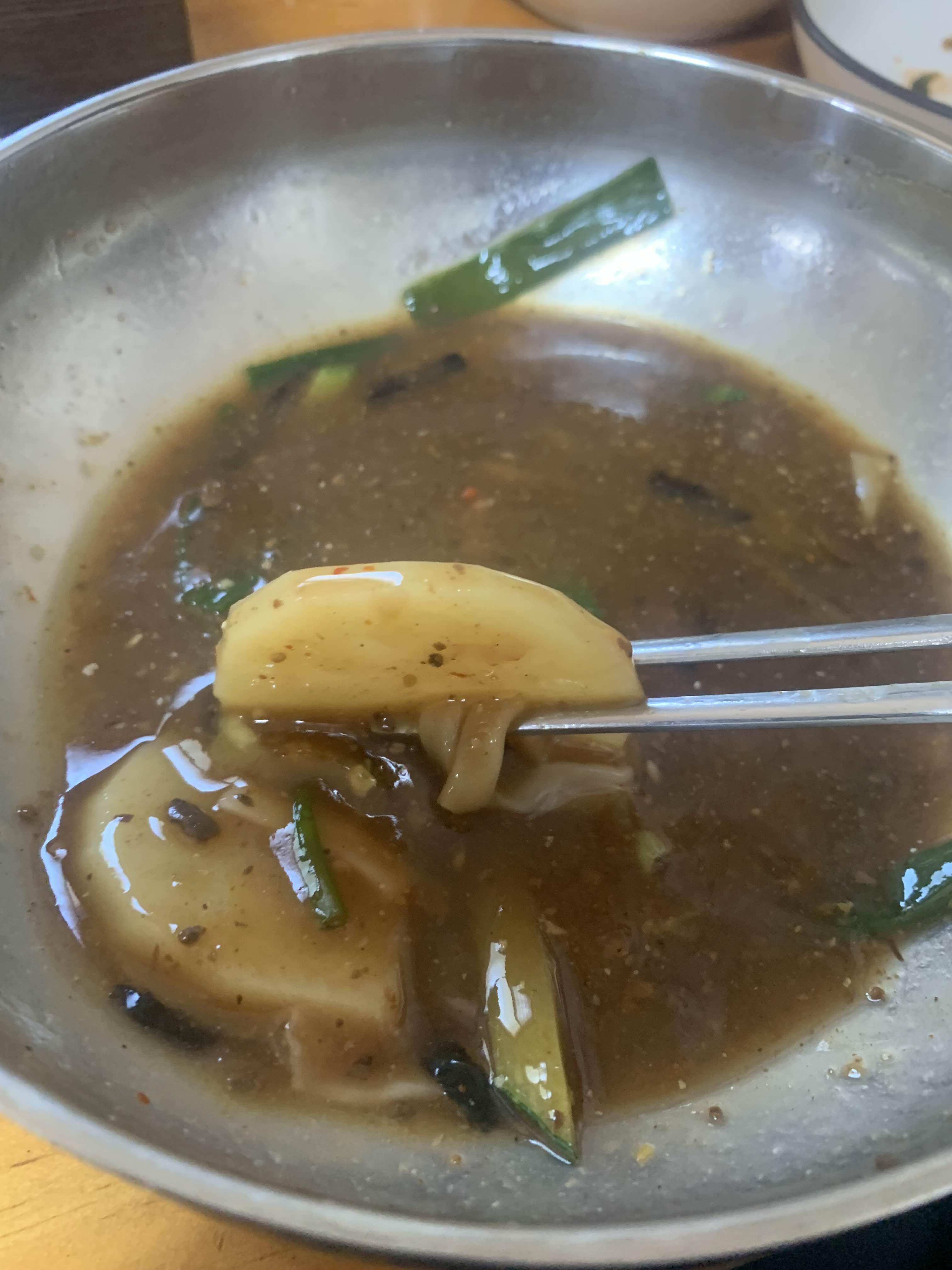 기존에 감자전은 청양고추가 없었던 거 같은데.... 이번에 쏭쏭 썰어진 청양고추가 들어가니.... 알싸한 맛가지 추가되어 더 입맛을 당긴다. 6,500원 감자전이 2개.... 정말 가성비 최고다.