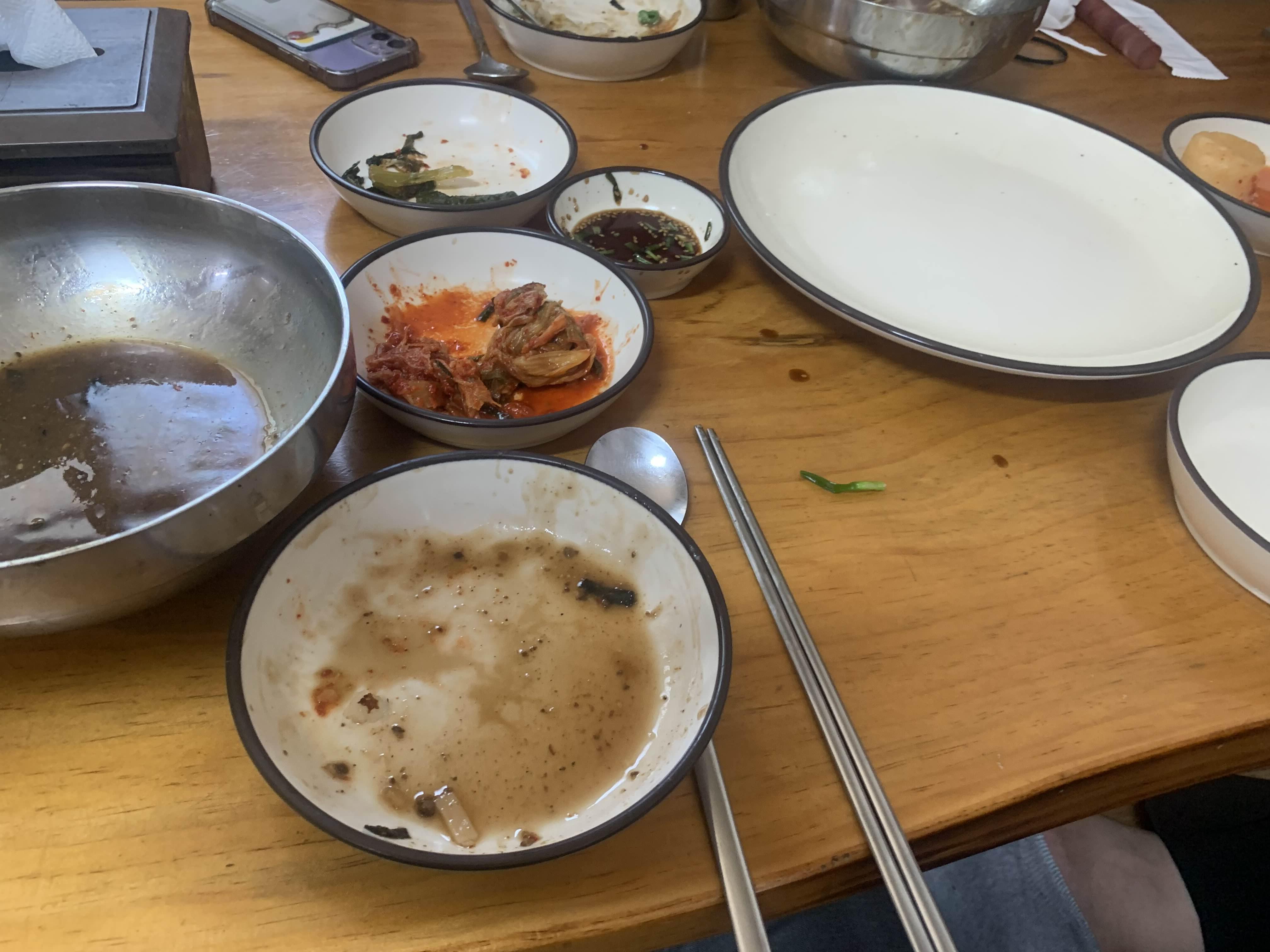 어느 순간 뚝딱 끝나버렸다. 칼국수와 감자전..... 양도 많고, 가격은 저렴하고.....