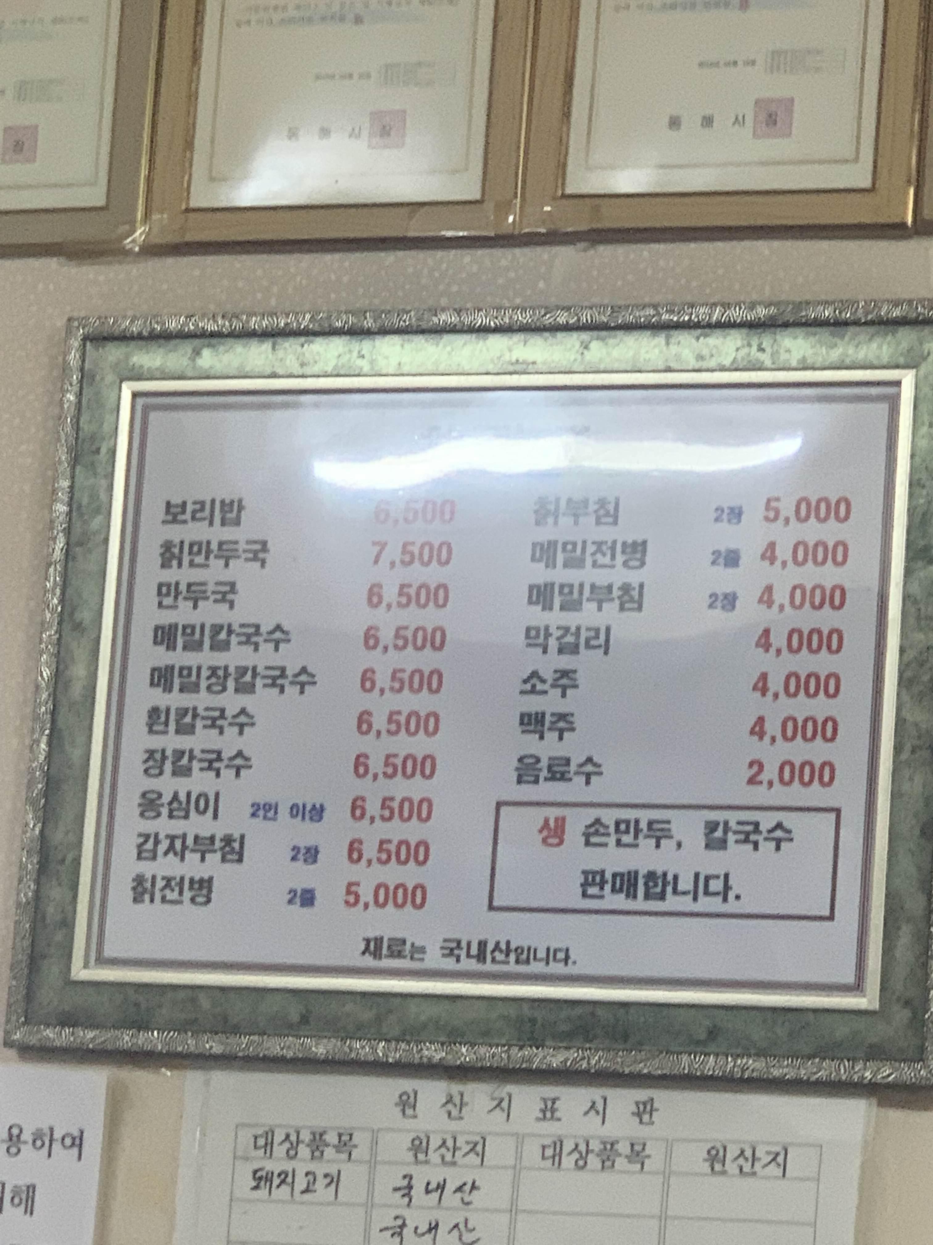 메뉴판은 지난 방문과 동일.... 가격이 참 착하다.