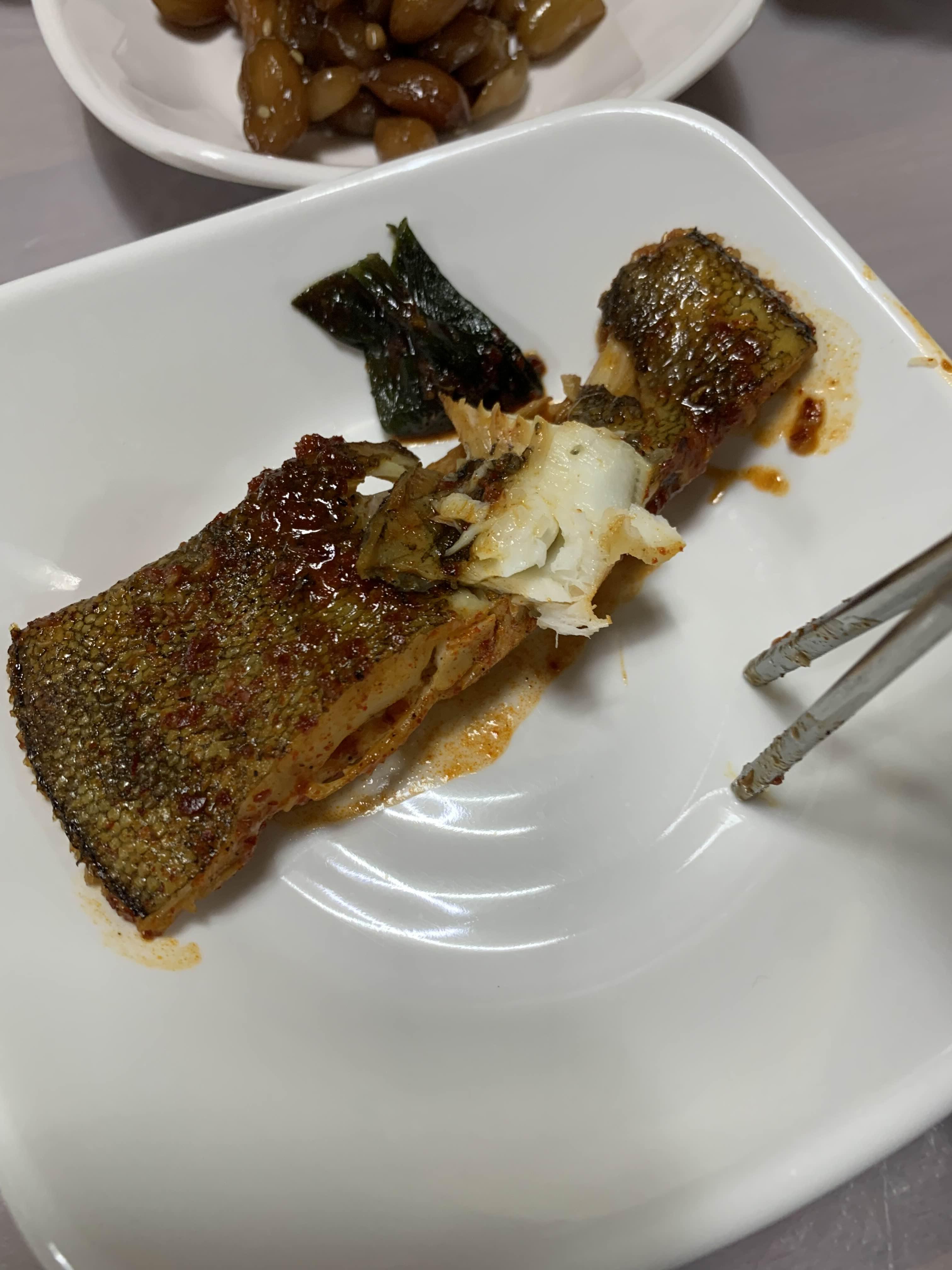 생선을.... 살짝 말려서 만들지 않고... 생으로 만든 생선 같다. 고기가 생각보다 부드럽다.