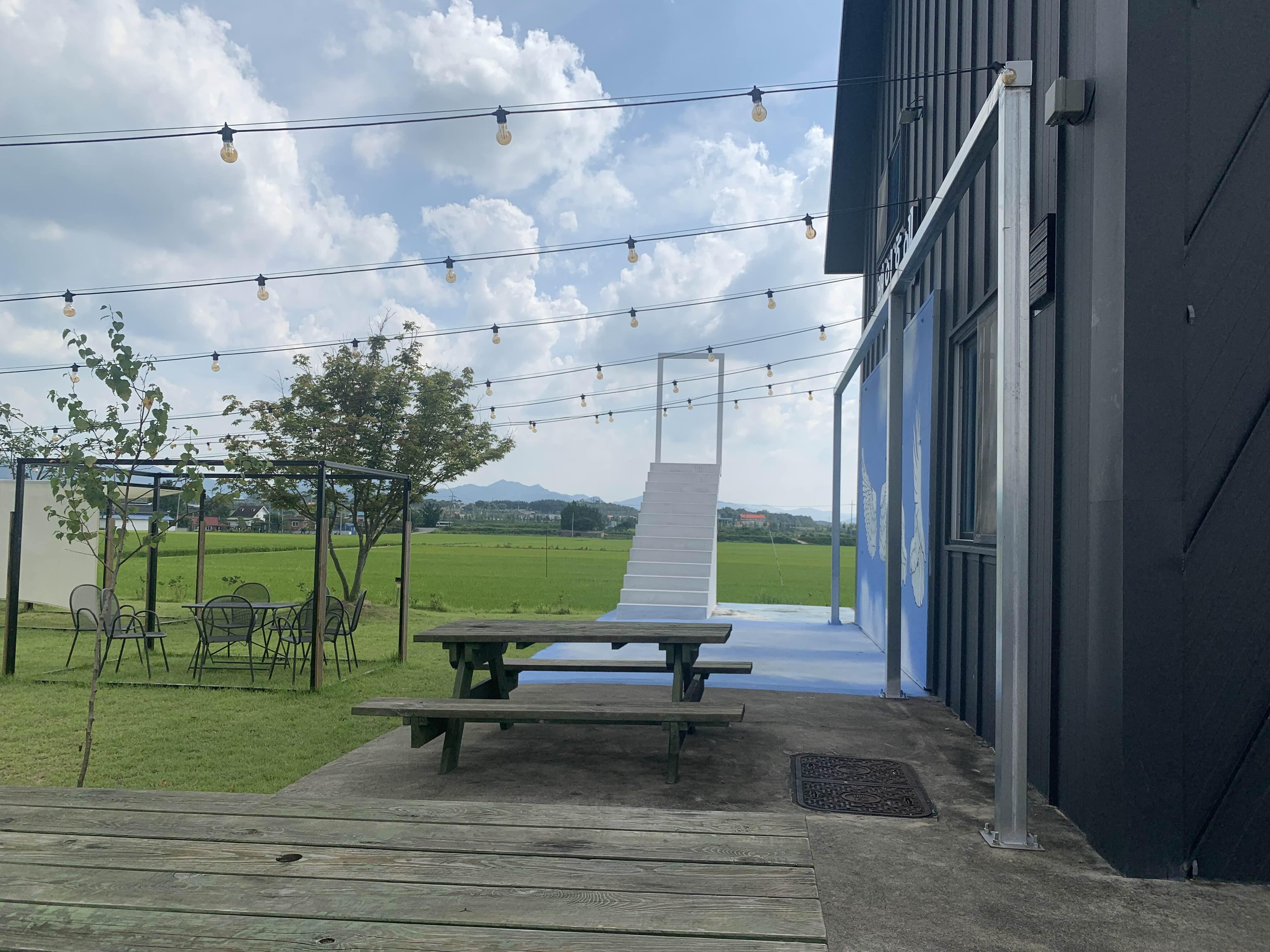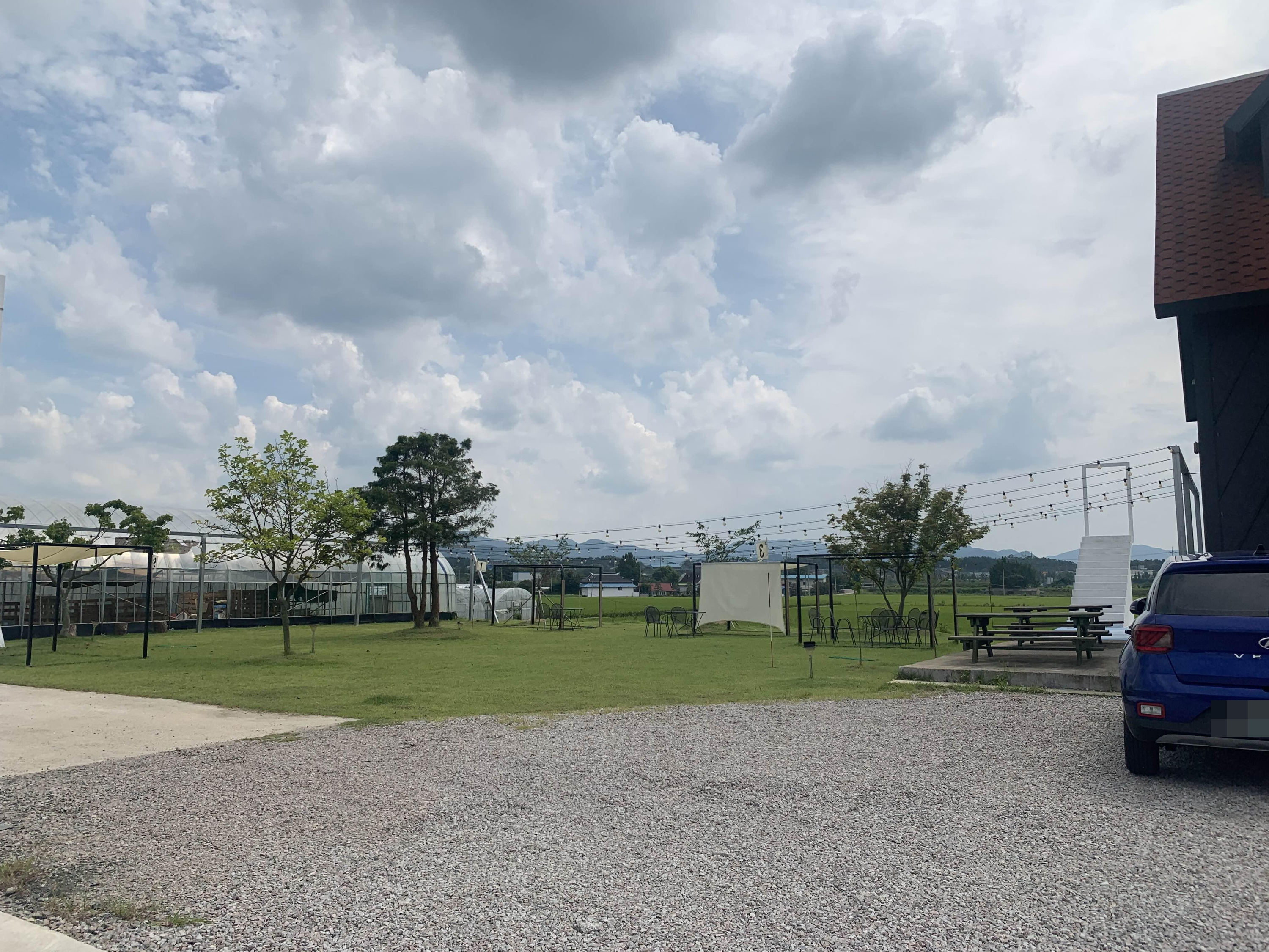카페 내 잔디광장이 잘 꾸며져 있어서.... 개방감이 있어서 좋았다. 그리고.... 카페 전면에 드넓은 평야가 있어서... 더욱이 개방감이 좋다. 근처 다른 카페도 있는데... 그쪽 카페도 좋아 보인다. 그리고... 쌈밥집도;;