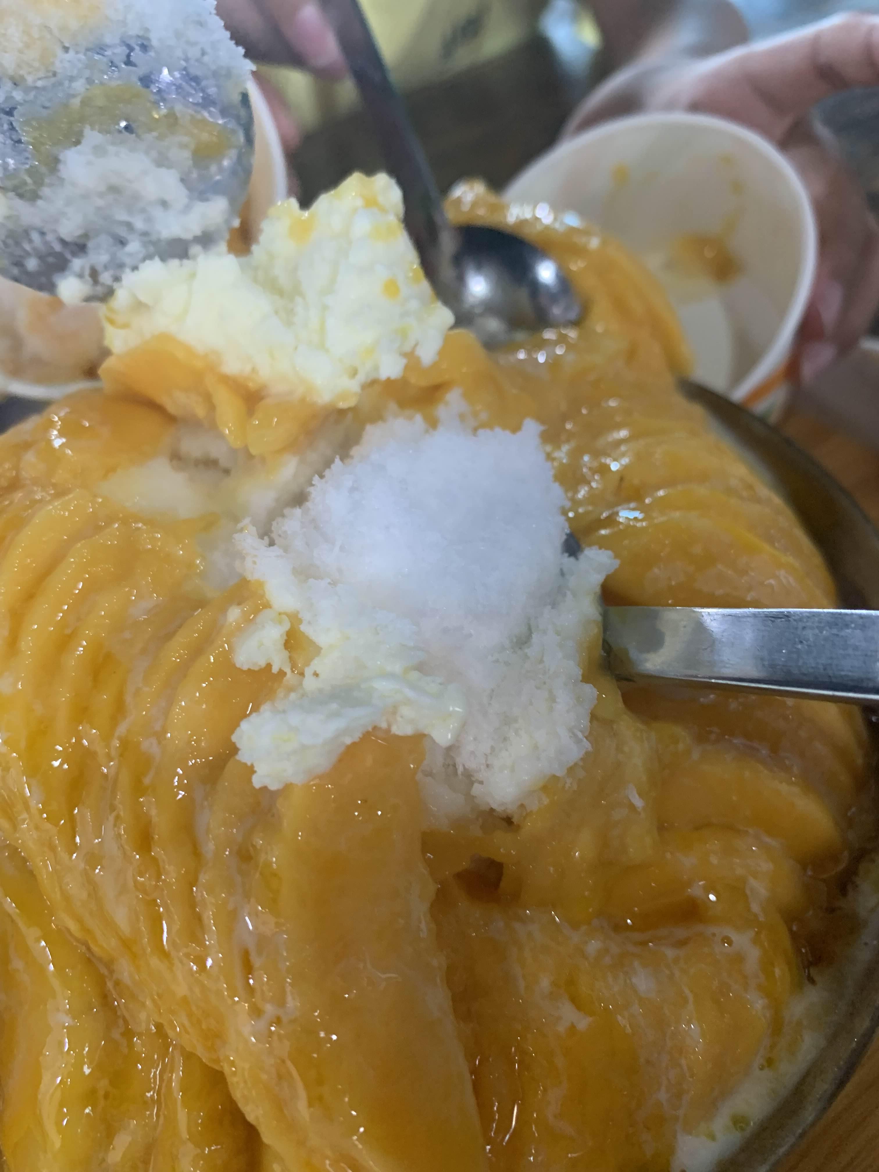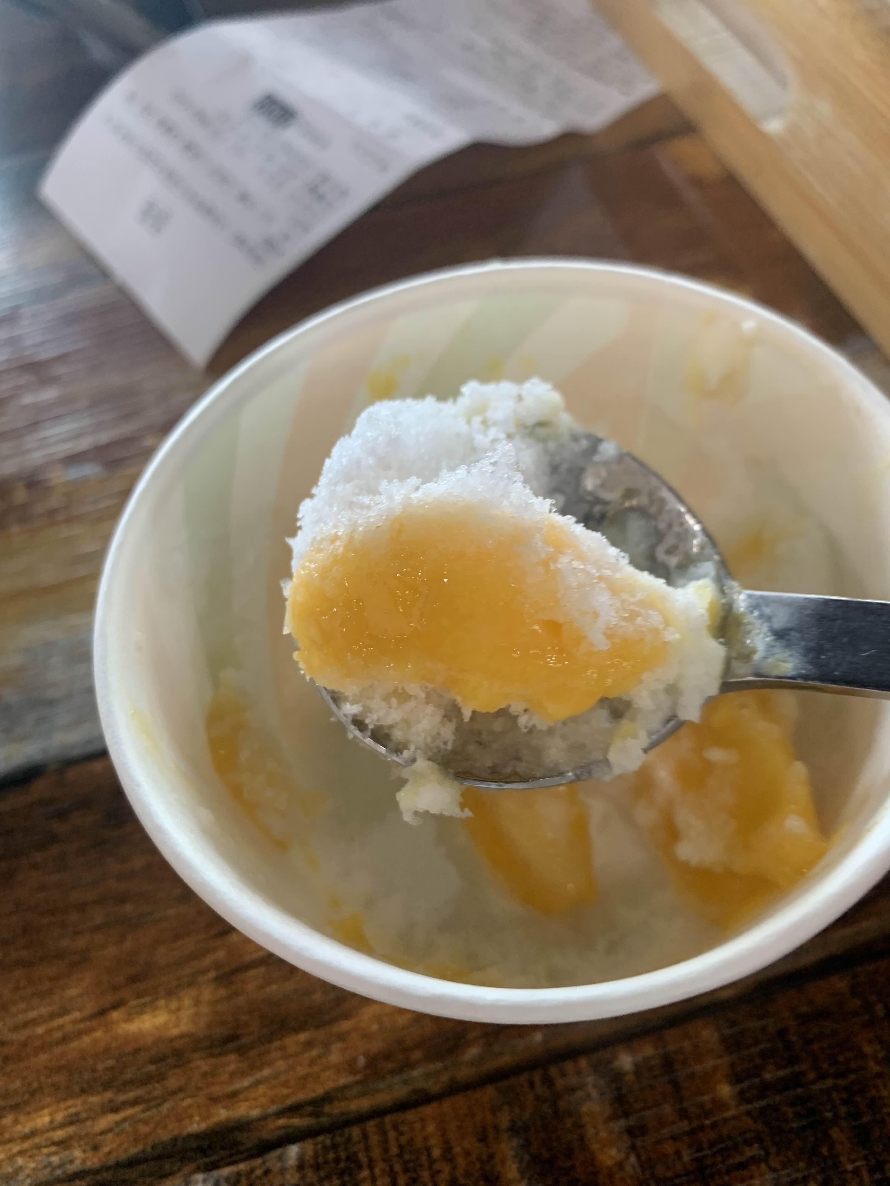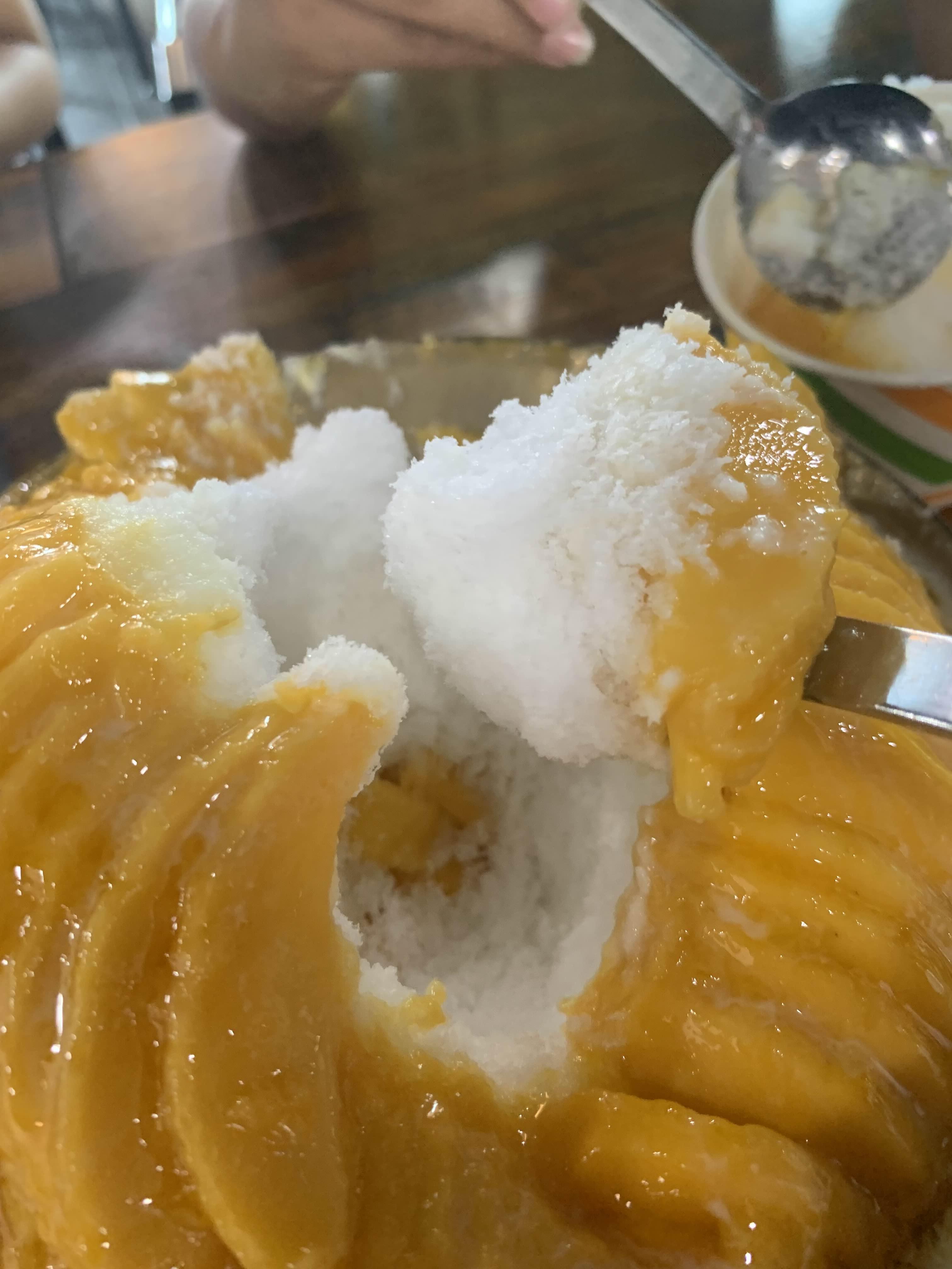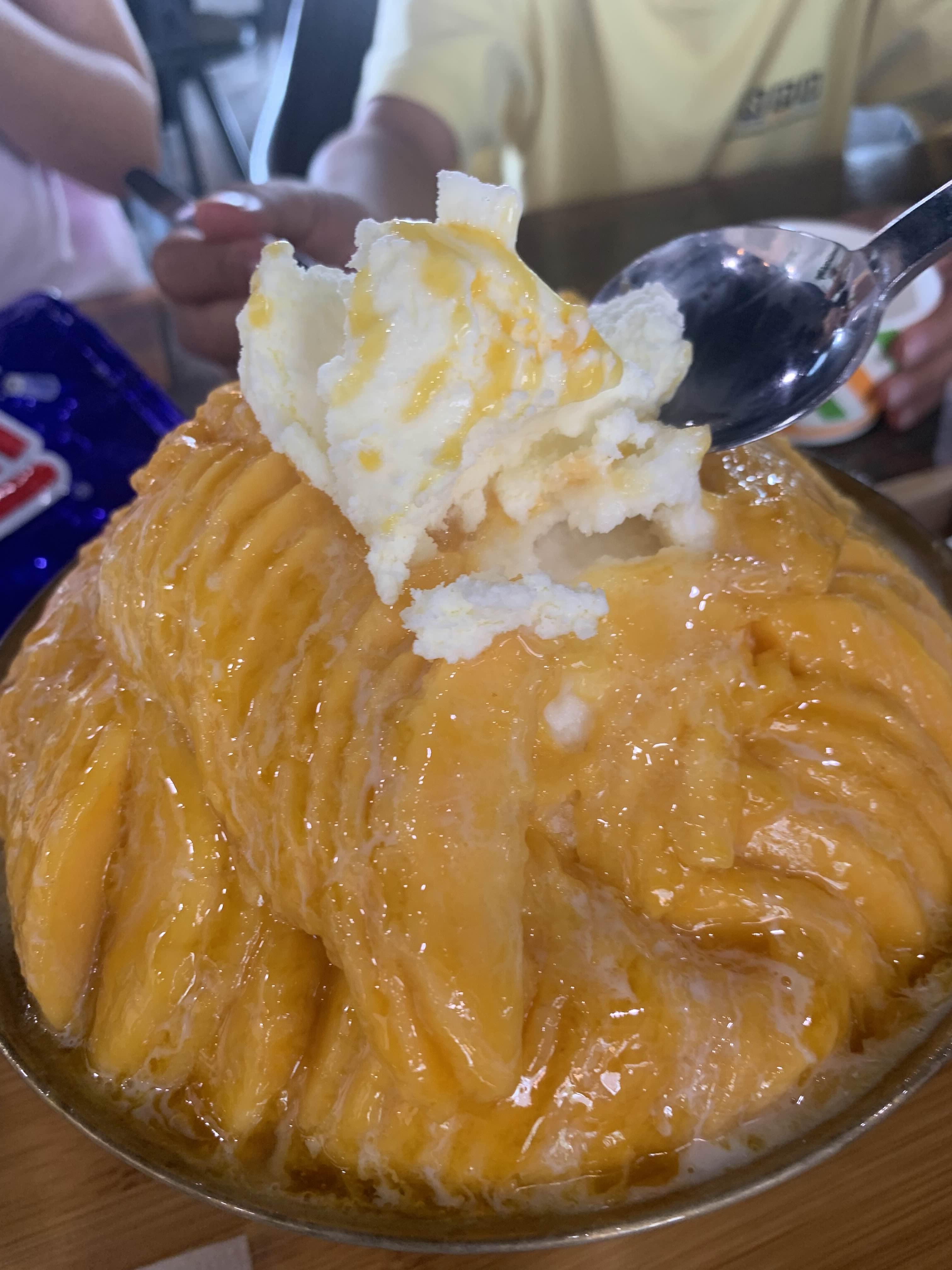 망고빙수 내부에 망고 시럽이 들어있어서... 망고의 진한맛이 느껴진다.
