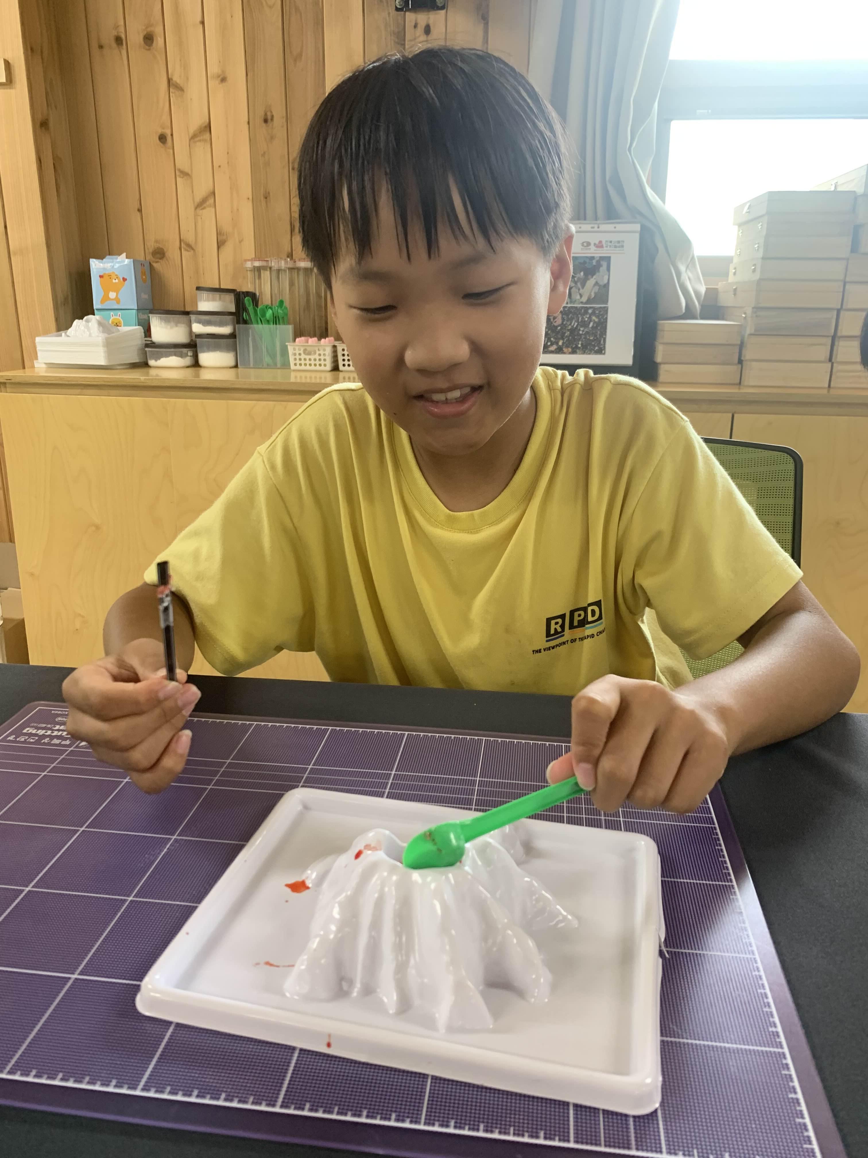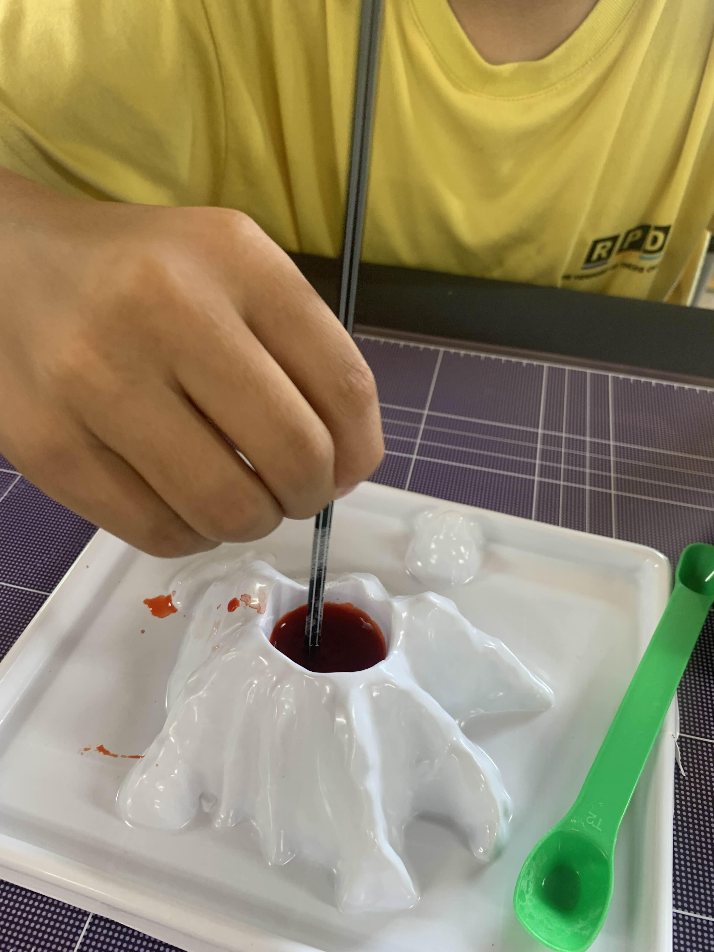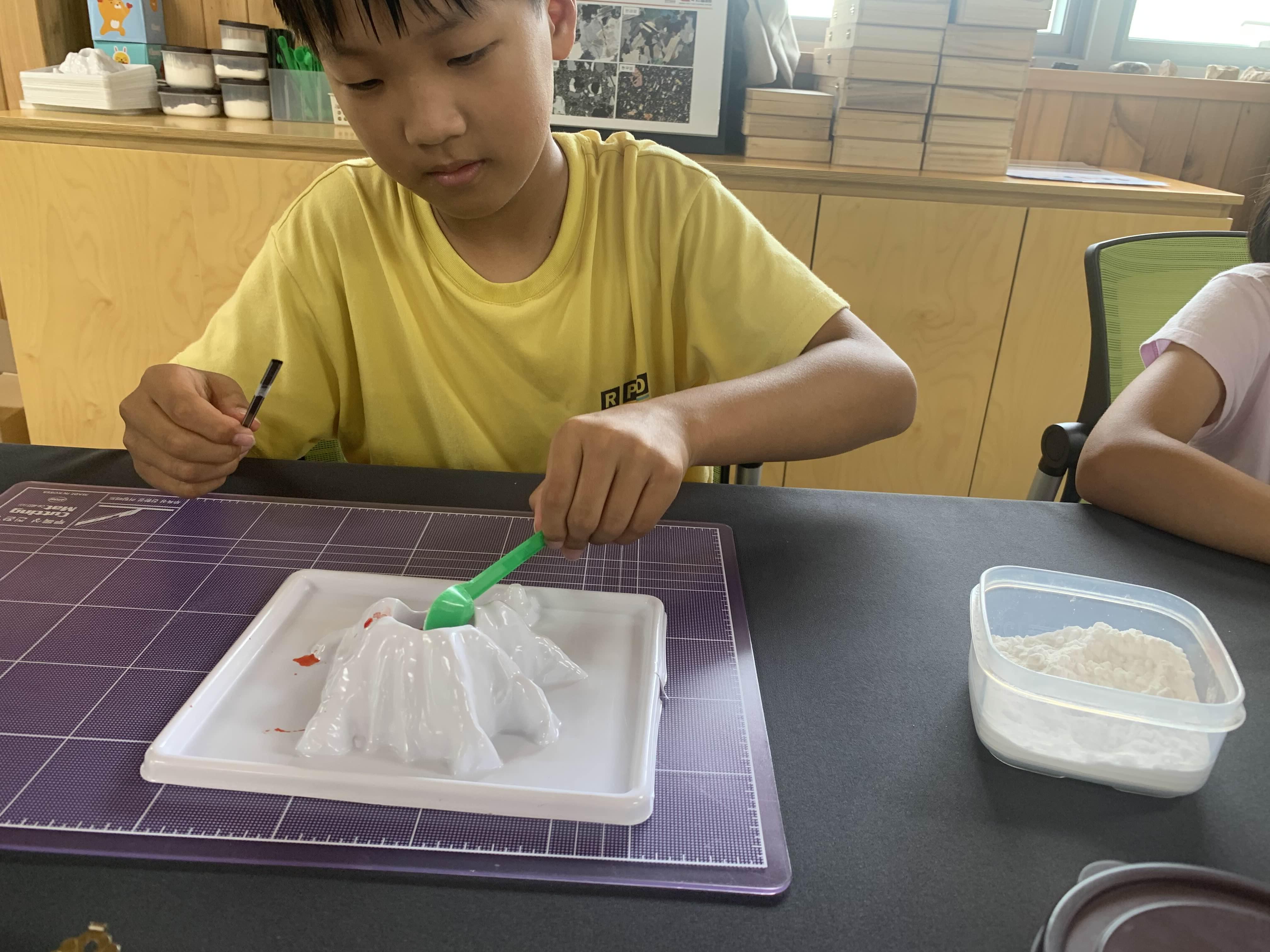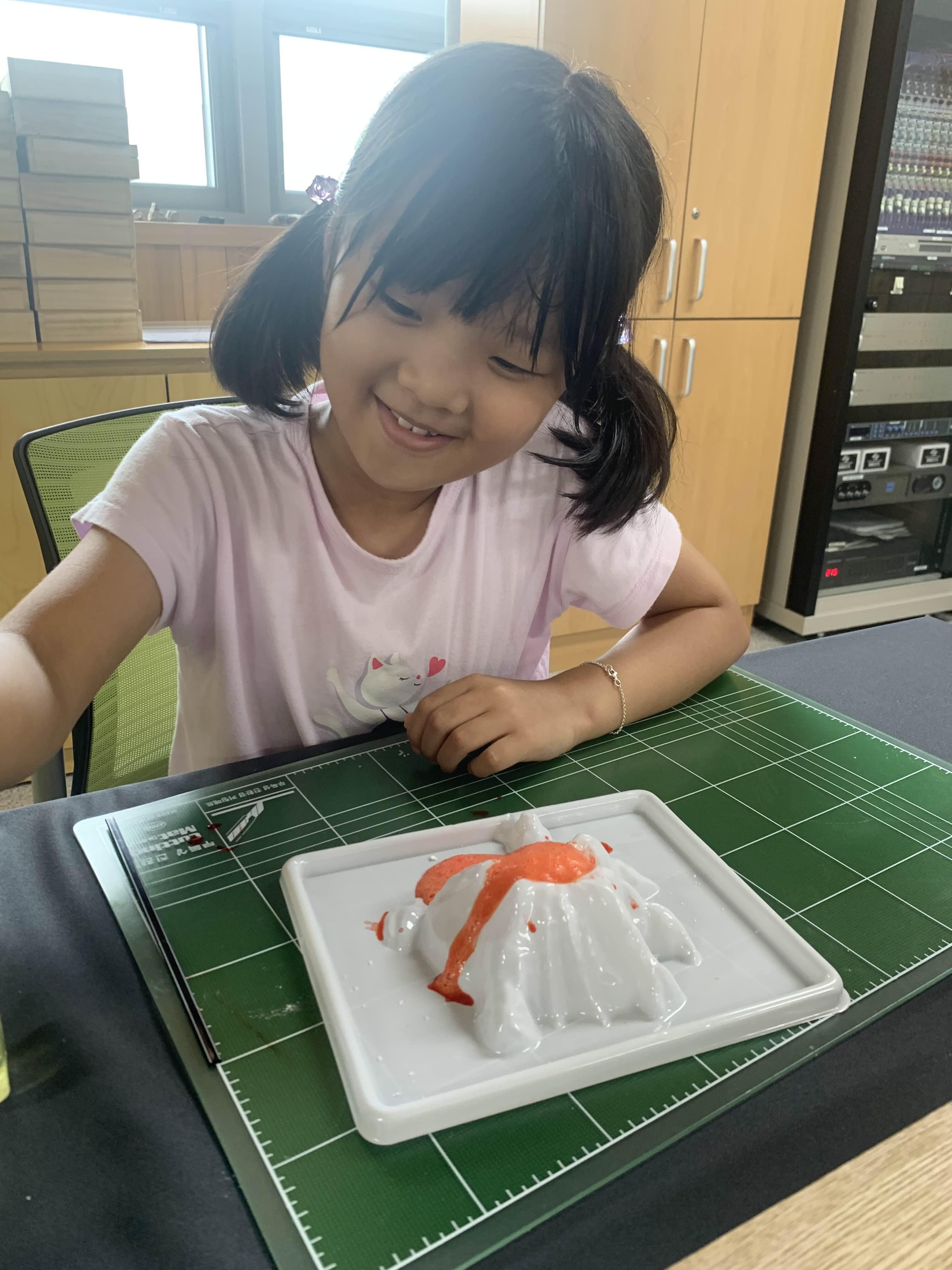 하나는 세제를 투입하여... 마그마의 흐름이 천천히 흐르고... 다른 하나는 빠르게 흐르는 차이를 관찰! 아이들이 상당히 좋아한다.