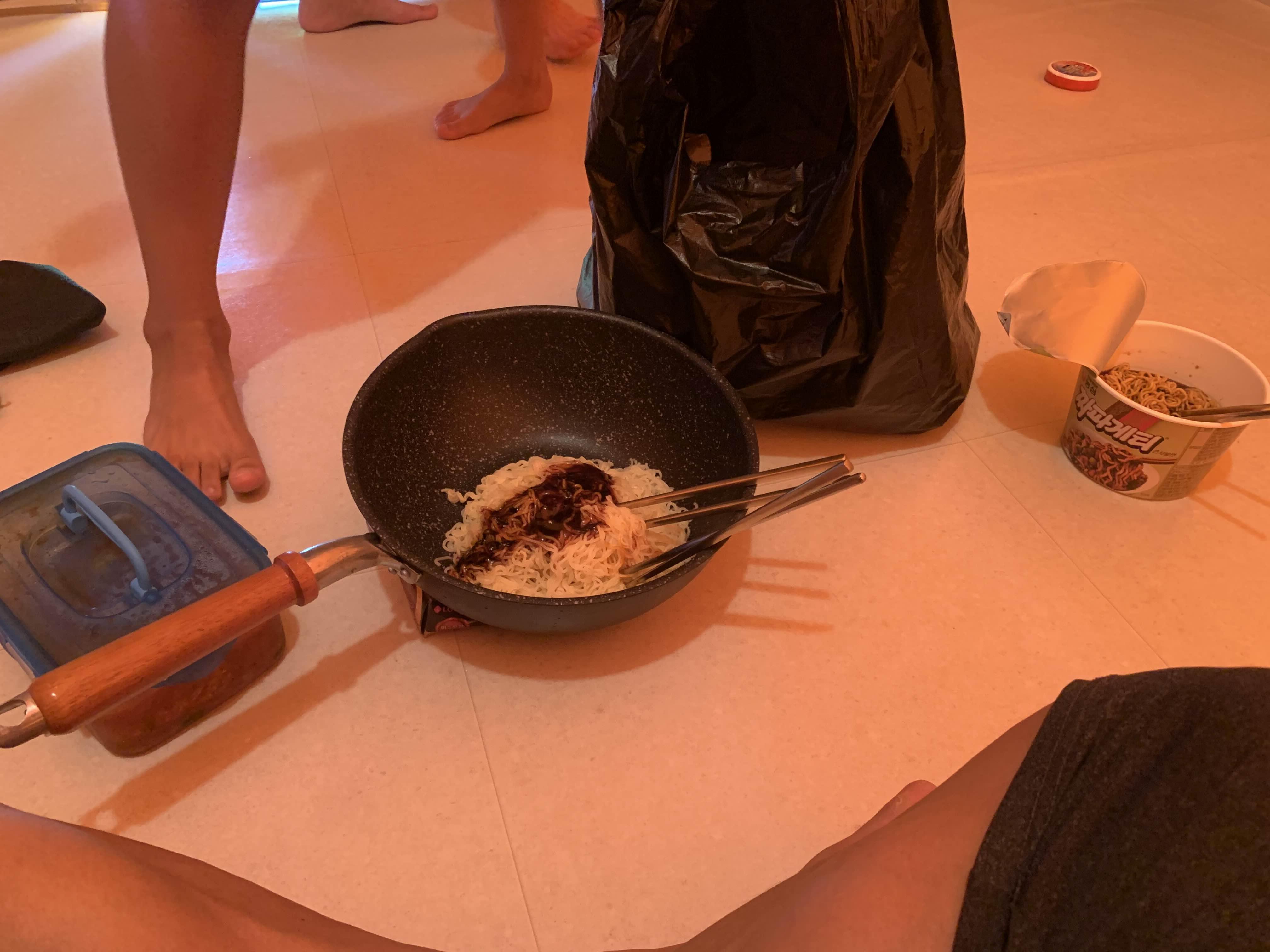 식기와 냄비... 버너와 인덕션... 그리고.... 간식으로 비빔면 하나 먹기로 했습니다.