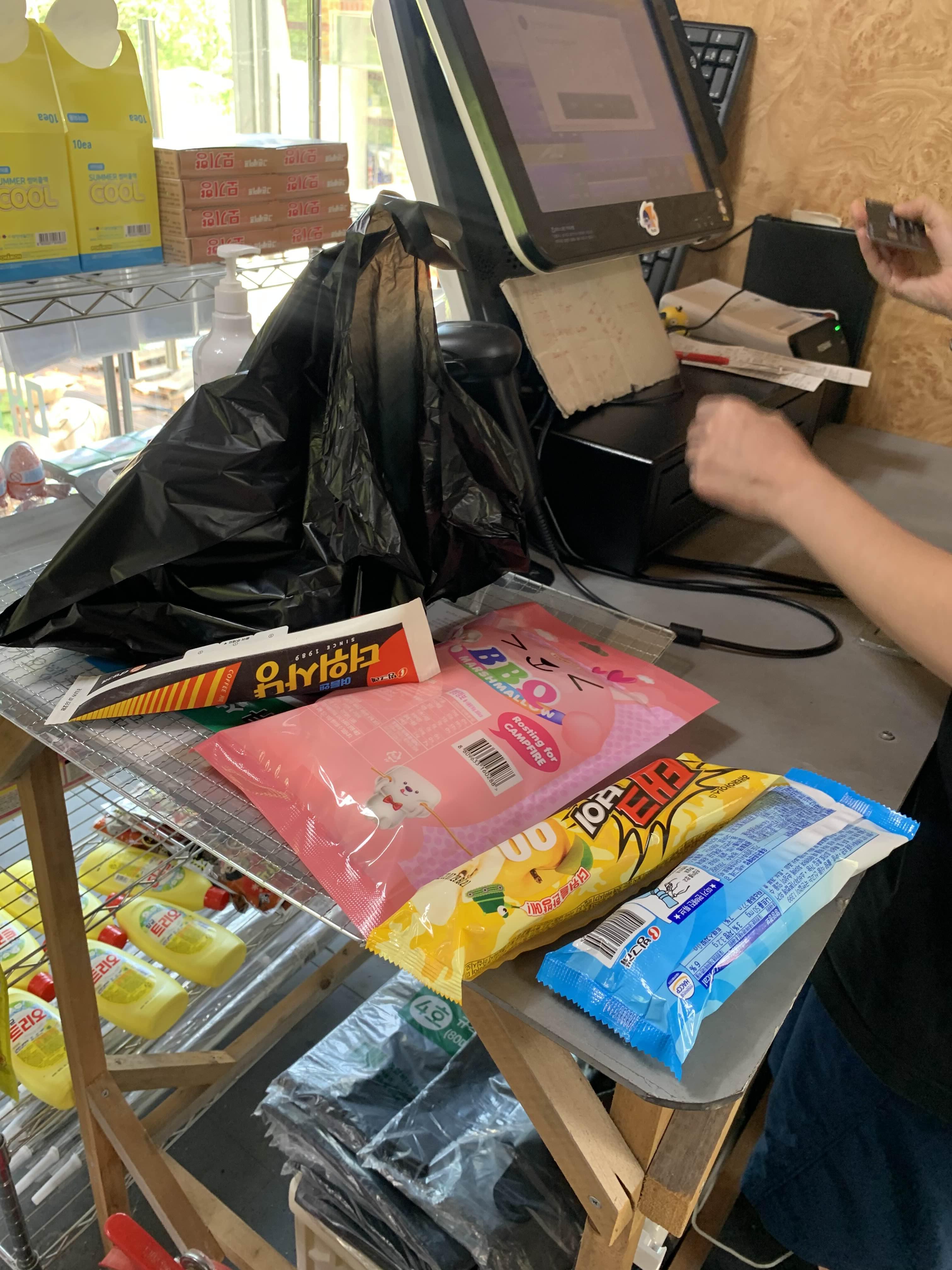 간단한 과자와 캠핑용품.... 그리고 아이스크림!
