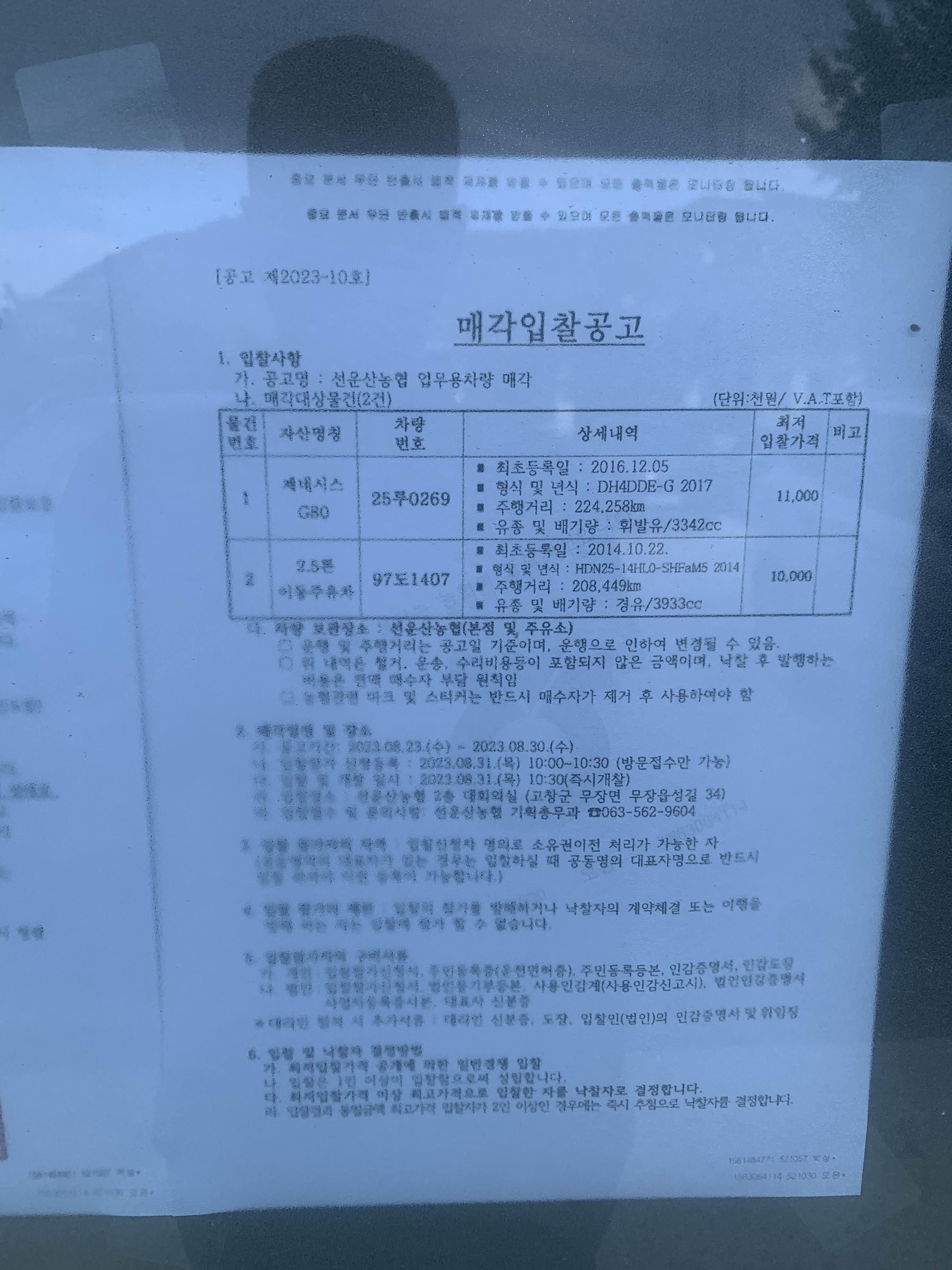 하나로마트 입구에는 차량매각 입찰공고문.ㅎㅎ