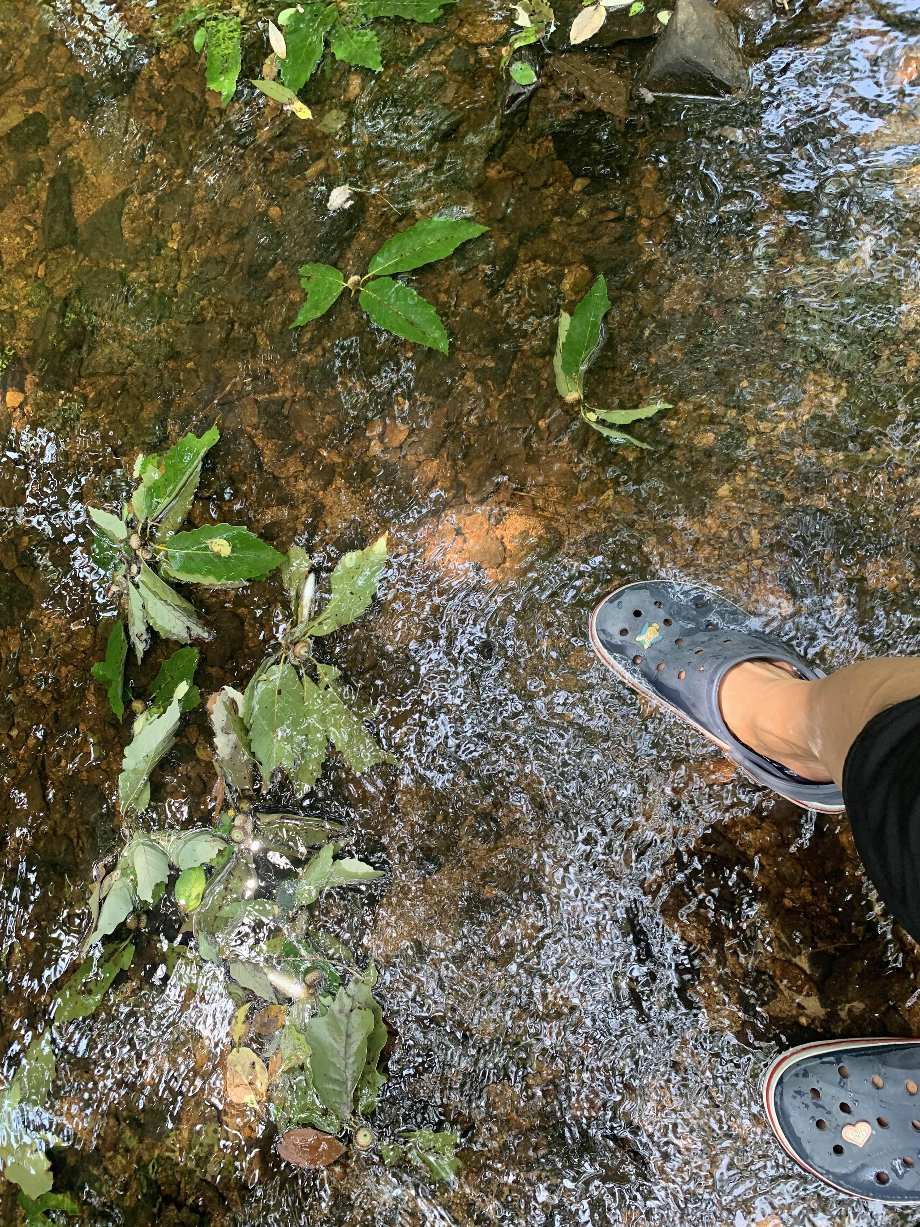 개울가에 발을 담가 보는데.... 상당히 시원하다.