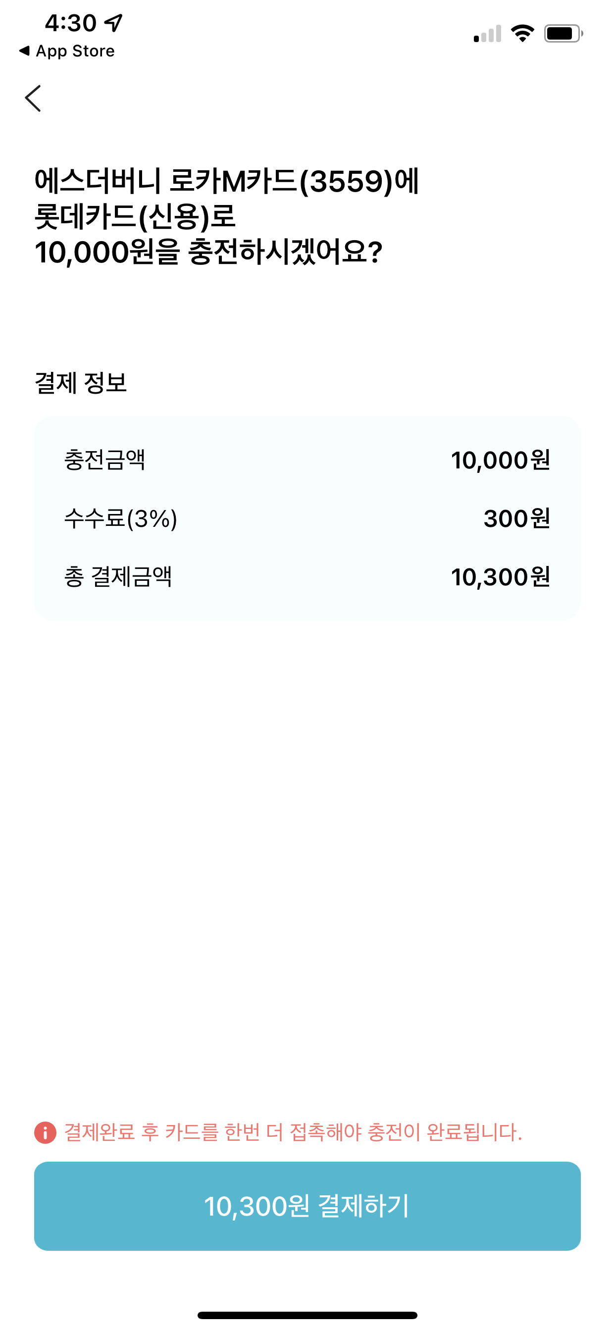 충전은.... 대략 3%의 수수료가 들어간다. 신용카드 그리고 현금이 동일하게 3% 수수료가 들어가... 신용카드로 등록했다.