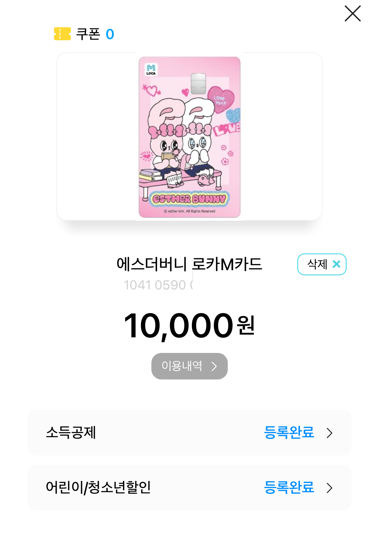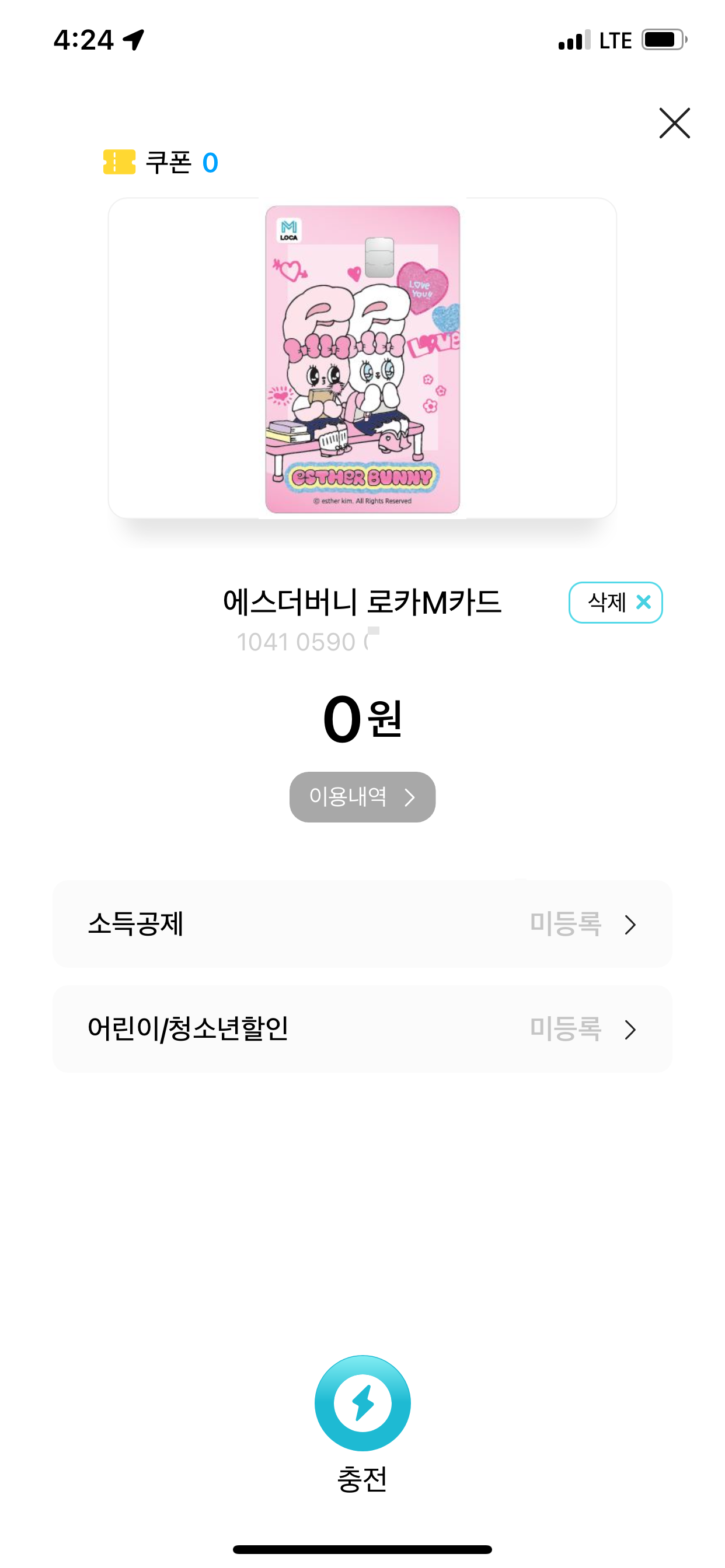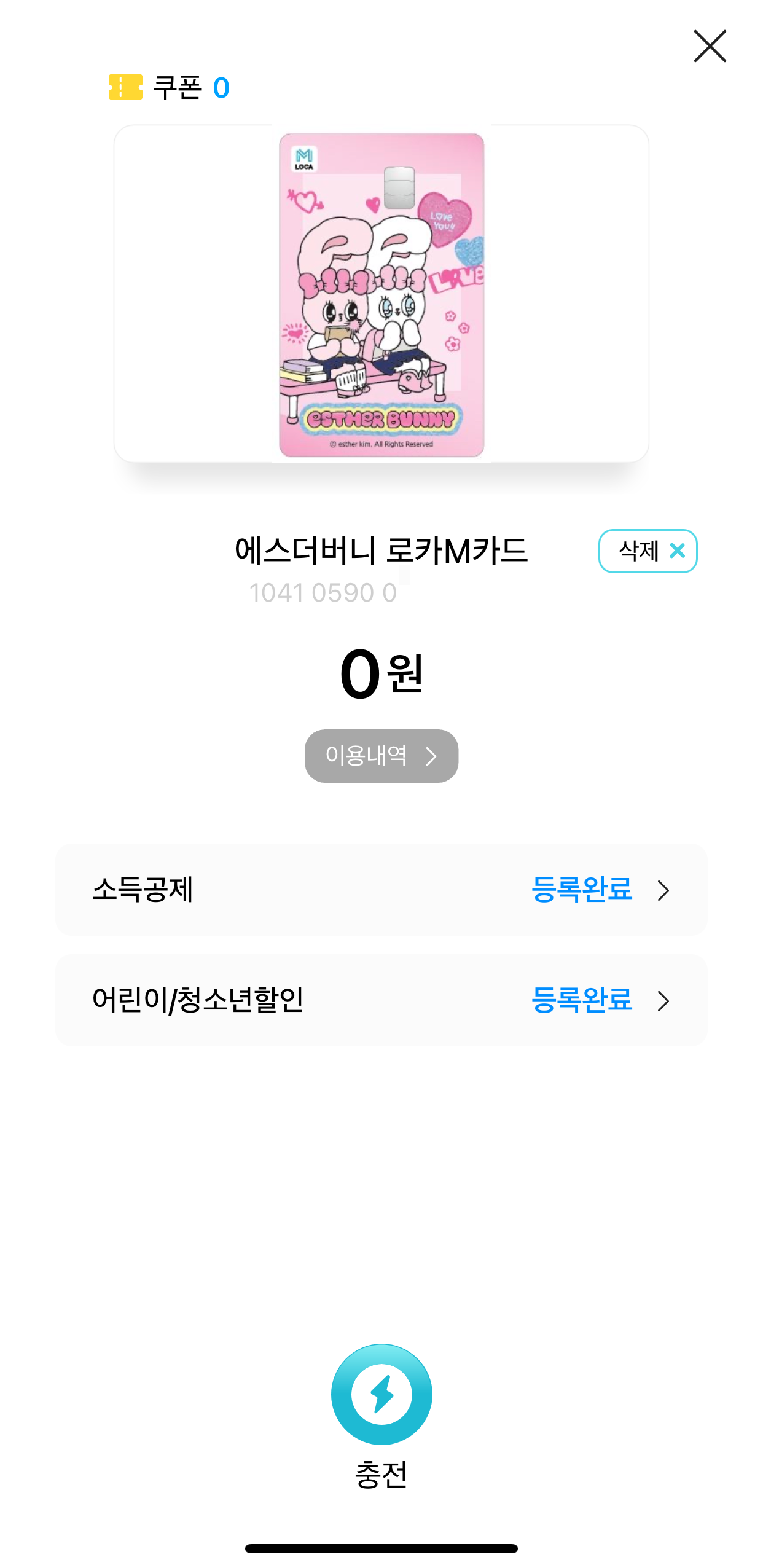 소득공제와.... 어린이/청소년할인을 등록하였다면... 충전이 필요하다.ㅎㅎ