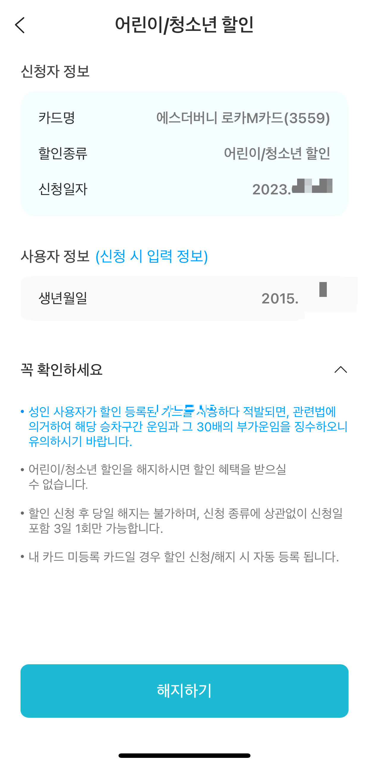 편의점에서 판매하는 교통카드는 아이들용이 아닌, 일반(성인)용 교통충전카드로.... 별도의 아이이 생년월일을 등록해야 한다.