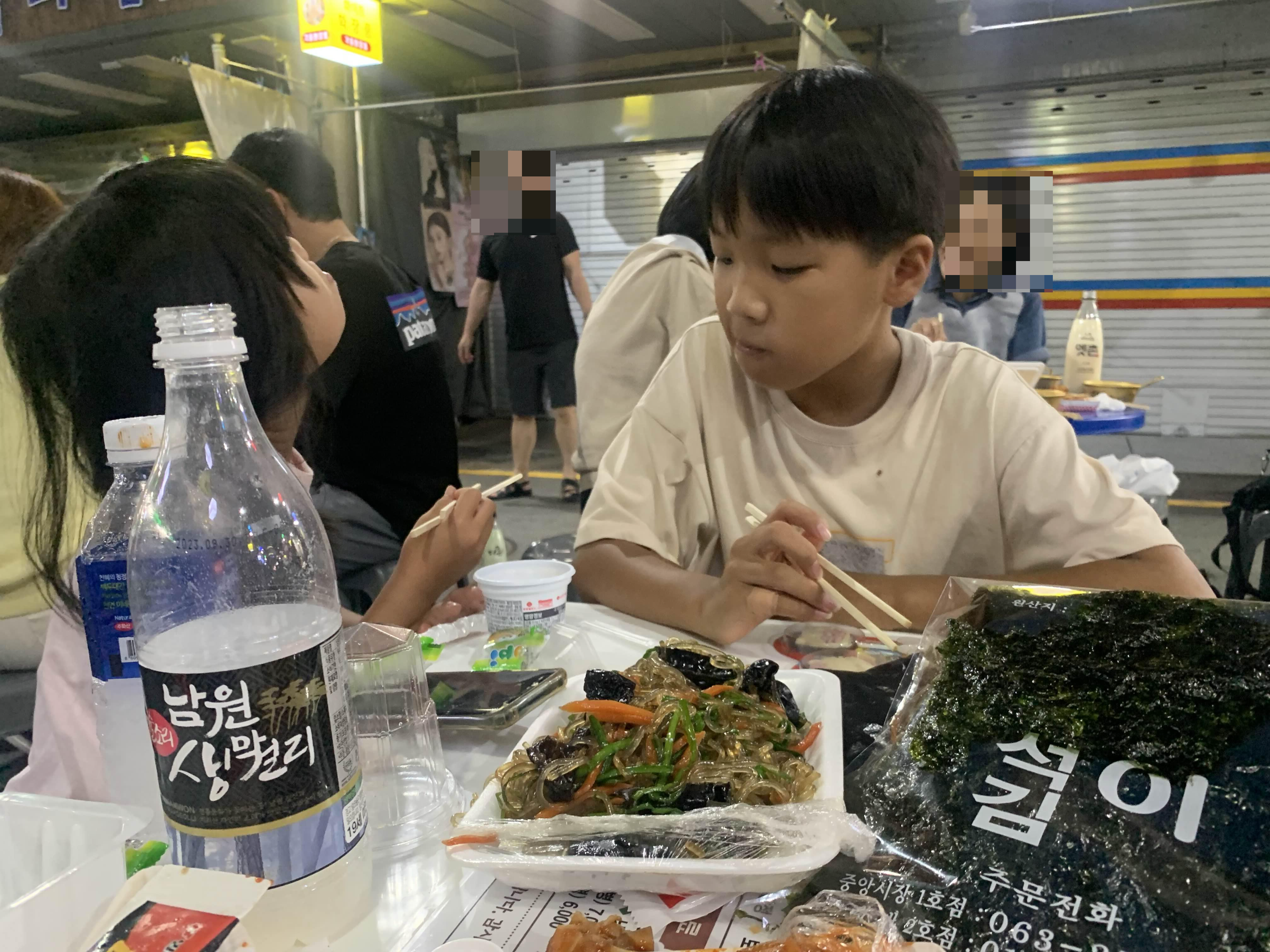 아이들 먹거리가 없어서... 시장에서 판매하는 잡채 5,000원 그리고 즉석김 2,000원 하나씩 구매해 주었다.ㅎㅎ