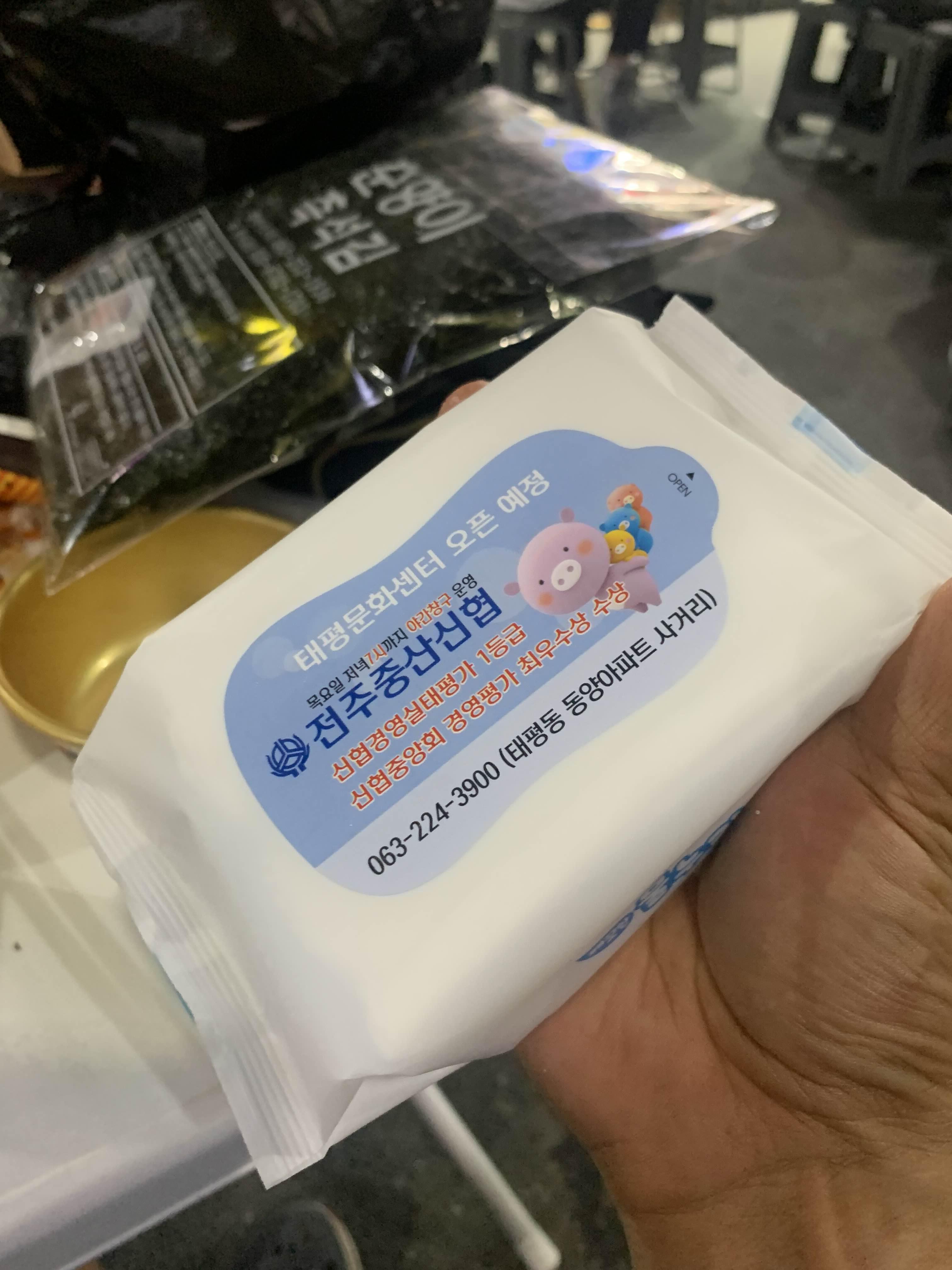 기다리니... 신협에서 물티슈 하나 지급!! 감사합니다. ㅎㅎ