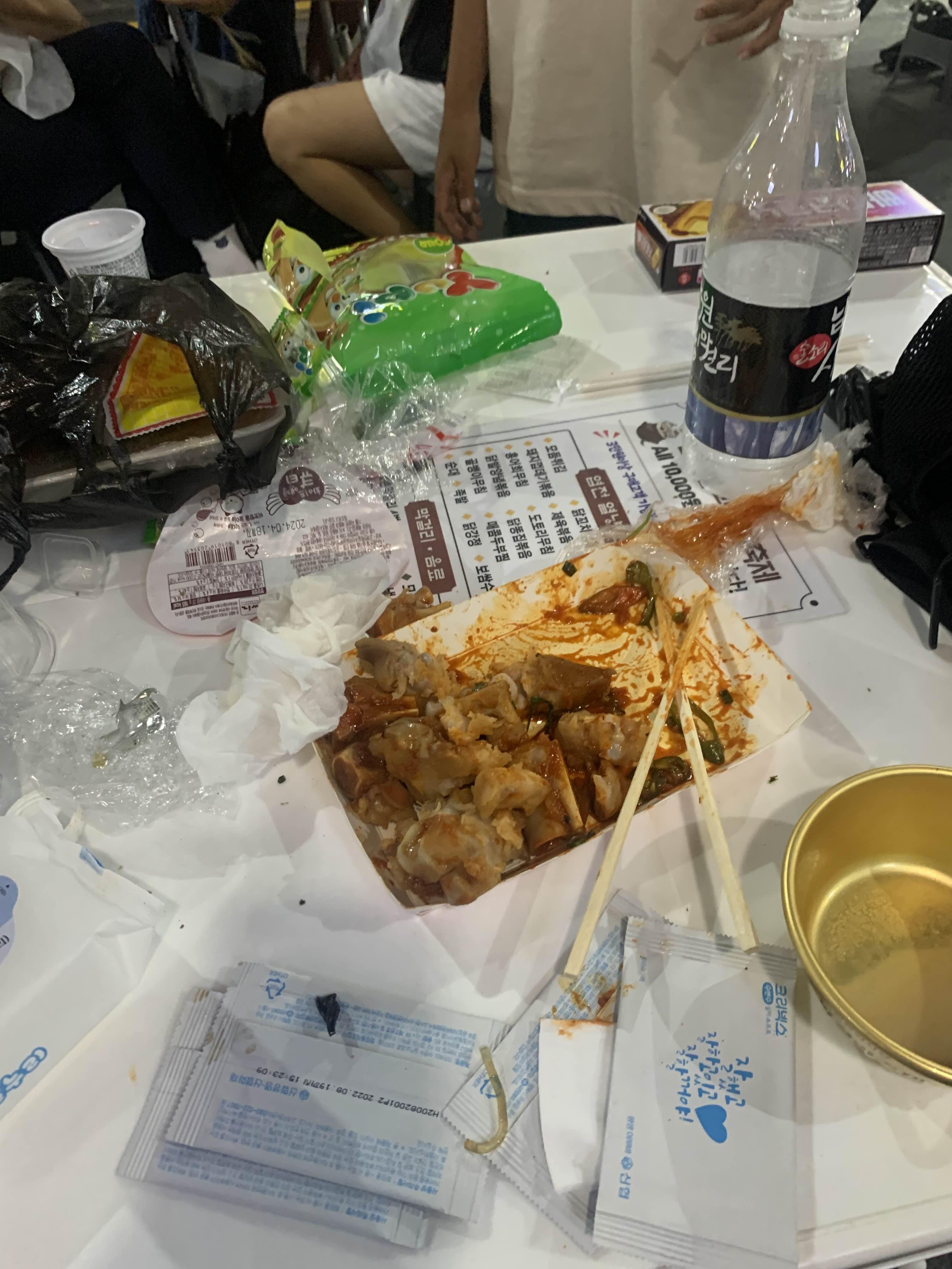 그리고 테이블을 정리해야 하는데... 주변에 쓰레기통이 없어.... 정리하기가 쉽지 않다.