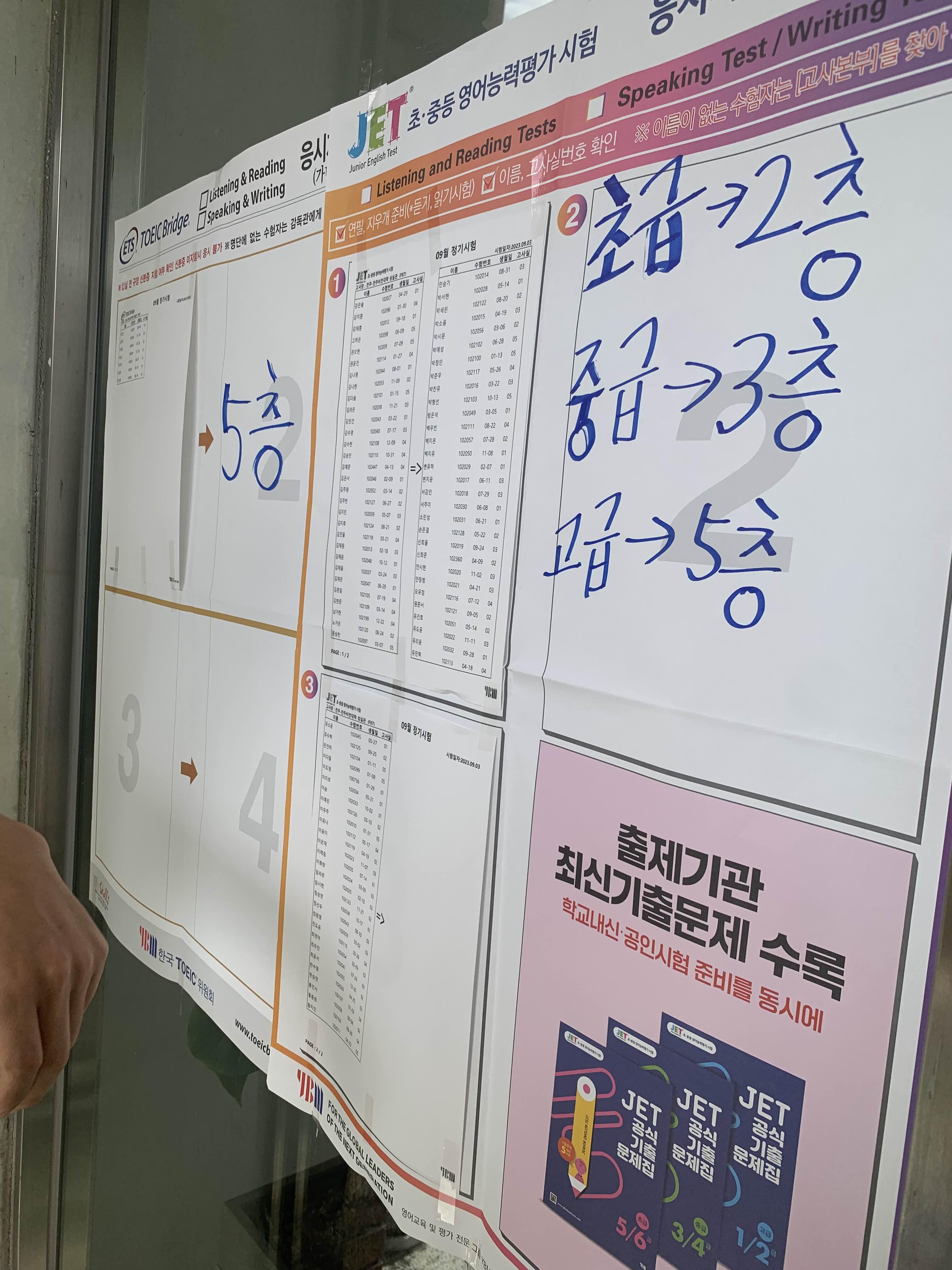 응시료를 그 정도 받았으면... 부모들 대기장소는 만들어 주어야 하지 않나? YBM!