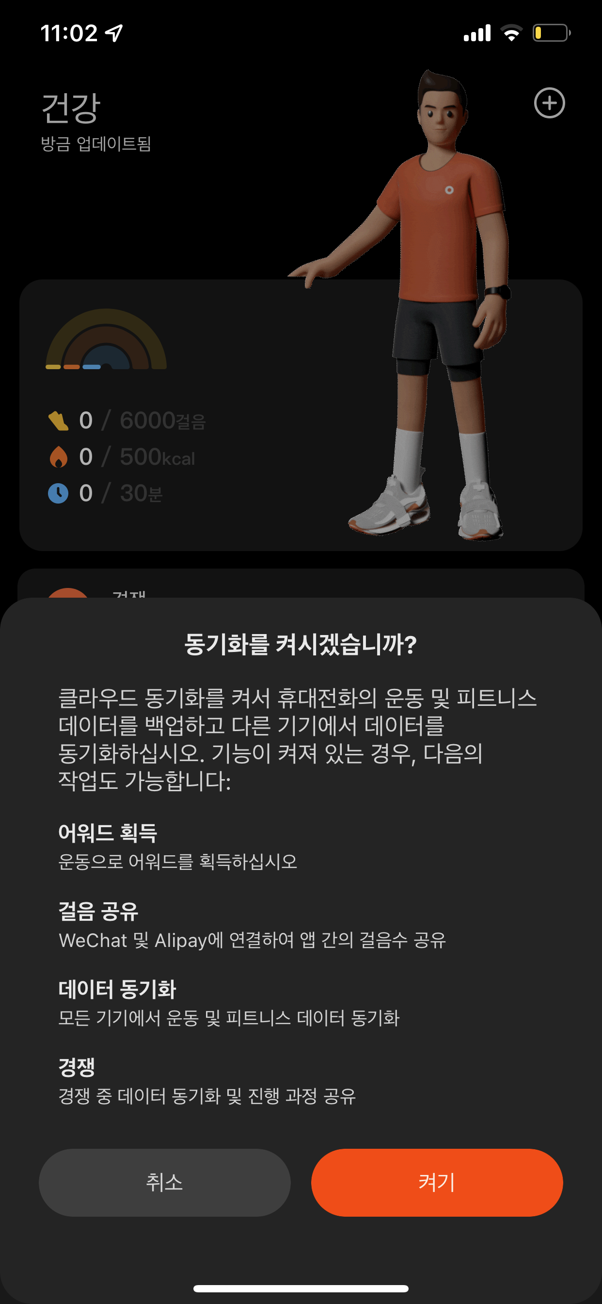 미밴드 피트니스 어플을 이용하여... 동기화 준비 중!