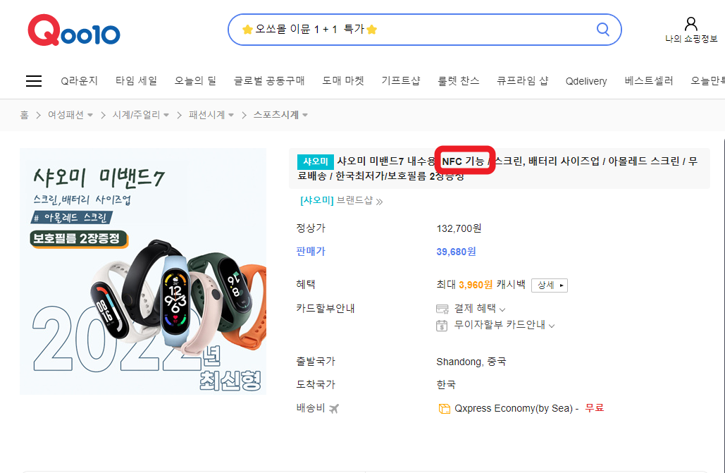 Q텐으로 샤오미 미밴드 7을 주문하고 대략 10일 정도 소요되어 도착하였습니다. NFC 기능이 있는 제품으로 알았는데.... NFC 기능이 없는, 기본 제품이 도착했습니다. 으악!! NFC 기능을 사용하려고, 중국 내수용으로 주문했는데....