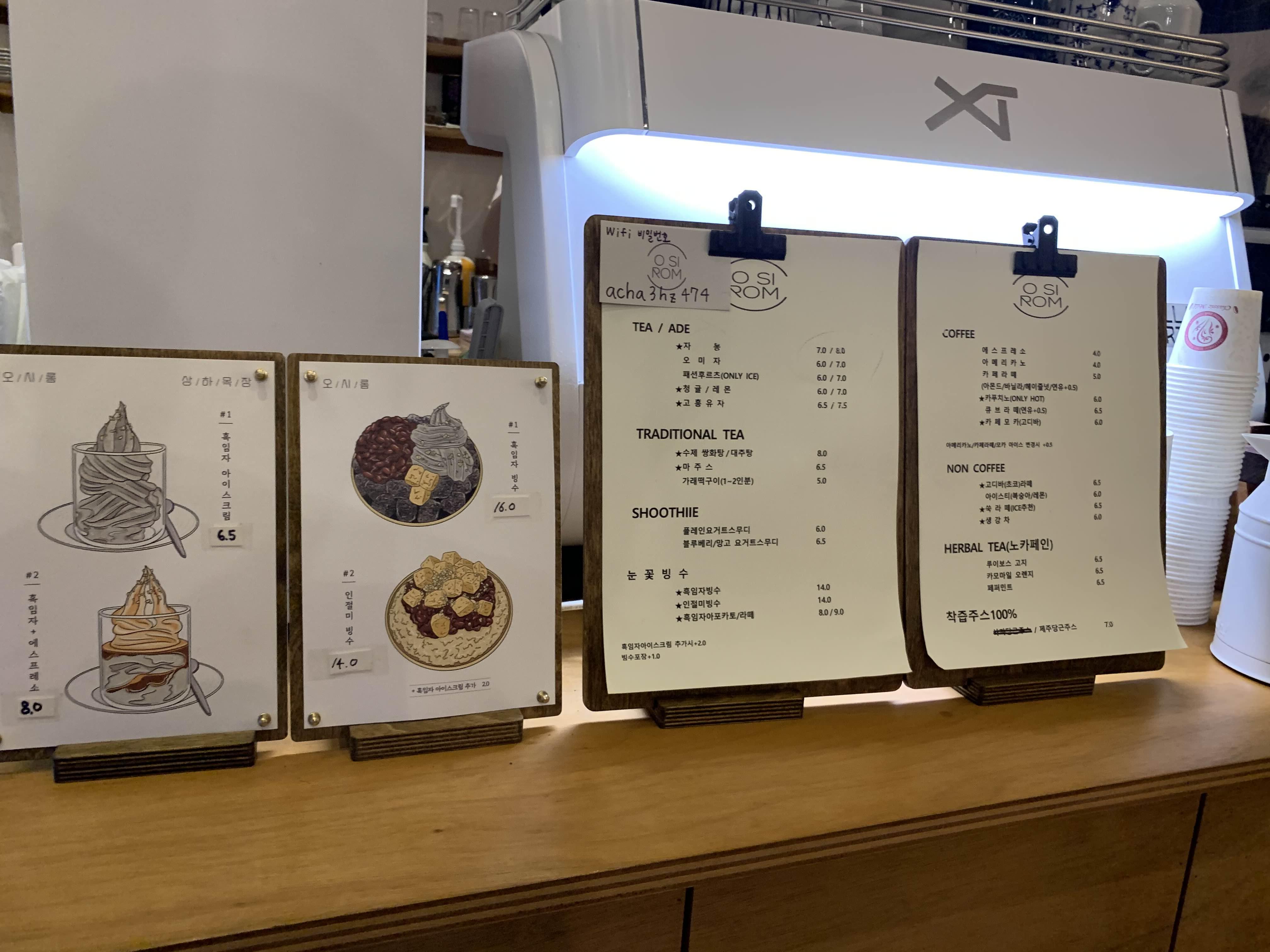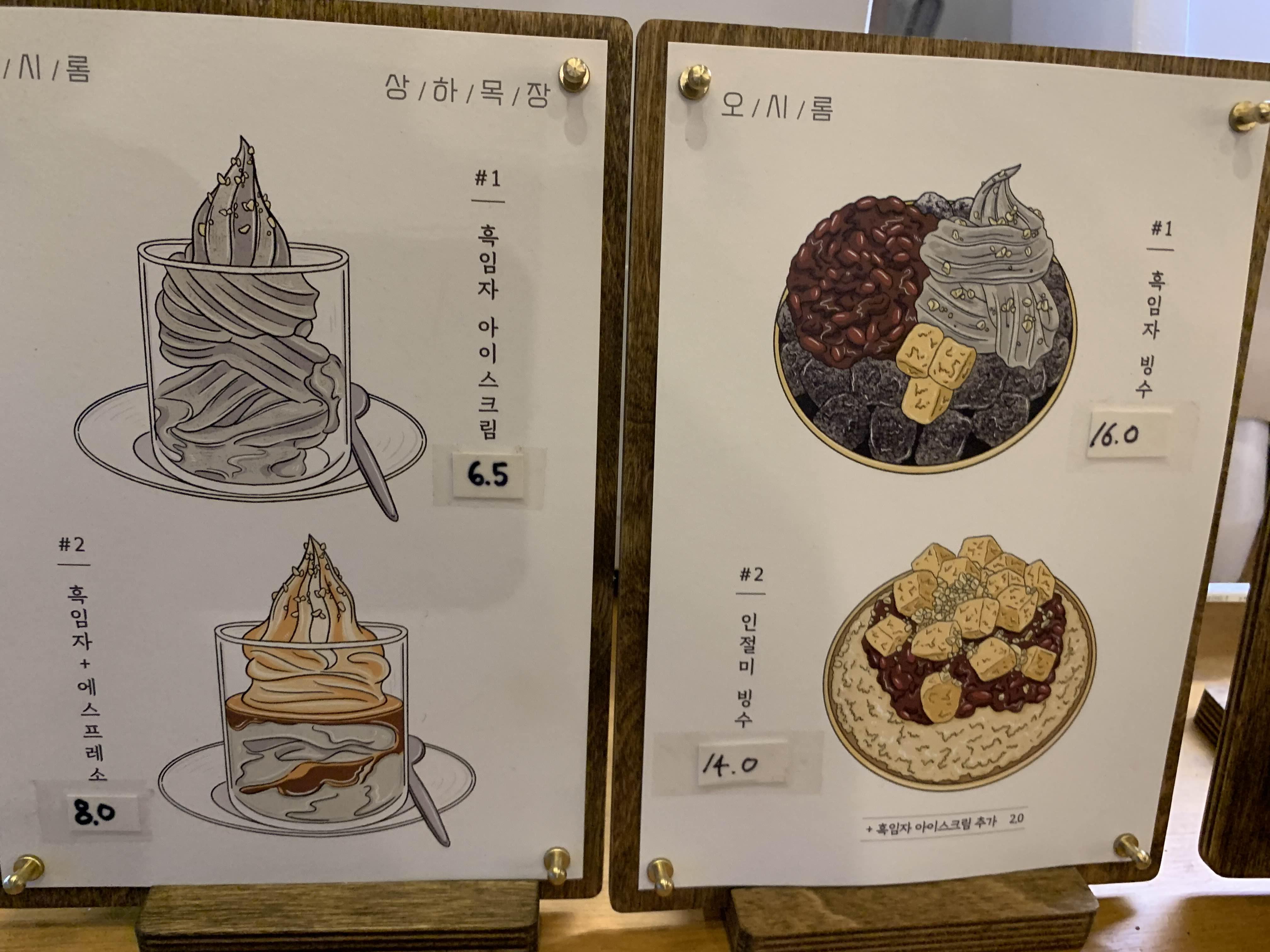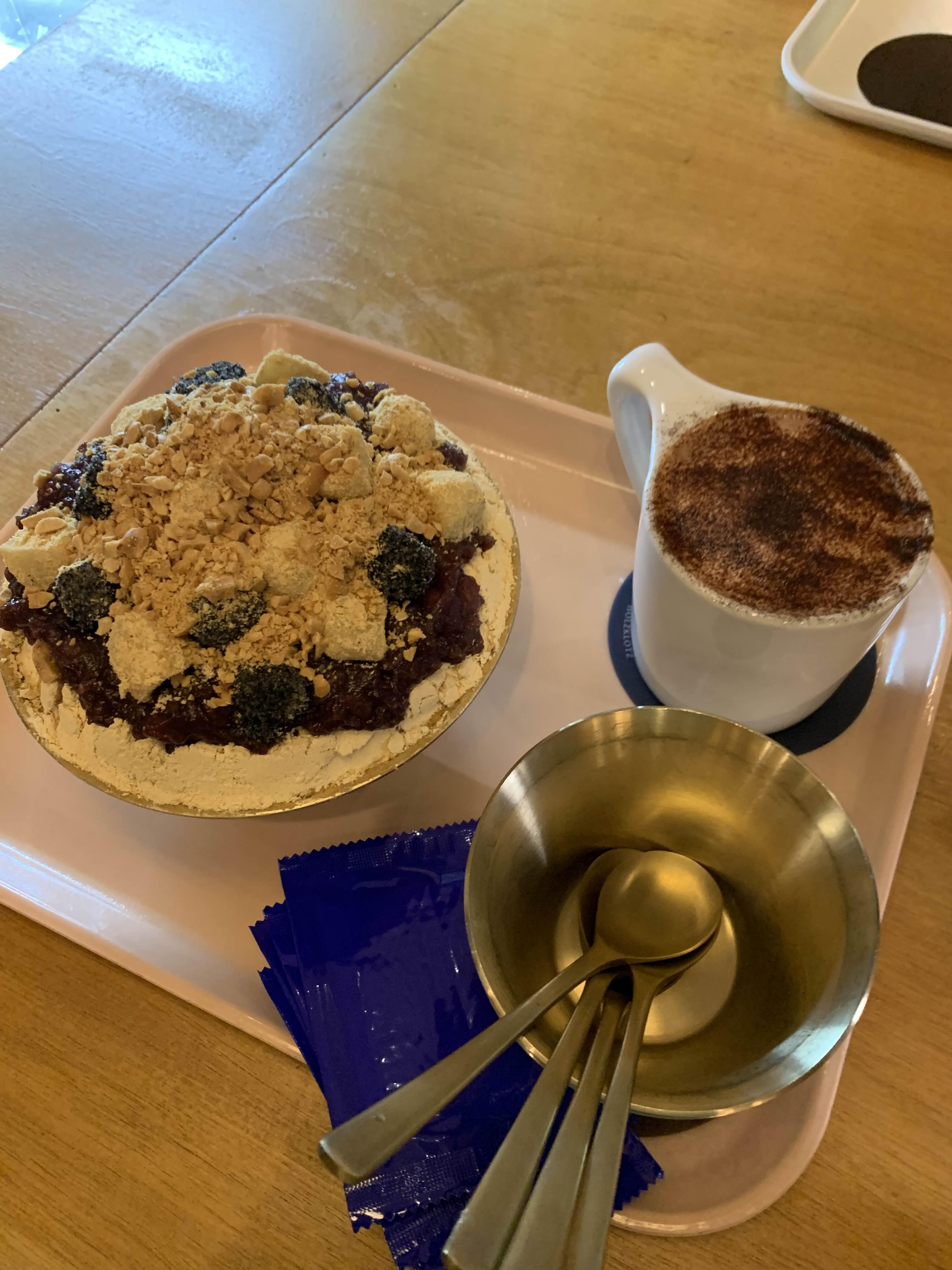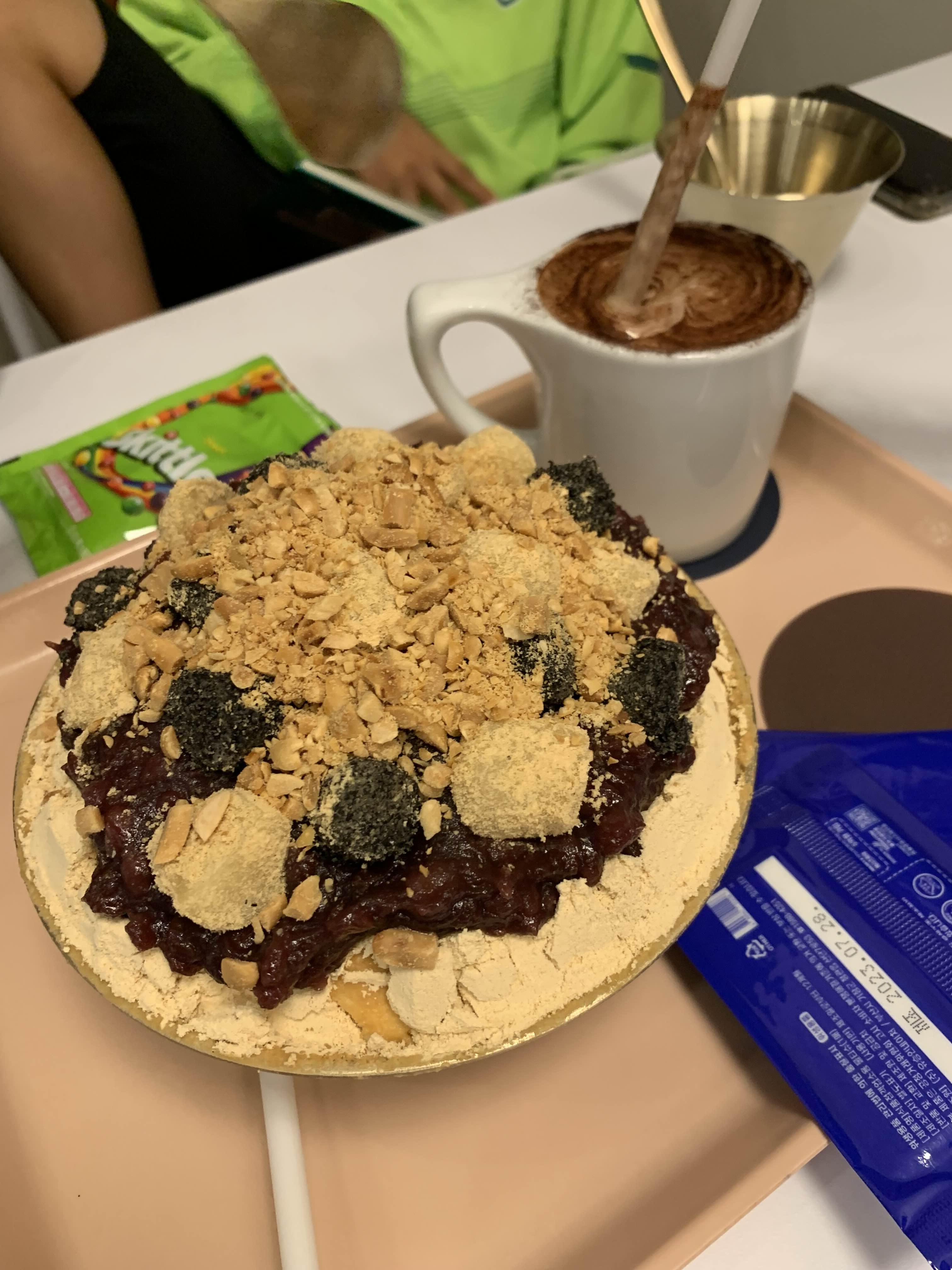 인절미 팥빙수.... 그리고 아이들이 따뜻한 음료가 먹고 싶다 해서 초코라테 하나 주문해 보았다.
