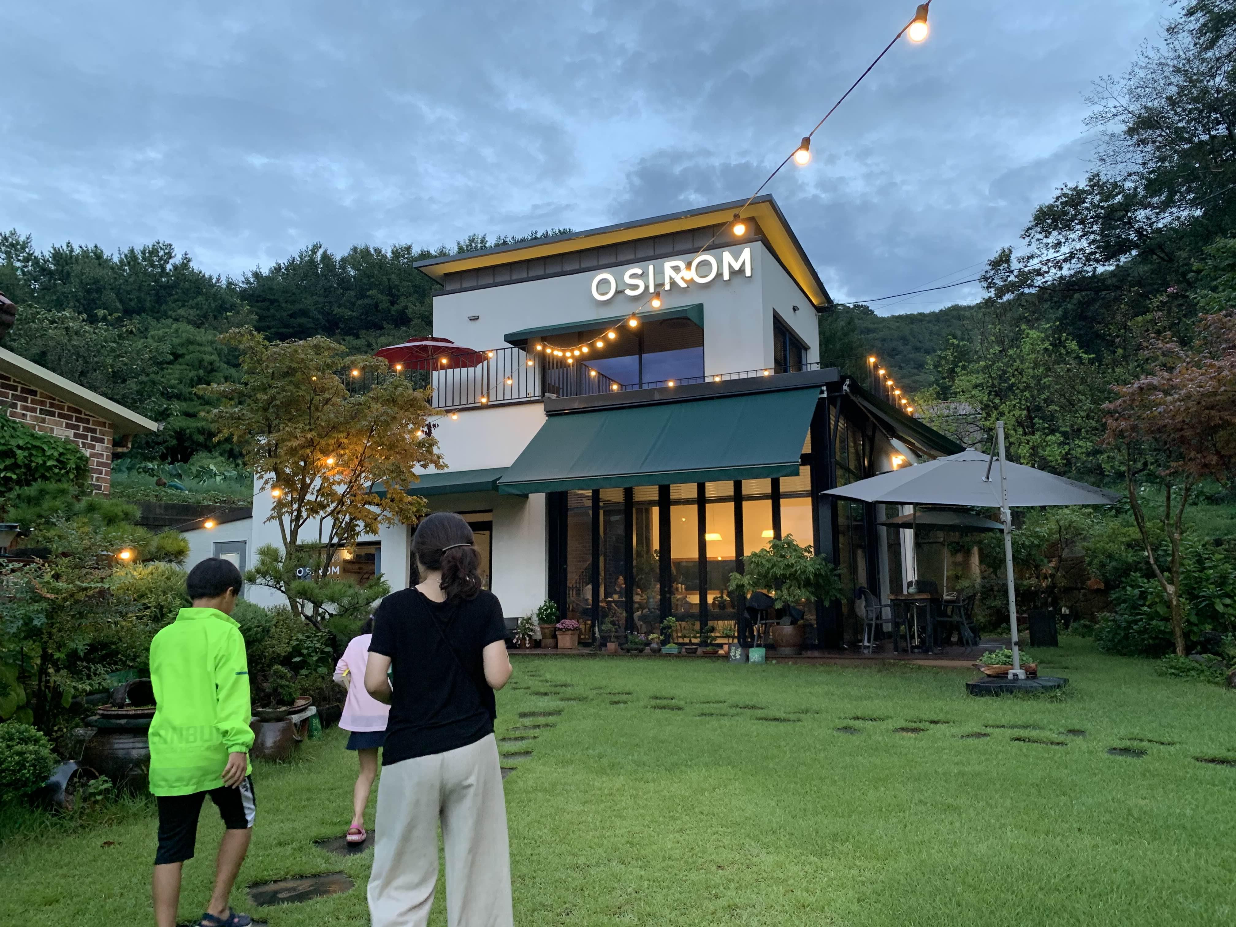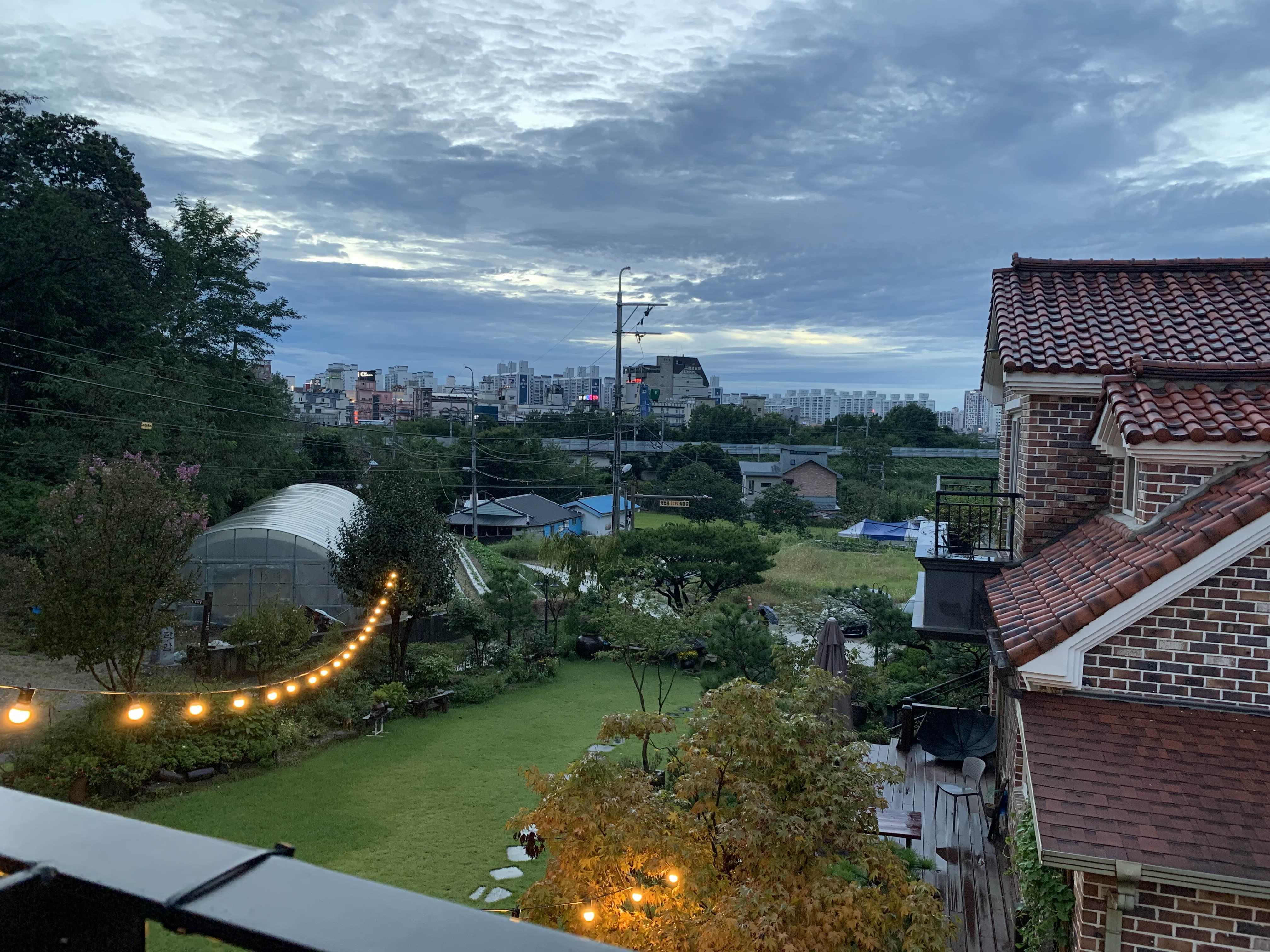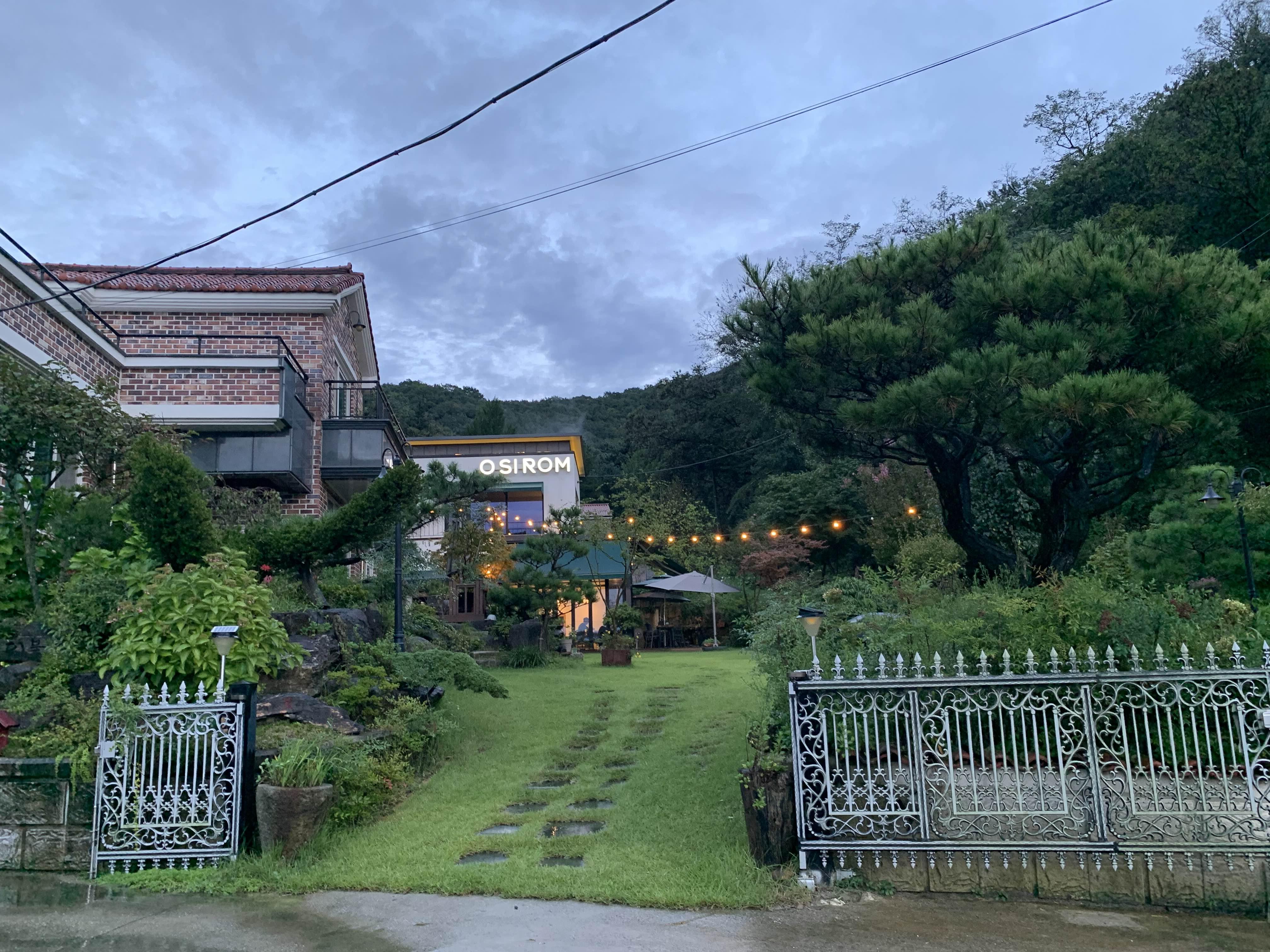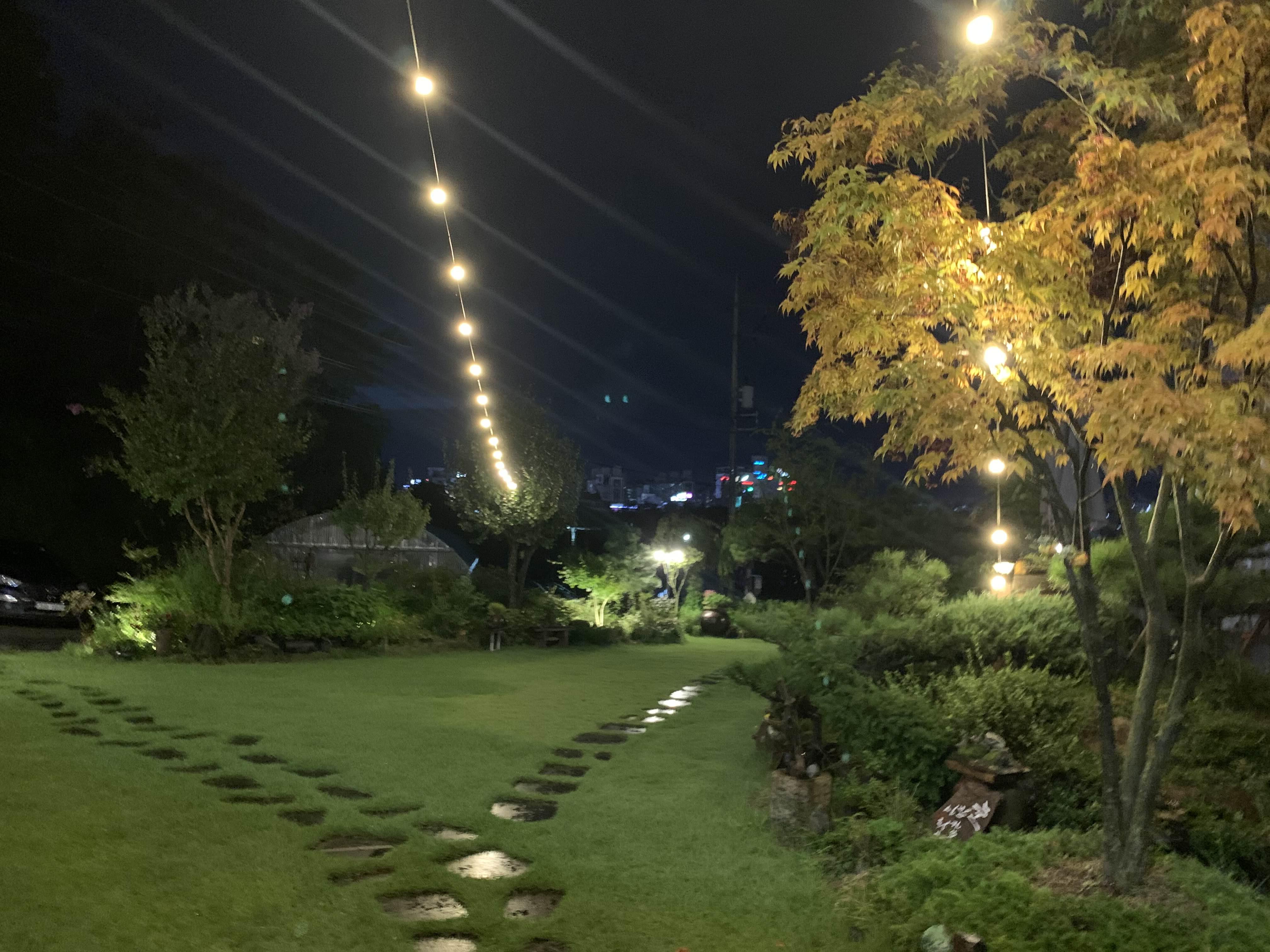 카페 마당에 장식된 백열등은..... 이 음침한 분위기를 밝게 바꾸어 주었다.