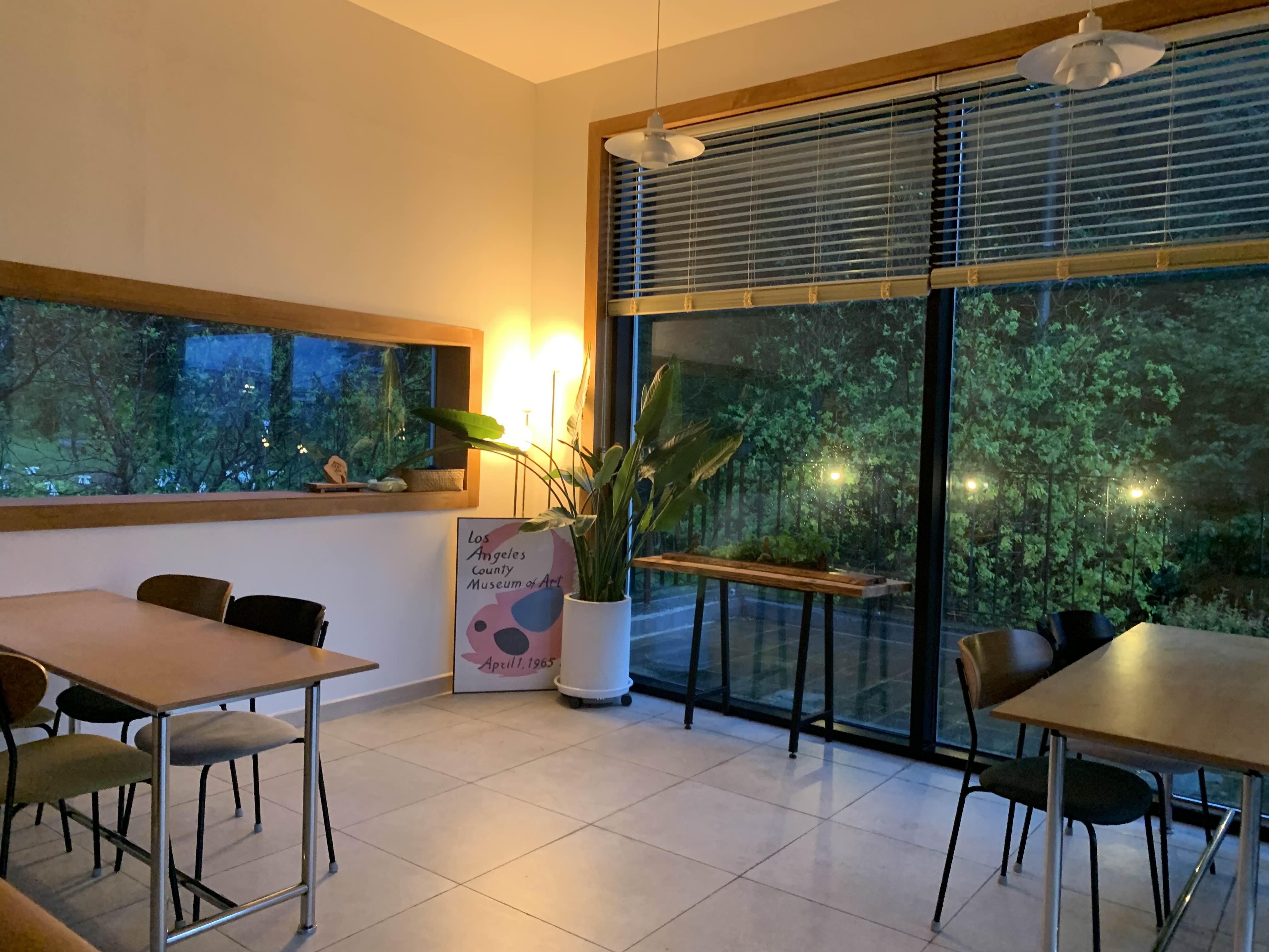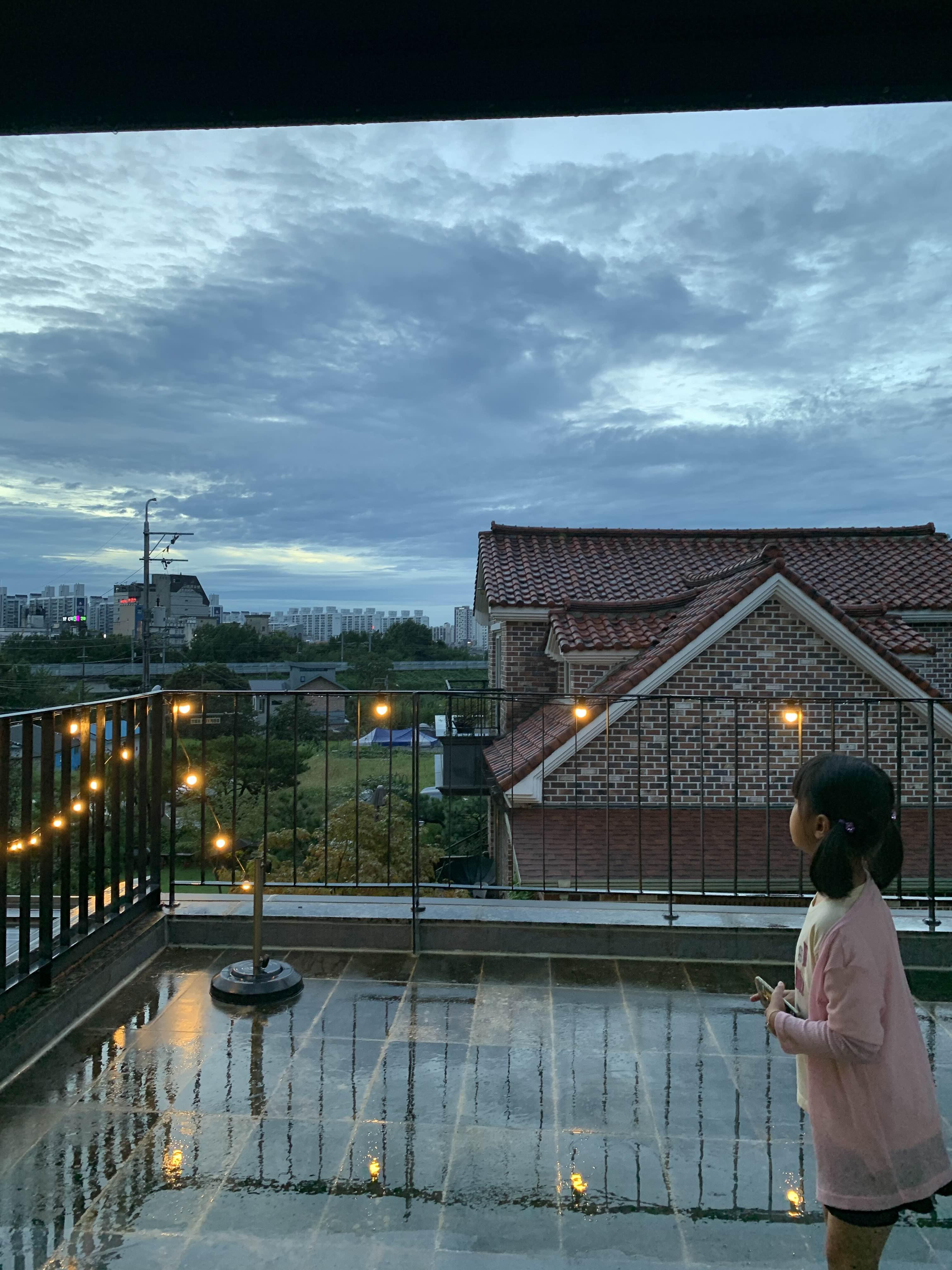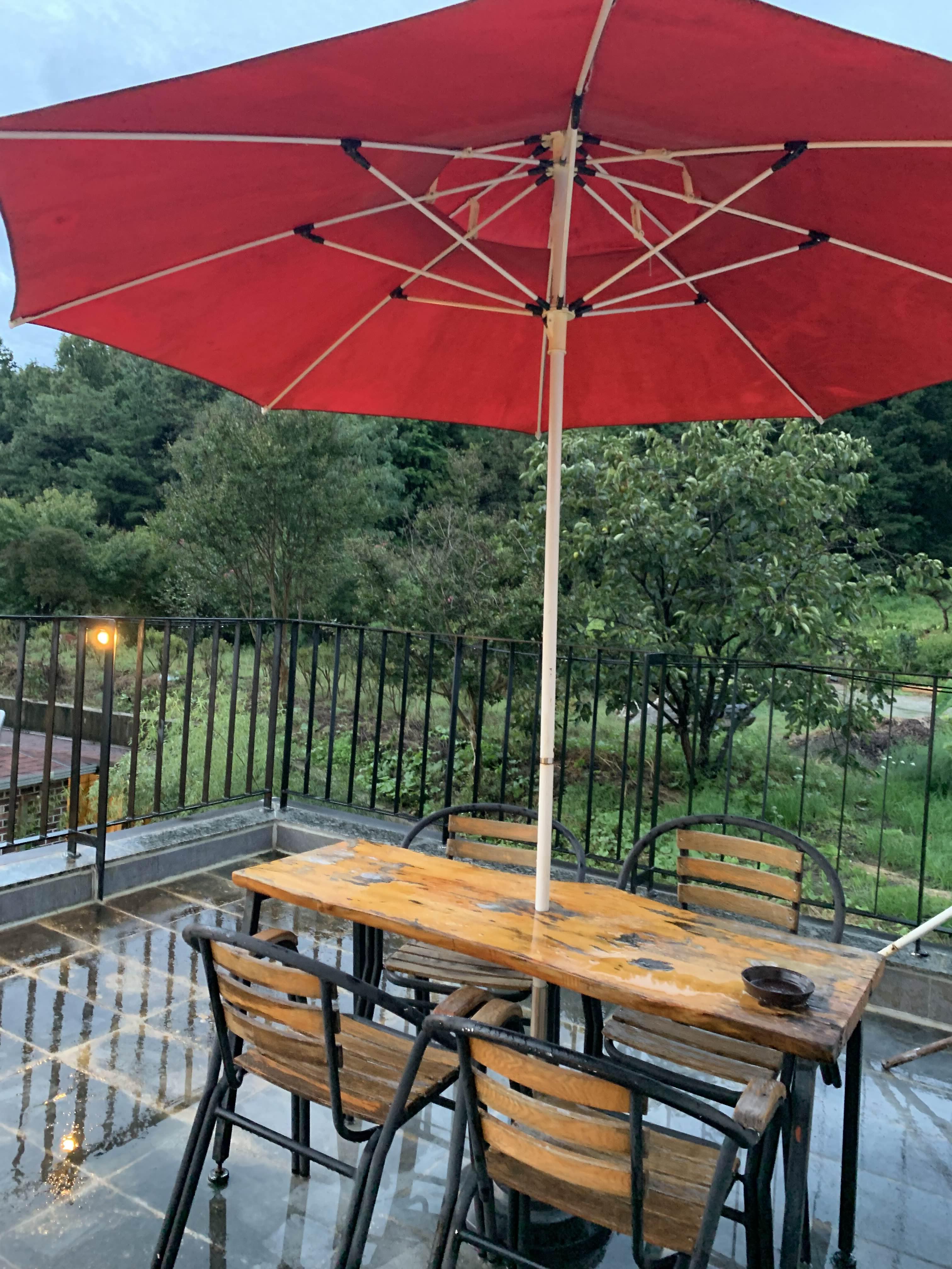 2층 야외 테라스의 테이블이 있는데... 비가 오지 않은 날에 야외 테라스에서 음료를 마시면 분위기가 좋을 듯했다.