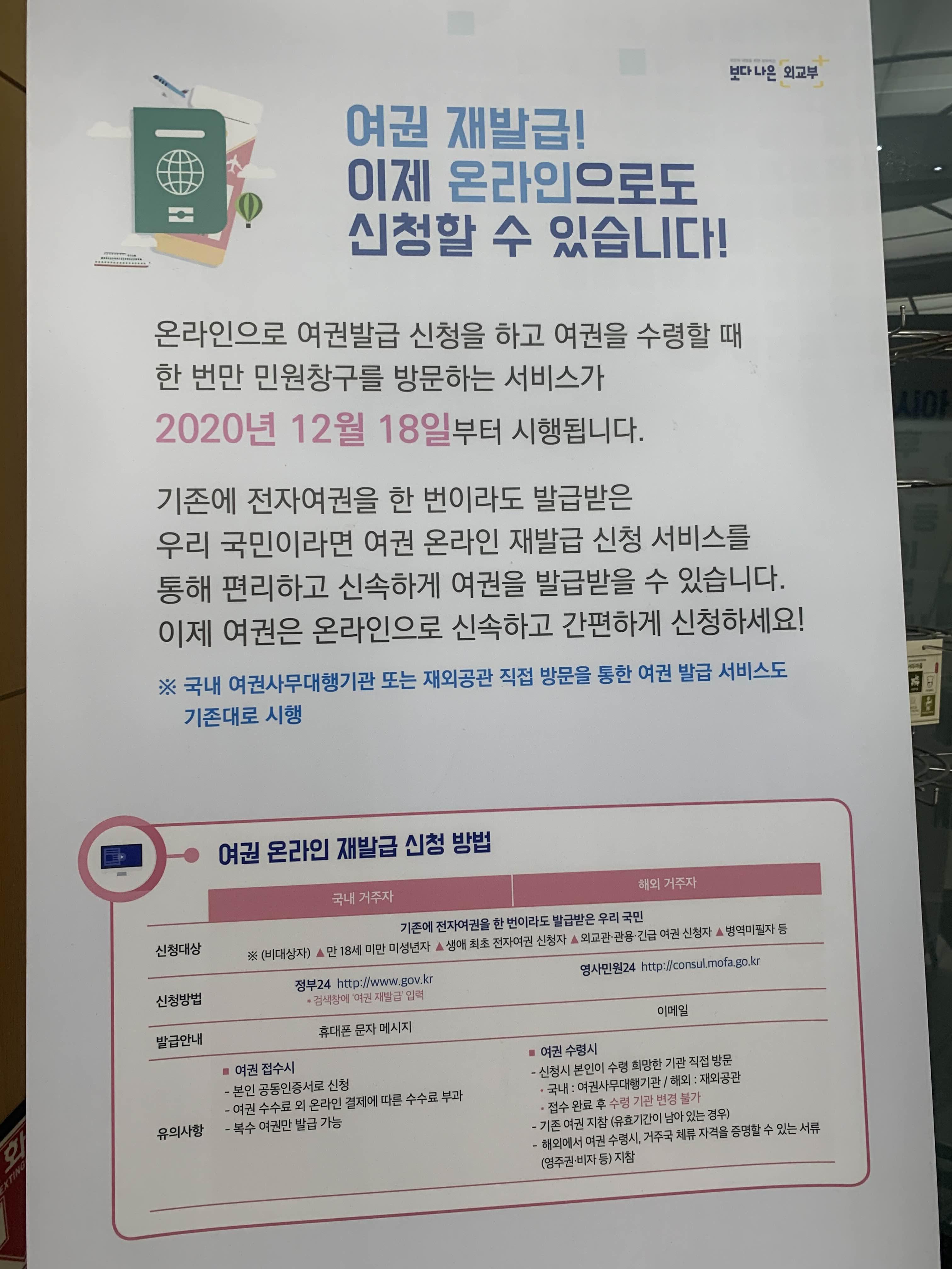 온라인으로 발급 신청할 수도 있지만... 직접 방문신청! 그리고 아이들 여권은... 직접 방문이 필요함!