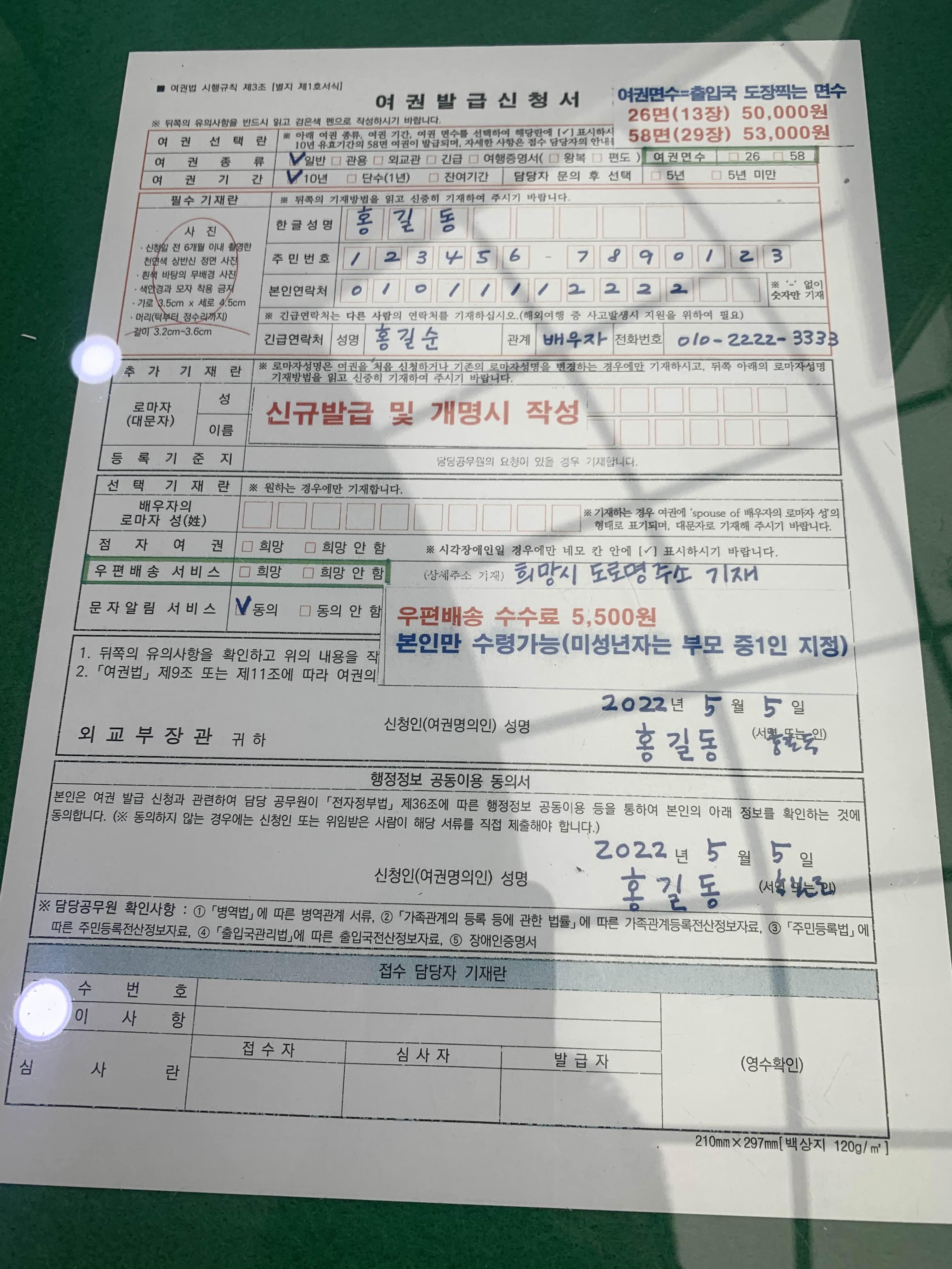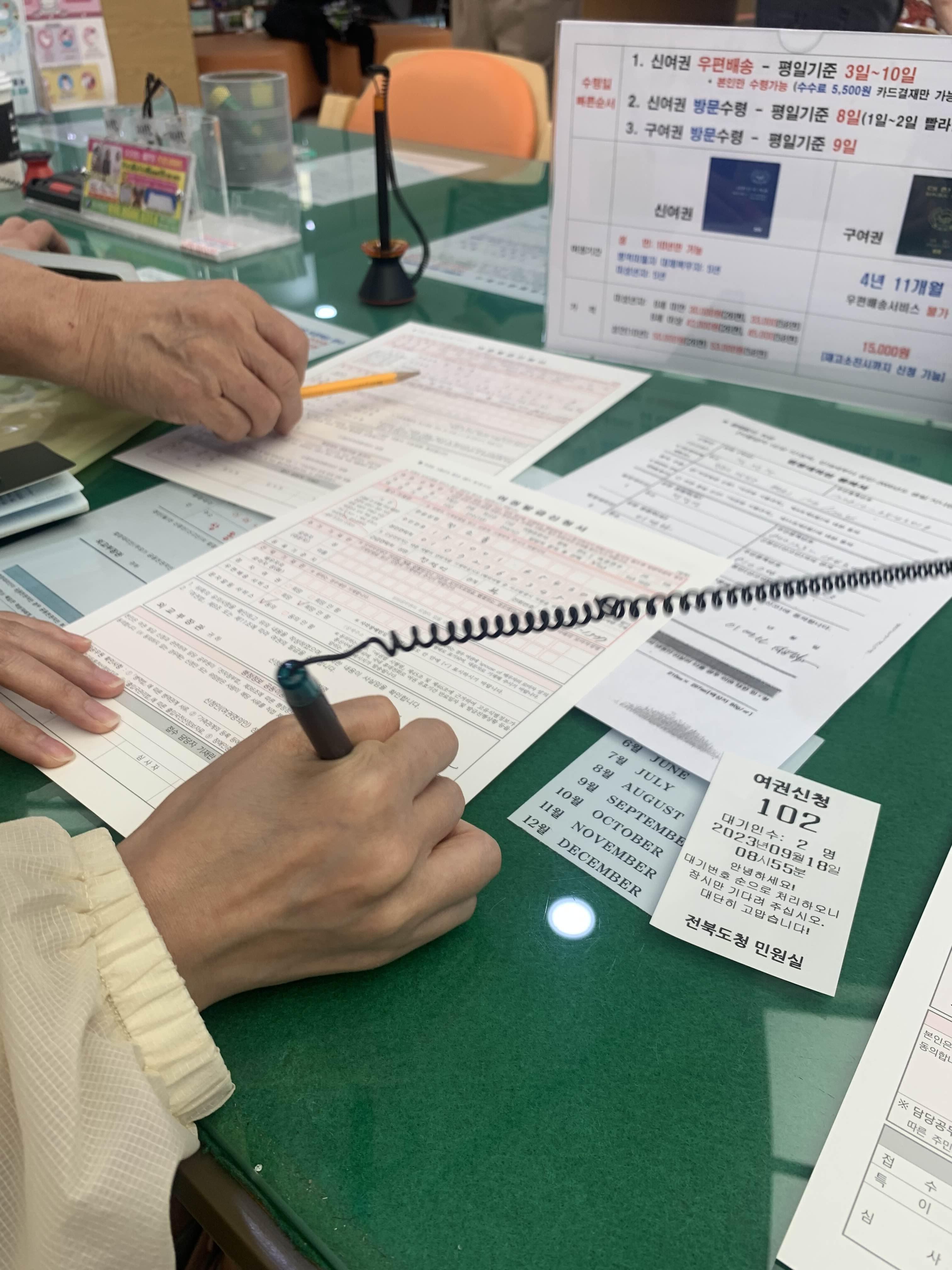 여권 신청하는 장소에 도착하여... 신청서를 작성!!