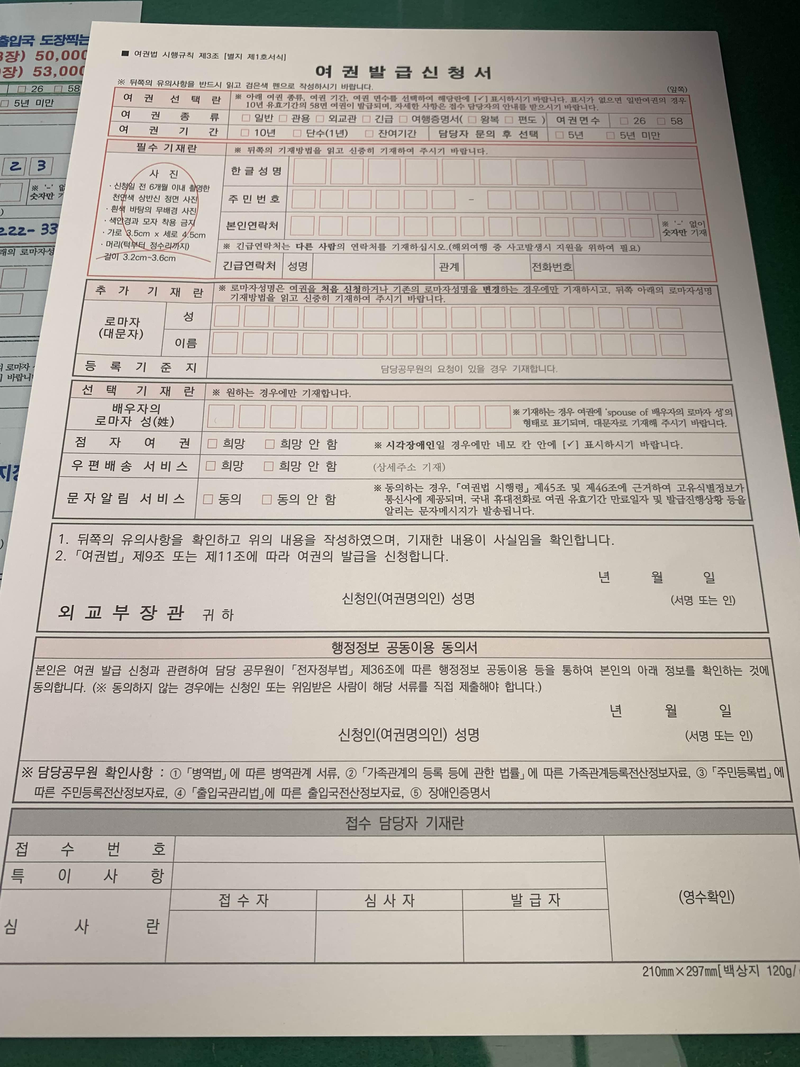 여권 신청하는 장소에 도착하여... 신청서를 작성!!