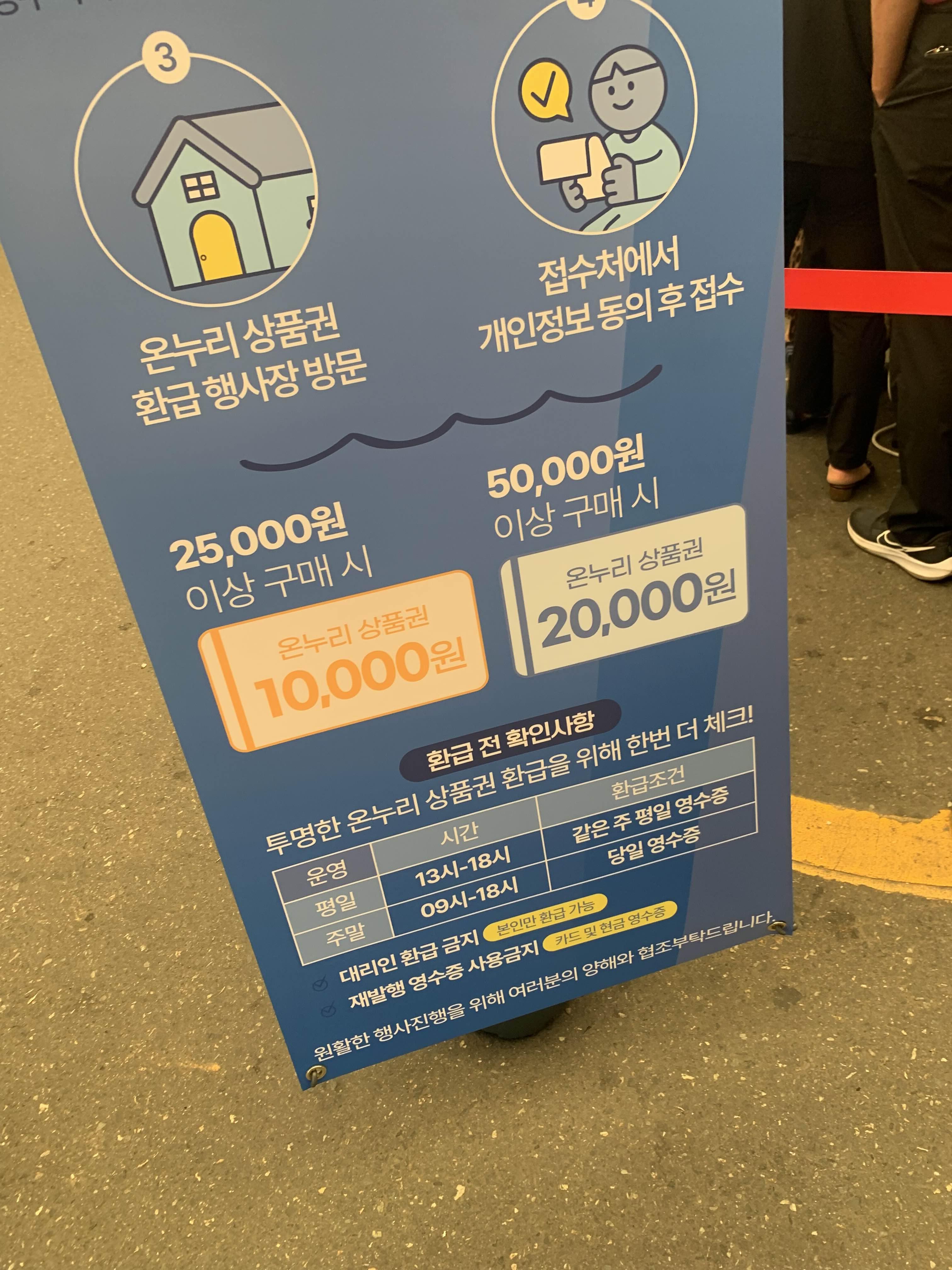 50,000원 이상 구매하면... 2만 원 온누리 상품권을 지급한다.ㅎㅎ